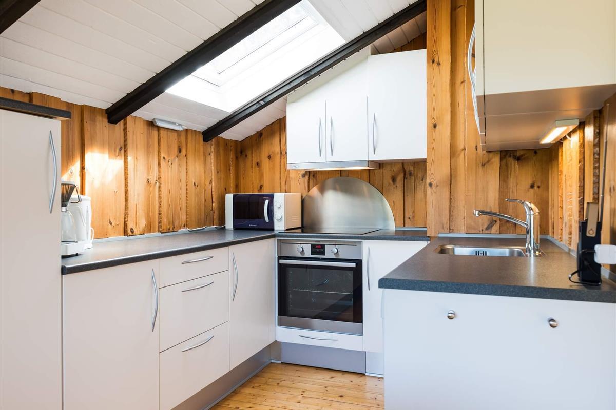 Off. Küche: E-Herd, Warmwasser, Kühlschr., Gefriertruhe 1-59 l., Mikrow., Kaffeem., Spülm.