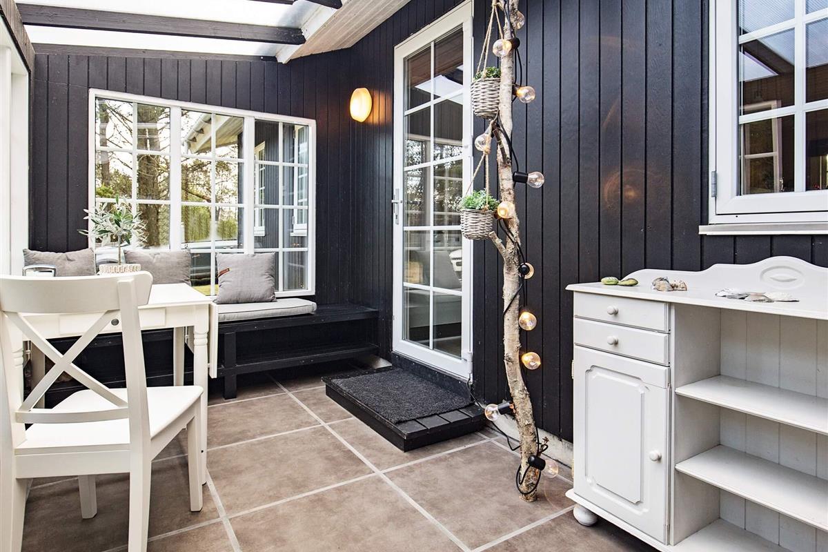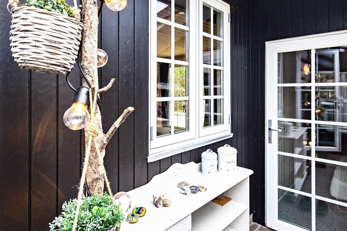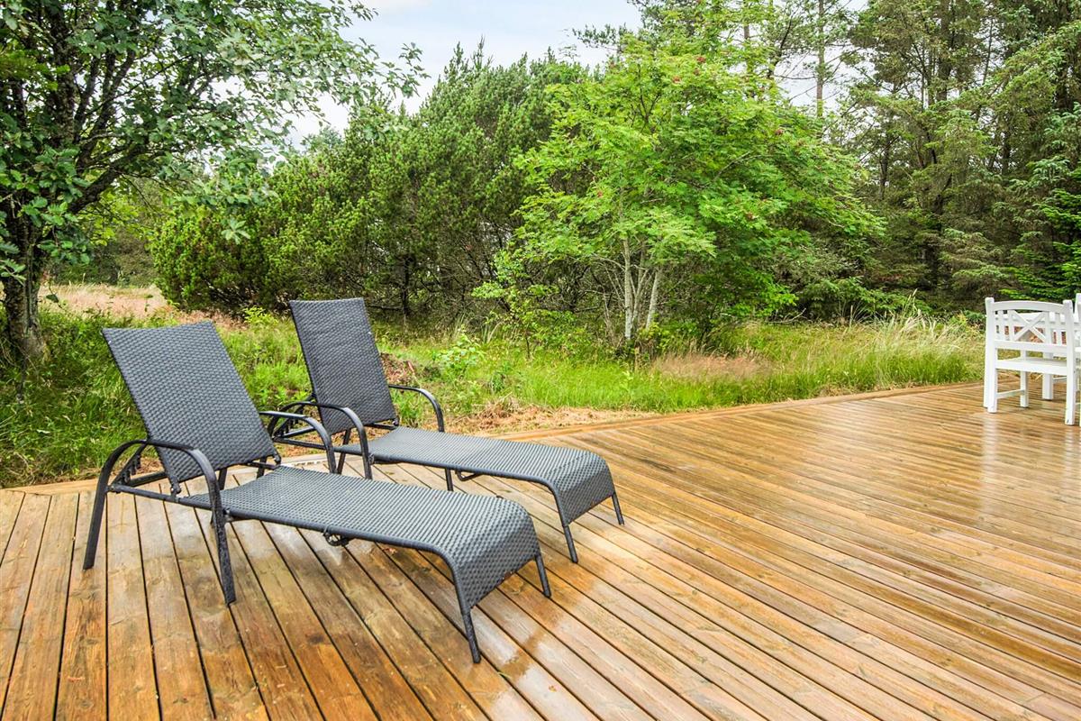 1 Außenbereich: Gartenmöbel, Liegestühle, Gasgrill, Holzkohlegrill, Redskabsskur, Terrasse