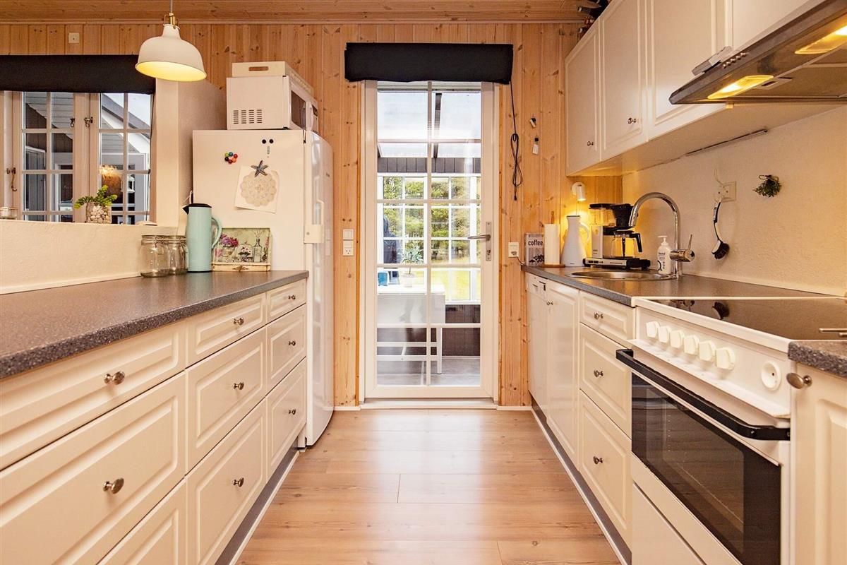 Eingebettet in die wunderschöne und ruhige Küstenlandschaft von Blåvand bietet dieses helle und einladende Ferienhaus einen gemütlichen Rückzugsort für einen erholsamen Urlaub. Der Wohnbereich verfügt über einen charmanten Holzofen, der perfekt für kühlere Abende ist und eine warme und einladende Urlaubsatmosphäre schafft.