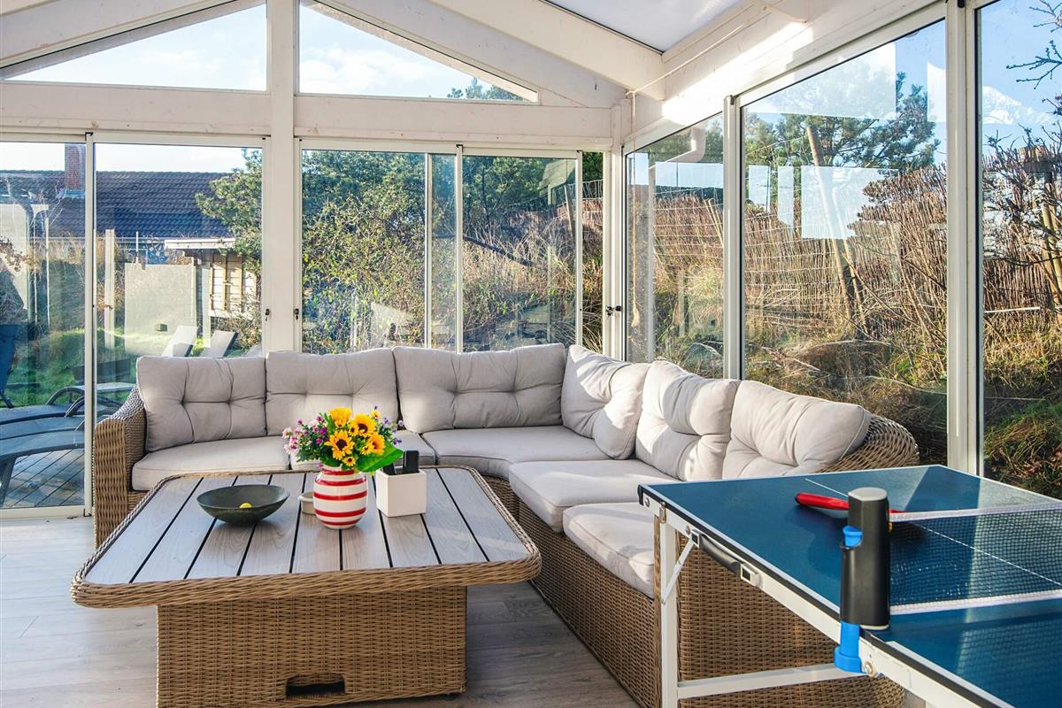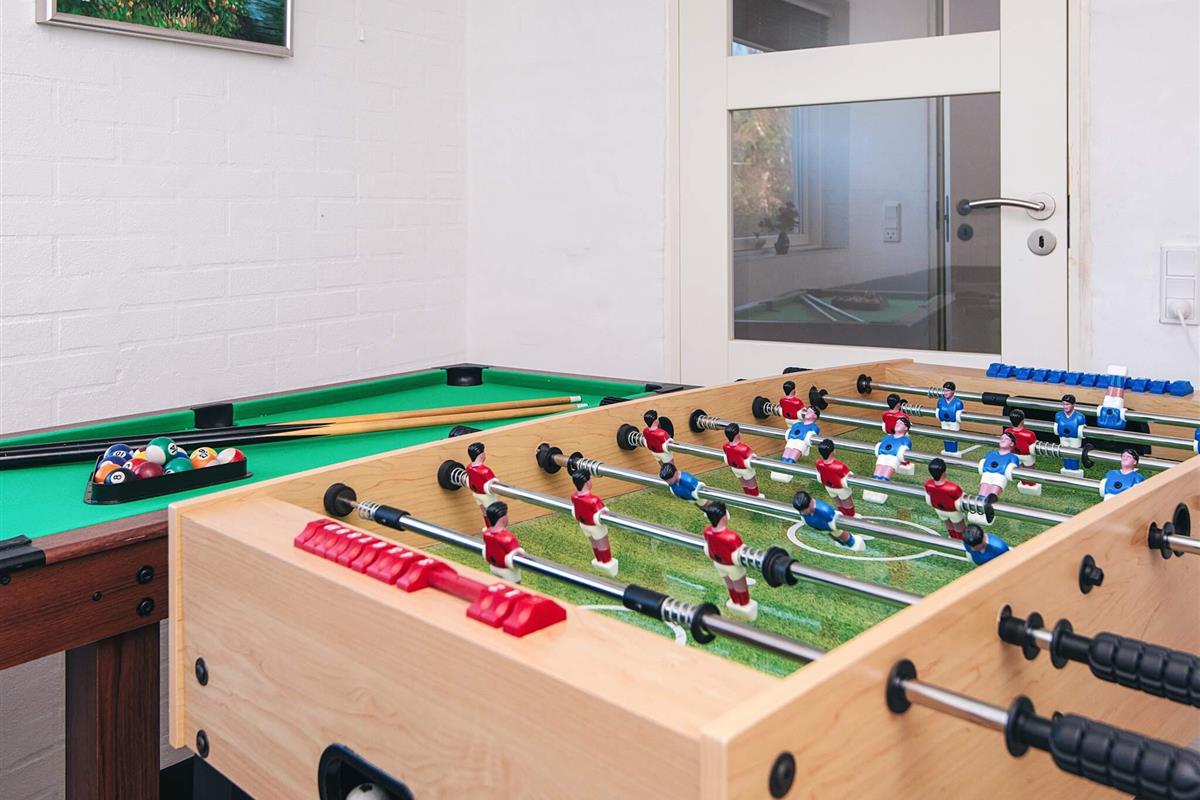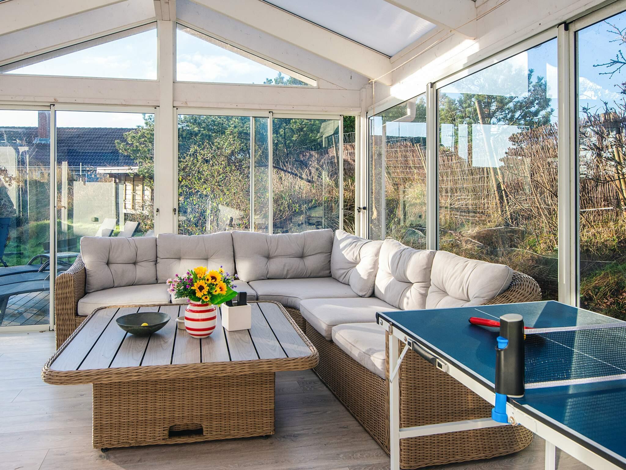 Im 20 m² großen Wintergarten können Sie kühlere Abende bei Darts, Billard, Tischfußball oder Tischtennis verbringen.