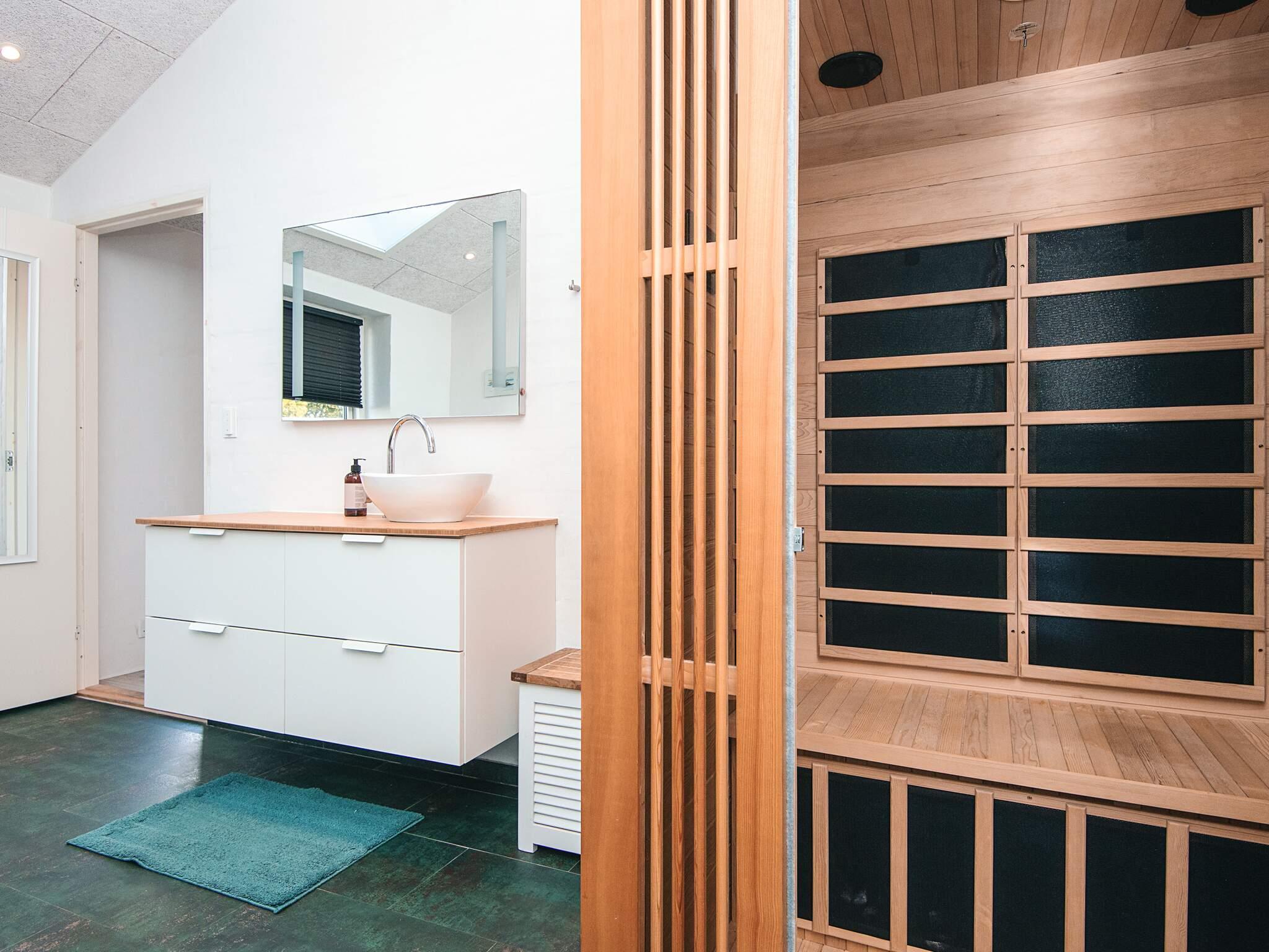 Geräumiges Ferienhaus mit vielen attraktiven Details! Wellness-Bad mit Infrarotsauna (2 Personen) und großer Badewanne zum Entspannen!
