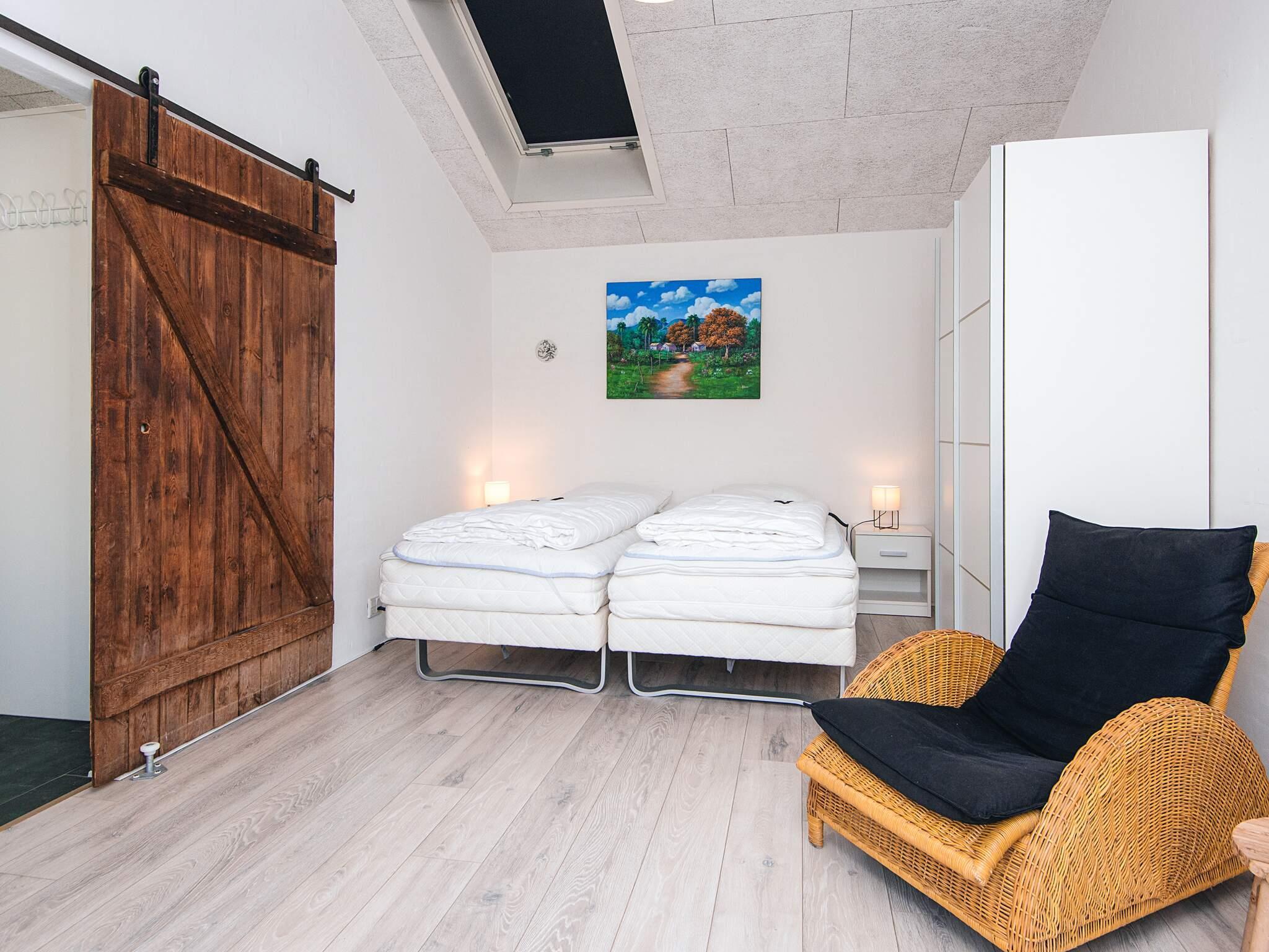 Es gibt vier Schlafzimmer und einen Dachboden. Alle Betten sind 90 x 200 cm groß, die Doppelbetten 180 x 200 cm. Alle Schlafzimmer verfügen über einen Fernseher.