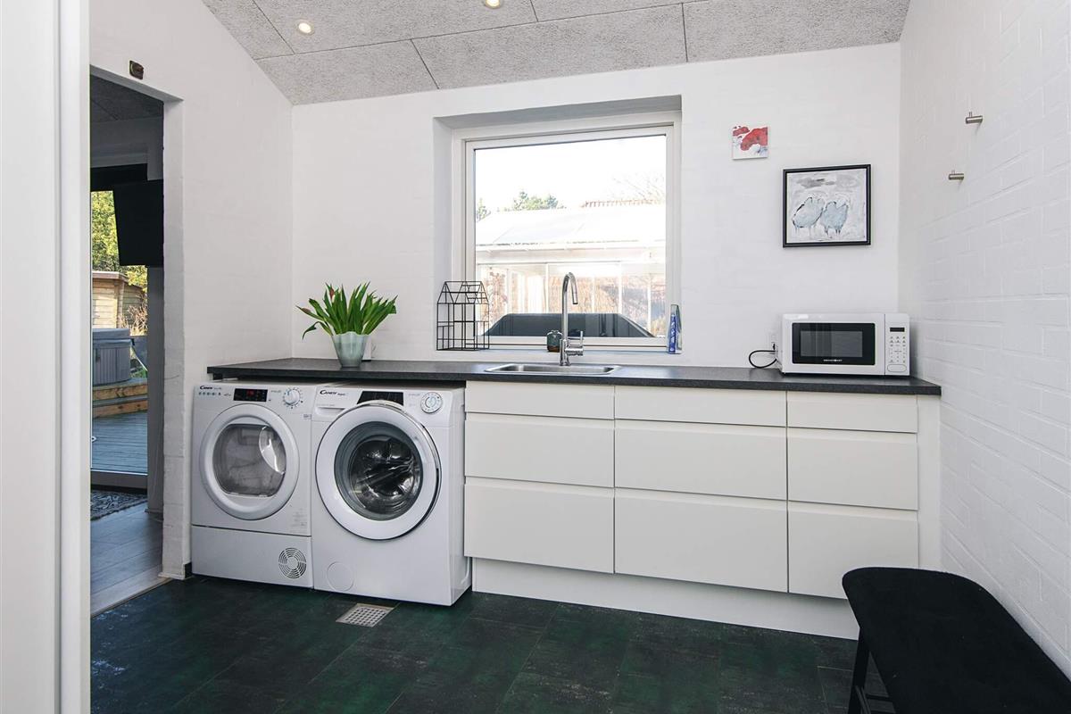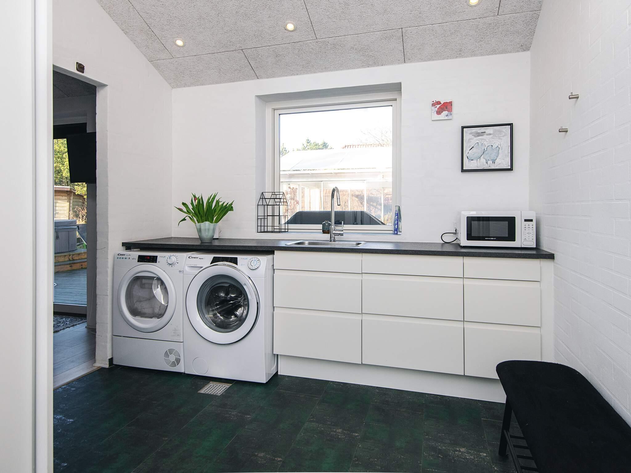 Die Waschmaschine hat eine Kapazität von 14 kg, sodass alles schnell gewaschen werden kann, und der Trockner sorgt dafür, dass die Wäsche auch bei Regenwetter trocknet.