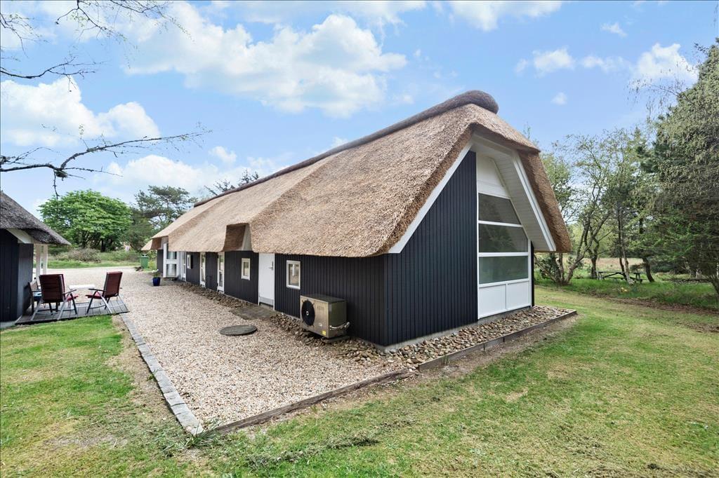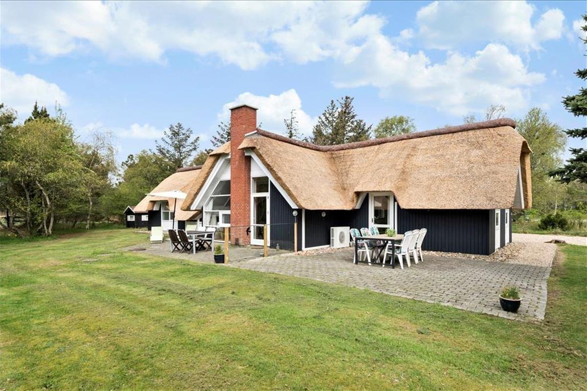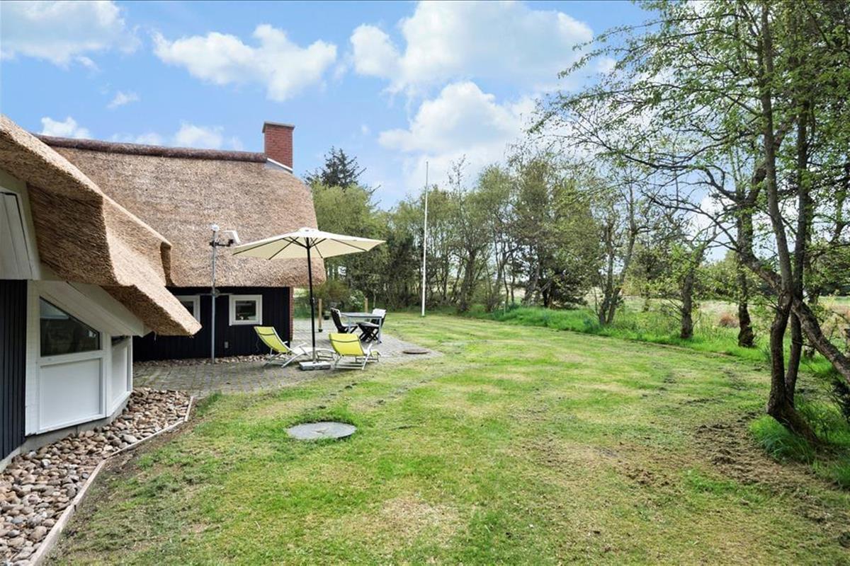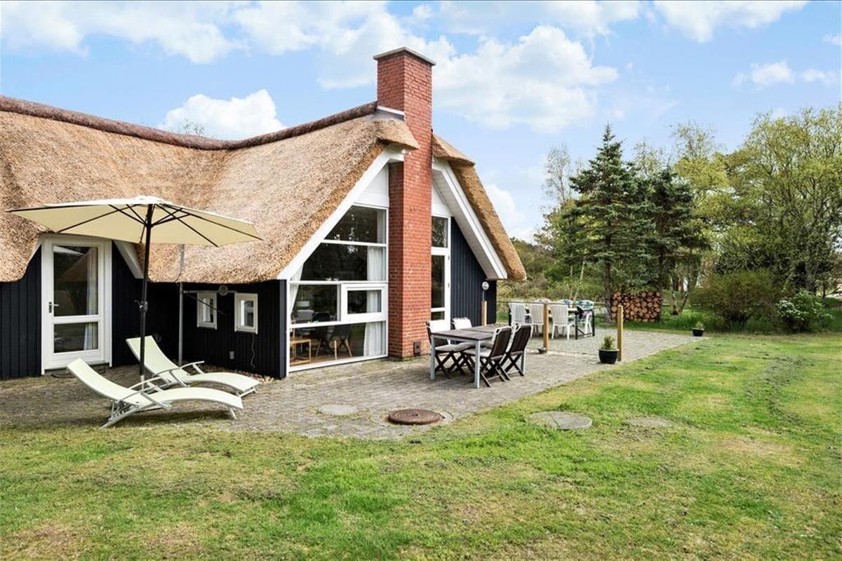 Nahe der Ortsmitte Blåvands liegt dieses schöne, reetgedeckte und schwarz gestrichene Ferienhaus. Vom Wohnzimmer haben Sie einen fantastischen Blick über die Felder. Das Ferienhaus verfügt über vier Schlafzimmer und somit ist Platz für zwei Familien vorhanden.