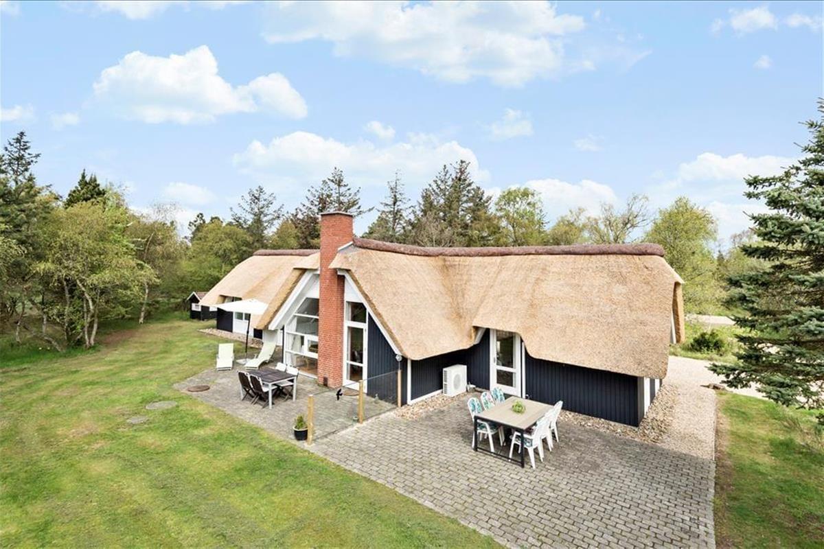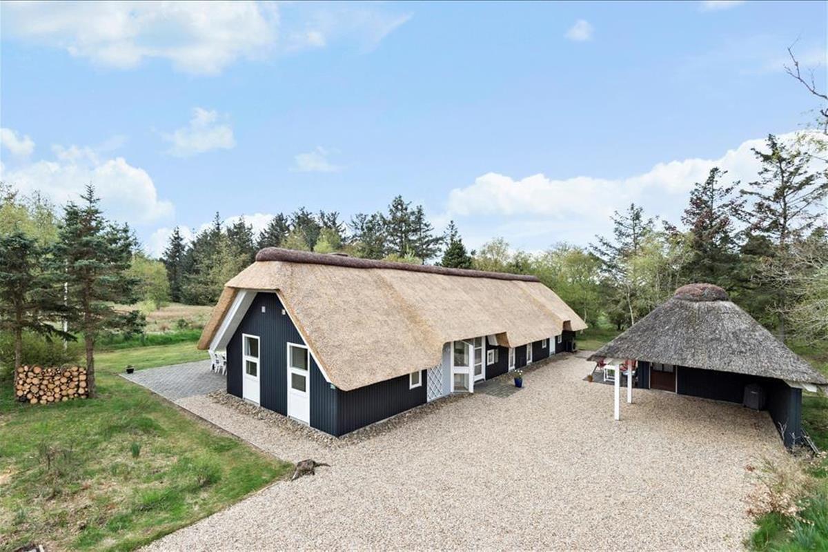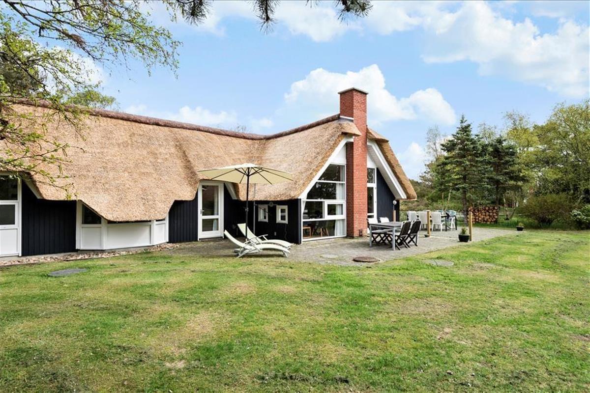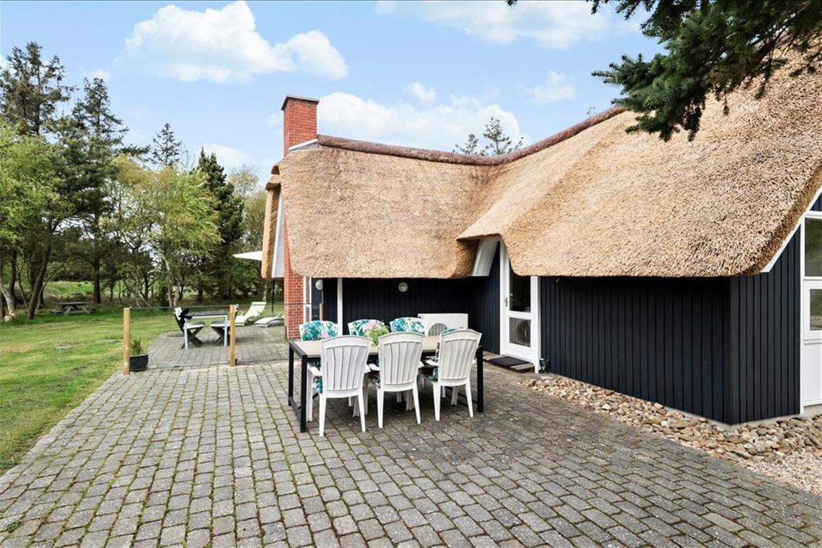 Nahe der Ortsmitte Blåvands liegt dieses schöne, reetgedeckte und schwarz gestrichene Ferienhaus. Vom Wohnzimmer haben Sie einen fantastischen Blick über die Felder. Das Ferienhaus verfügt über vier Schlafzimmer und somit ist Platz für zwei Familien vorhanden.