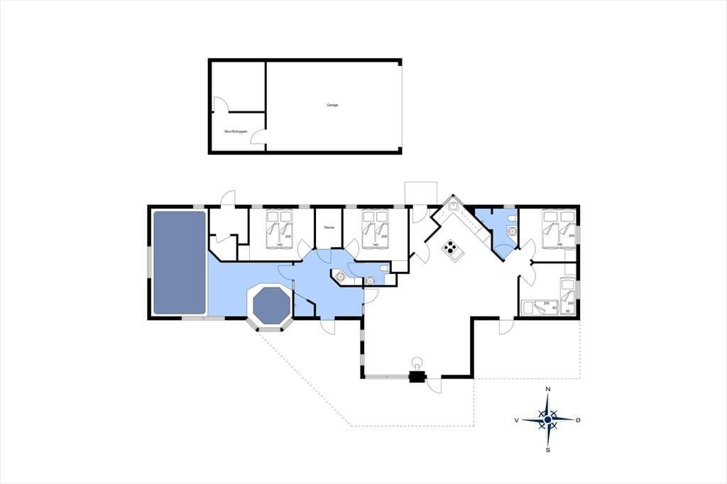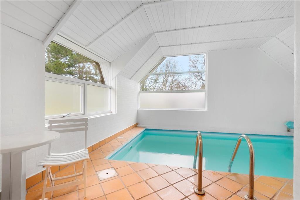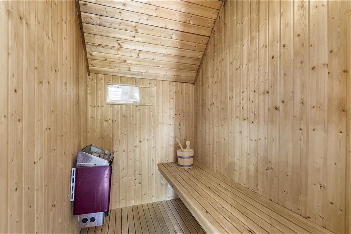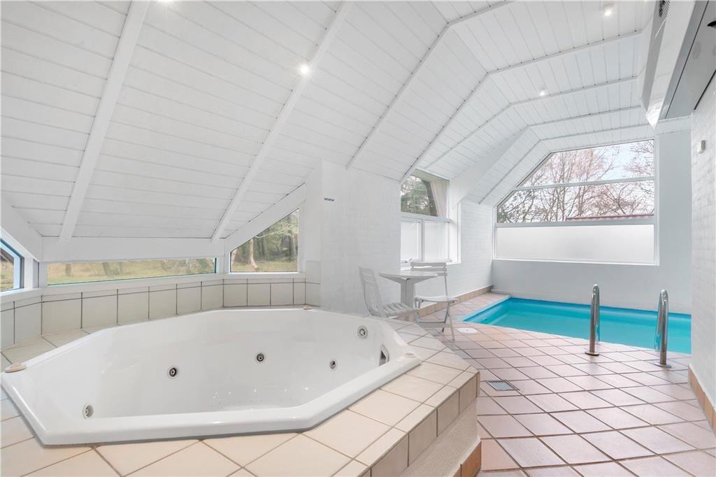 Im Ferienhaus befindet sich eine schöne, große und lichtdurchflutete Küche in offener Verlängerung mit dem Wohnzimmer. Die Küche bietet eine Kochinsel mit Blick in Richtung Essbereich, damit Sie trotzdem während des Kochens am geselligen Beisammensein teilnehmen können. Im Wohnzimmer haben Sie eine wunderbare Aussicht, die Sie z. B. gleichzeitig mit einem prasselndem Kamin genießen können.Hochwertige Ausstattung im ganzen Haus, auf jeder Seite der Wohnküche befinden sich jeweils zwei Schlafzimmer mit Badezimmer. Somit empfiehlt sich das Haus bestens für zwei Familien. An einem Ende des Hauses liegen der 14 m² große Pool und der 4-Personen-Standwasserwhirlpool. Das Haus wurde 1991 gebaut und 2008 umfangreich renoviert, u. a. wurden zwei energiesparende Wärmepumpen installiert.