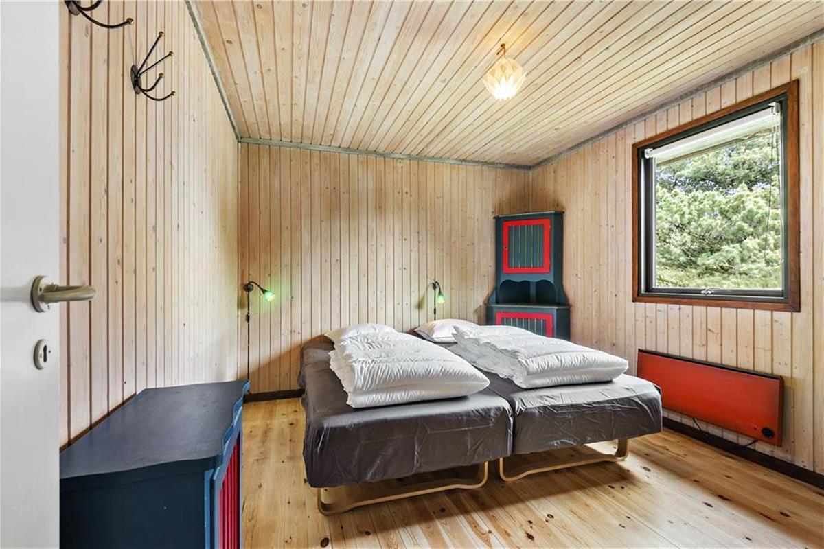 Hier werden Sie an die Urlaube Ihrer Kindheit erinnert, das Haus strahlt nämlich eine authentische Ferienhausidylle aus alten Tagen aus. Zunächst betreten Sie die Küche, eine komplett neue Svane-Küche in hellen Farben, und einen gemütlichen Essbereich mit einer Holzskelett- Trennwand in Richtung Wohnzimmer. Das Wohnzimmer ist eingerichtet mit einem Kamin und einer geschmackvollen Sitzgruppe mit Sofa. Vom Wohnzimmer haben Sie direkten Zugang zur Südterrasse durch die große Schiebetür. Drei hervorragende Schlafzimmer, zwei mit jeweils einem Doppelbett und eins mit einem Etagenbett, alles mit Stauraum. Das Badezimmer wurde ebenfalls wie die Küche erneuert, jetzt ist es hell und modern ausgestattet mit Duschnische und Waschmaschine.