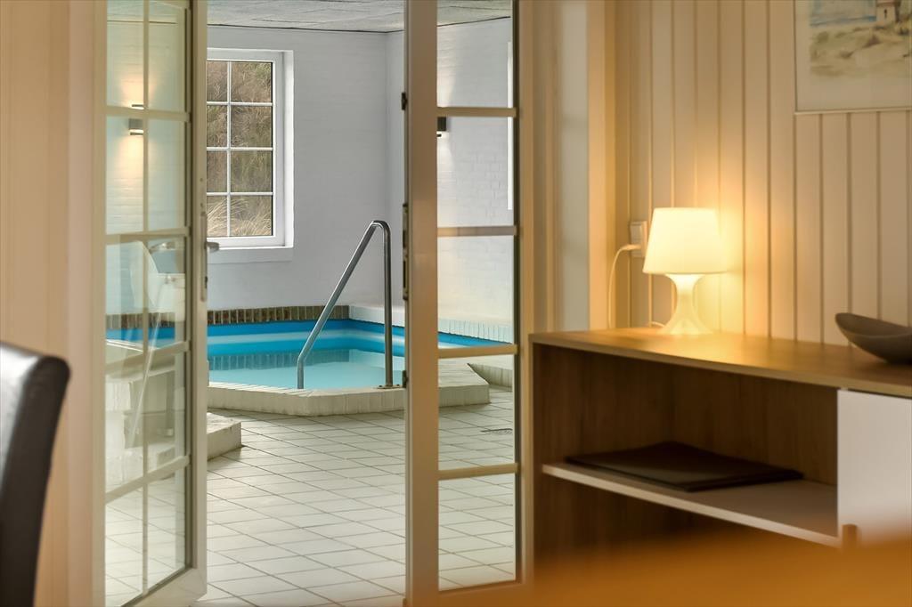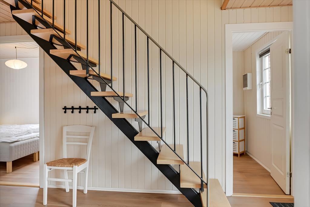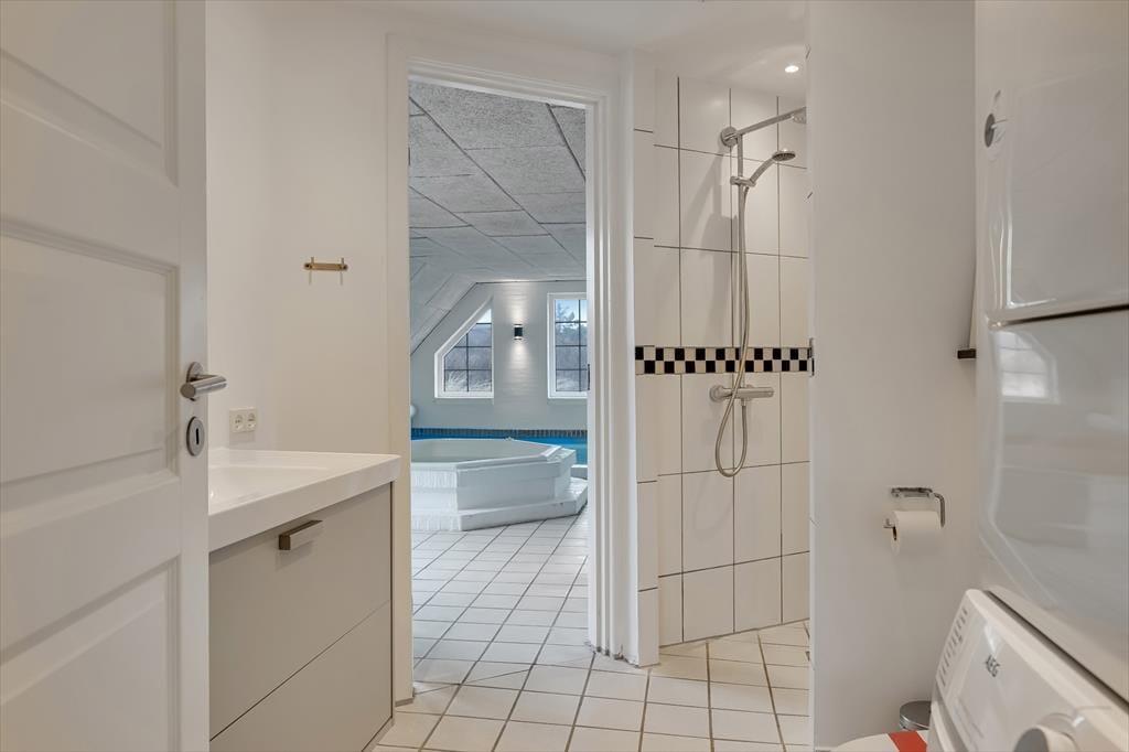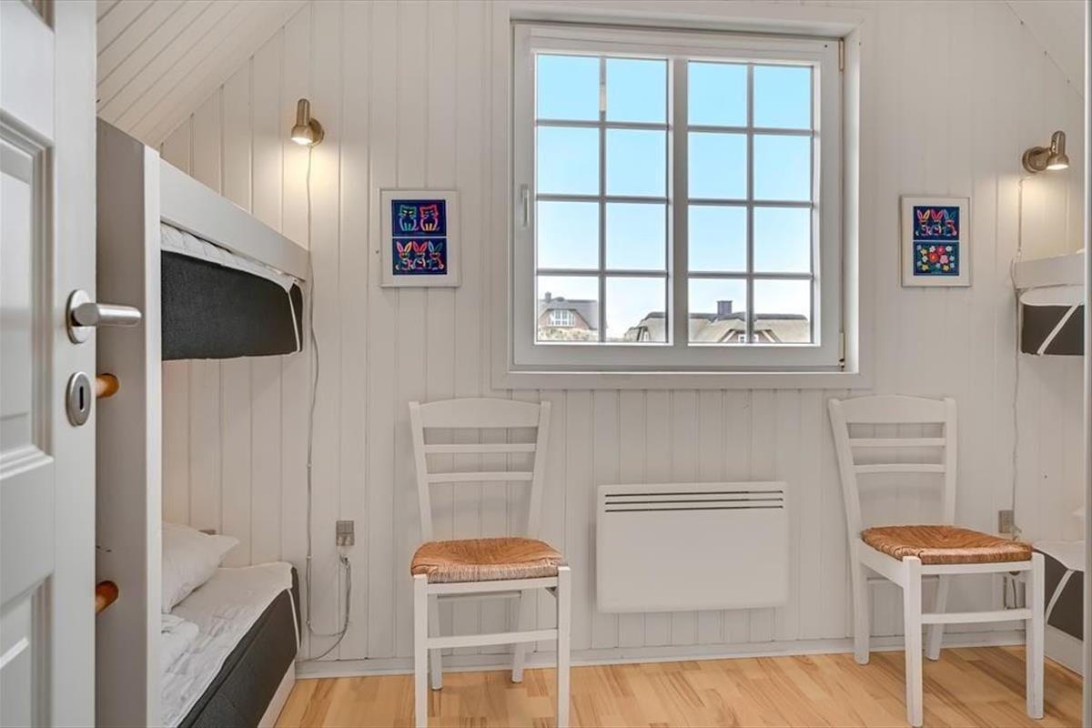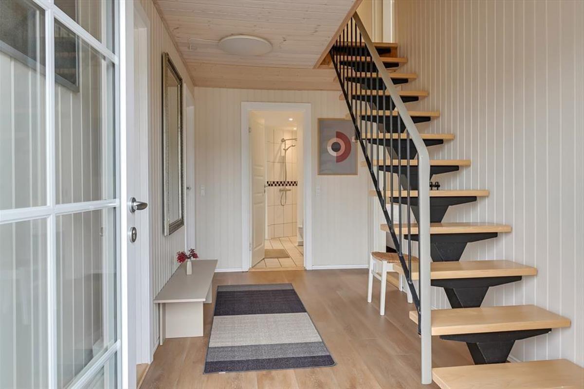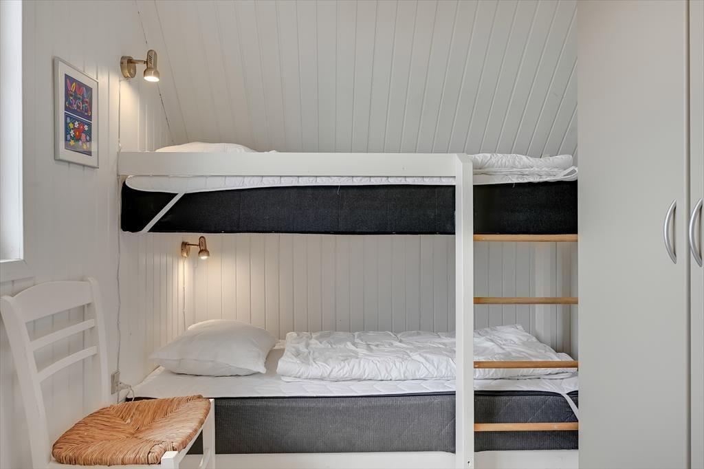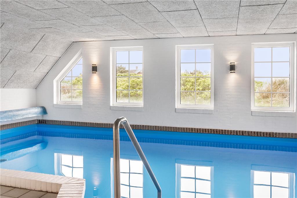 Im Erdgeschoss befindet sich die große, schöne Wohnküche mit unglaublich viel Platz, sowie der Essbereich mit Brennofen. Von hier aus haben Sie auch Zugang zur Terrasse. Von der Küche gelangen Sie direkt in den Poolbereich. Beim Baden im 33 Quadratmeter großen Pool und Whirlpool, trägt der direkte Ausblick auf den Leuchtturm zu Ihrer Entspannung bei. Der Pool wird aus Energiespargründen zum Teil durch die Wärmepumpe beheizt. Die Sauna und ein großes Badezimmer schließen unmittelbar an den Poolraum an. Des weiteren befinden sich im Erdgeschoss zwei gute Schlafzimmer mit Doppelbetten. Im Obergeschoss befinden sich zwei zusätzliche Schlafräume. Einer davon ist mit einem Etagenbett ausgestattet. Der andere Schlafraum ist sehr geräumig, mit einem Doppelbett ausgestattet und beeindruckt durch seinen Balkon mit prächtiger Aussicht. Der große Wohnraum bietet viel Platz. Vom großen Sofaarrangement aus, können Sie entweder entspannt fernsehen oder den Ausblick genießen. Für die kleinen Urlauber ist im Wohnbereich ein Tisch zum Malen und Spielen untergebracht.