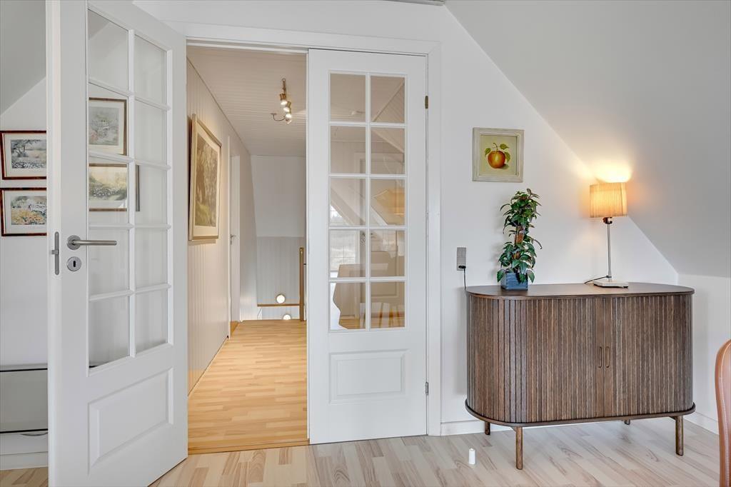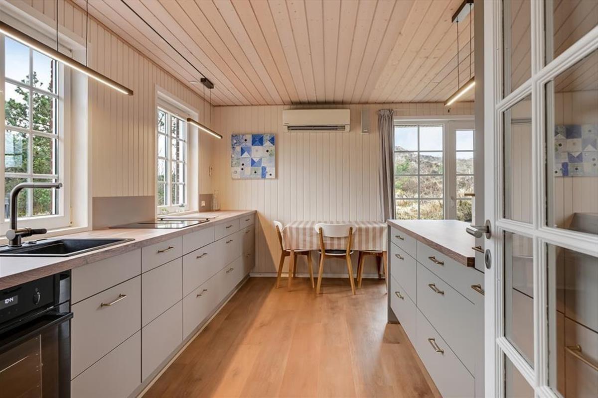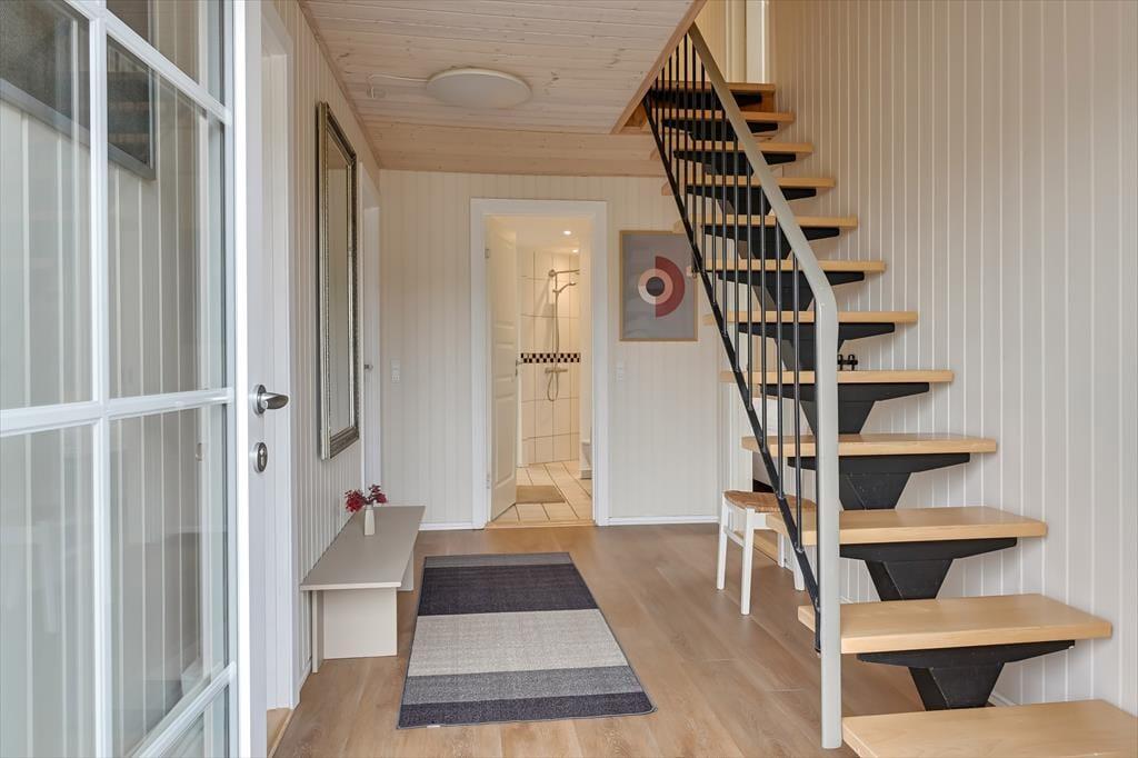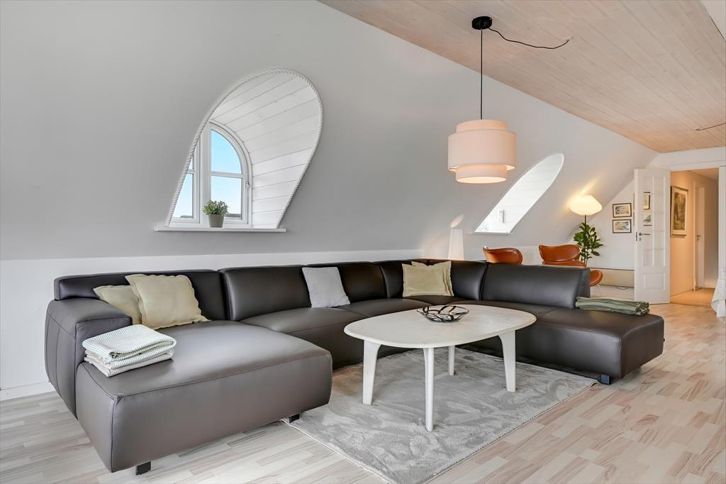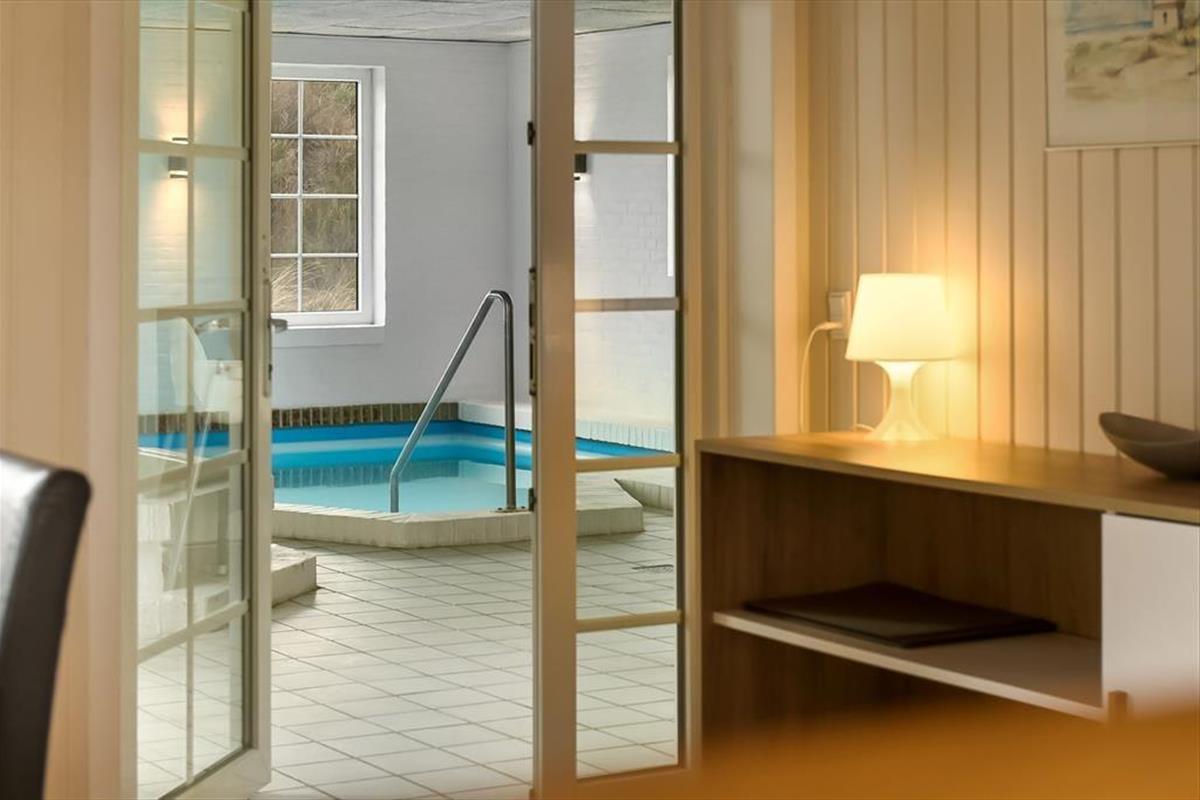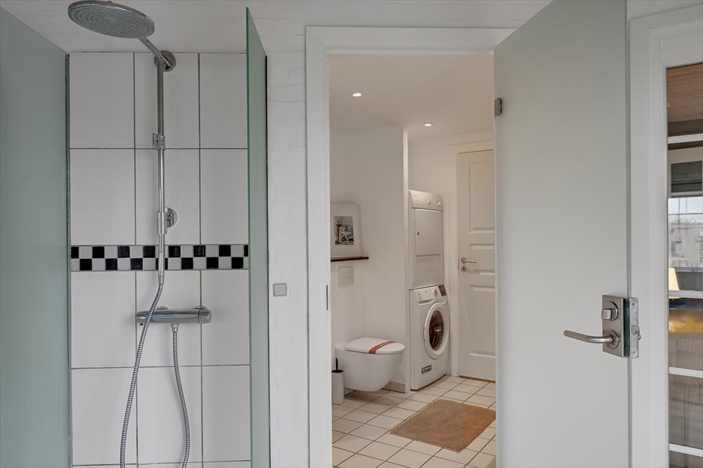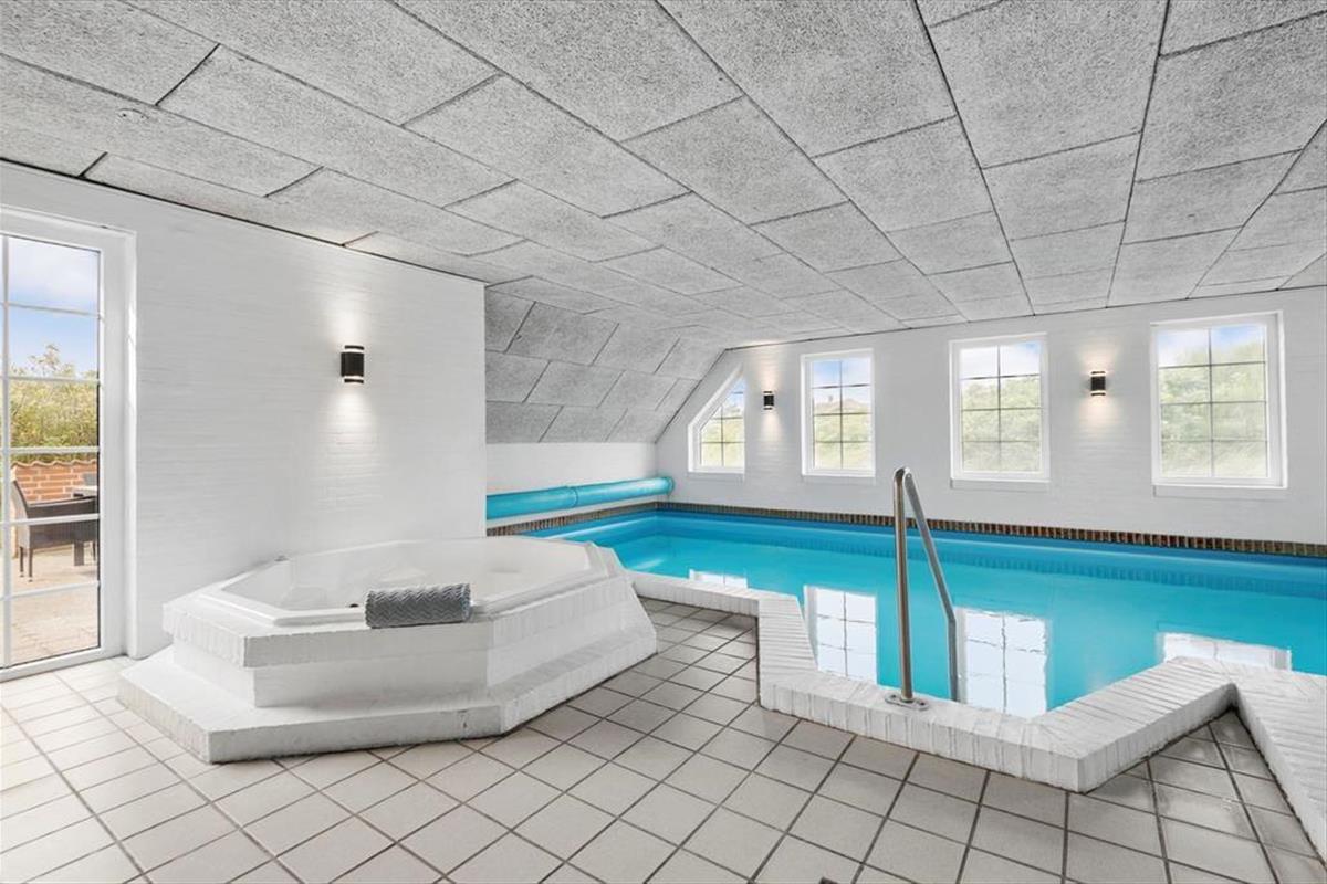 Im Erdgeschoss befindet sich die große, schöne Wohnküche mit unglaublich viel Platz, sowie der Essbereich mit Brennofen. Von hier aus haben Sie auch Zugang zur Terrasse. Von der Küche gelangen Sie direkt in den Poolbereich. Beim Baden im 33 Quadratmeter großen Pool und Whirlpool, trägt der direkte Ausblick auf den Leuchtturm zu Ihrer Entspannung bei. Der Pool wird aus Energiespargründen zum Teil durch die Wärmepumpe beheizt. Die Sauna und ein großes Badezimmer schließen unmittelbar an den Poolraum an. Des weiteren befinden sich im Erdgeschoss zwei gute Schlafzimmer mit Doppelbetten. Im Obergeschoss befinden sich zwei zusätzliche Schlafräume. Einer davon ist mit einem Etagenbett ausgestattet. Der andere Schlafraum ist sehr geräumig, mit einem Doppelbett ausgestattet und beeindruckt durch seinen Balkon mit prächtiger Aussicht. Der große Wohnraum bietet viel Platz. Vom großen Sofaarrangement aus, können Sie entweder entspannt fernsehen oder den Ausblick genießen. Für die kleinen Urlauber ist im Wohnbereich ein Tisch zum Malen und Spielen untergebracht.