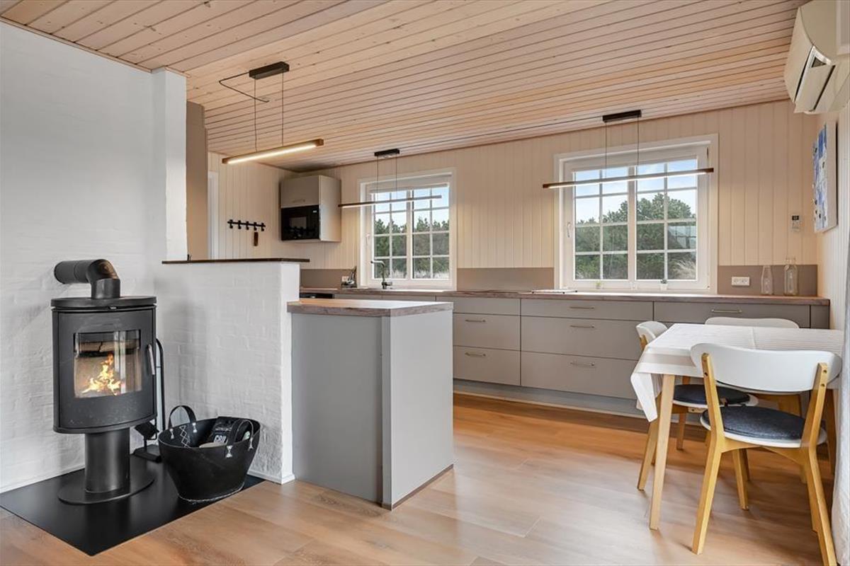 Dieses Ferienhaus ist ein optimaler Ausgangspunkt für entspannte Spaziergänge und Wanderungen durch die Heide oder entlang des Nordstrands. Mit dem Fahrrad erreichen Sie binnen Minuten Blåvands pulsierendes Zentrum. Hier laden diverse gute Restaurants, viele Einzelhandelsgeschäfte, Schlachter und Delikatessenläden vom Bummeln und Verweilen ein. Sehenswert ist zudem das neu eröffnete Tirpitz Museum am Tane Hedevej. Das außergewöhnliche, interessante Gebäude, beherbergt eine tolle Ausstellung über die Nordsee und den 2. Weltkrieg. Entworfen wurde das Museumsgebäude vom bekannten dänischen Architekten Bjarke Ingels vom Architektenbüro BIG.