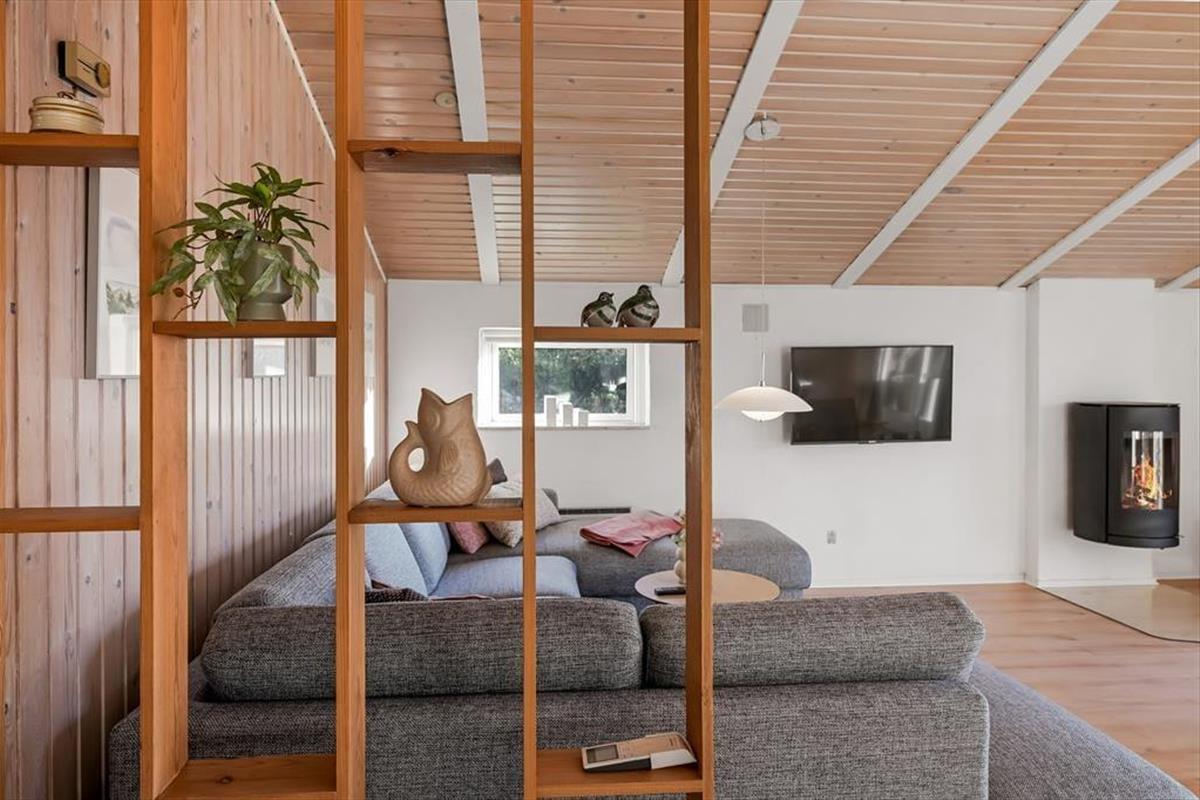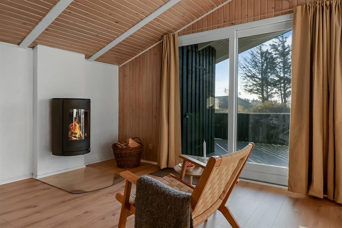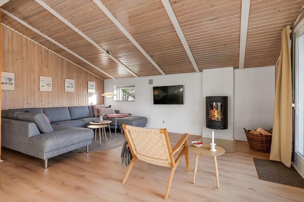 Der gemütliche Wohnbereich bietet ausreichend Platz für alle mitreisenden Urlaubsgäste. Er empfängt Sie mit einer guten Einrichtung mit einem Esstisch, einer Sofaecke und einem Kamin. Vom Wohnbereich gelangen Sie zudem direkt auf die Südterrasse des Hauses. Dank der offenen Verbindung mit dem Wohnraum haben Sie während der Erledigung Ihrer alltäglichen Aufgaben in der Küche jederzeit die Möglichkeit, allen Aktivitäten im Wohnraum beizuwohnen. Im schönen, hellen Badezimmer erwarten Sie eine Dusche und eine Sauna. Ihnen stehen zwei Schlafräume mit jeweils einem Doppelbett und ein Schlafraum mit einem Etagenbett zur Verfügung. Es ist möglich, Ihr eigenes Autoladegerät an das Haus anzuschließen.