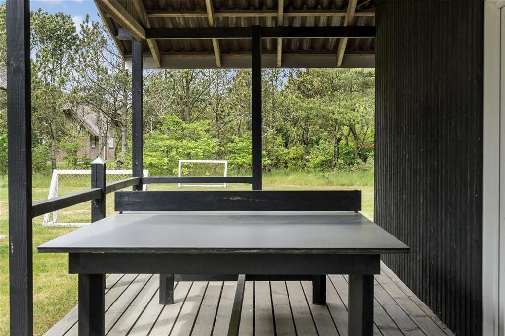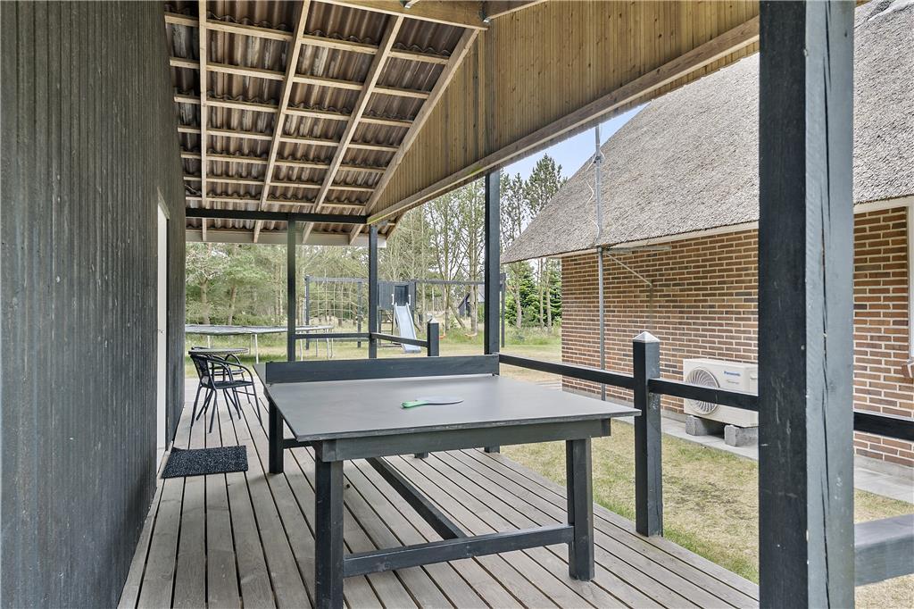 Dieses Ferienhausgrundstück bietet Aktivitäten für alle Altersgruppen. Im Garten stehen ein großes Klettergerüst mit Rutsche, Sandkasten, Schaukel, Badmintonnetz, Fußballtor und Trampolin zur Verfügung. Im Süden wurde eine geschlossene Terrasse angelegt und auf der überdachten Terrasse ist eine Tischtennisplatte vorhanden. Ein Grundstück mit unzähligen Entfaltungsmöglichkeiten für die ganze Familie.