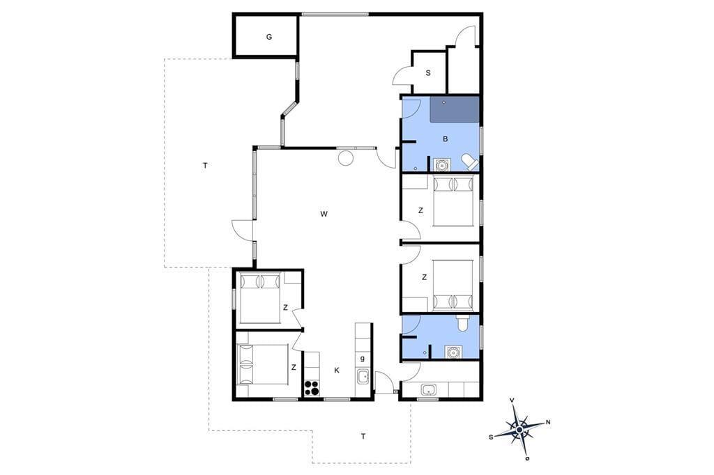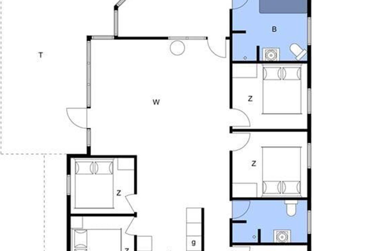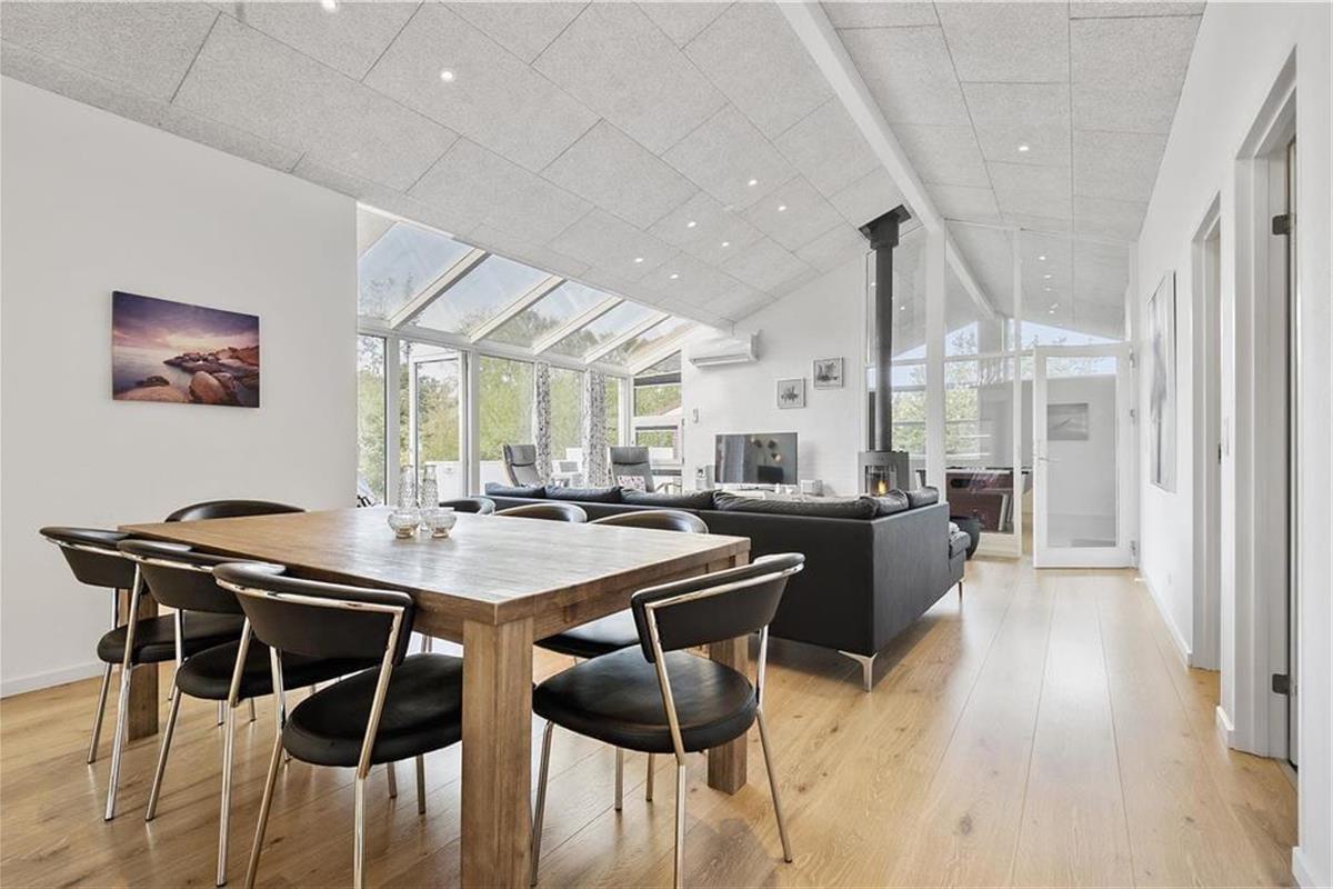 Das 150 m² große Urlaubsdomizil bietet Ihnen aufgrund der ganz hervorragenden Raumaufteilung angenehm viel Platz und Bewegungsfreiheit. Bis zu acht Personen verbringen hier schöne, komfortable Urlaubstage. Die vier Schlafzimmer sind allesamt mit je einem guten Doppelbett eingerichtet. Vom Wohnraum aus gelangen Sie außerdem hinauf auf einen Schlafboden, der als zusätzliche Schlafgelegenheit dienen kann und sich als gemütliche Spielzone auch bei Ihren Kindern großer Beliebtheit erfreuen wird. Das größere der beiden Badezimmer verwöhnt mit einem tollen Whirlpool. Im angrenzenden Aktivitätsraum gibt es eine Sauna. Generell werden Sie sich im Aktivitätsraum viel und gern aufhalten. Ein Billardtisch, eine Tischtennisplatte, eine Dartscheibe und ein Flachbild-TV mit einer Wii-Spielekonsole sorgen hier für viel Spaß und Unterhaltung bei Groß und Klein. Richtig gemütlich und entspannt geht es hingegen im Wohnraum zu. Bei diesem handelt es sich um einen großen Aufenthaltsraum mit einem tollen Tageslichteinfall. Die Küche ist offen mit dem Wohnraum verbunden. An kühlen Abenden können Sie die Wärmepumpe nutzen, die Ihr Haus dank der umweltfreundlichen Solarzellen kostengünstig erwärmt. Für ein Maximum an Gemütlichkeit und echter dänischer Ferienhausstimmung sorgt der natürlich ebenfalls vorhandene behaglich knisternde Kaminofen.