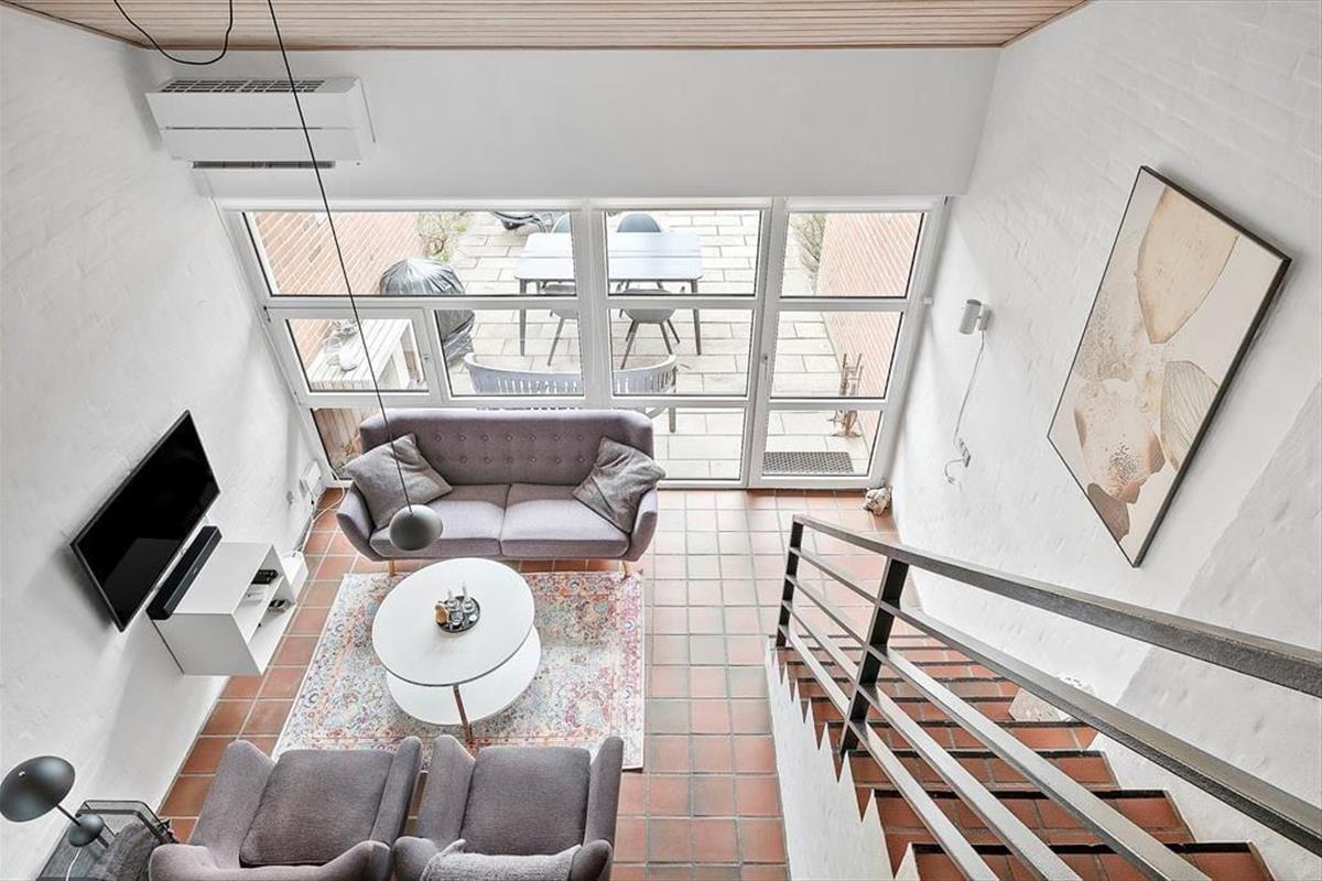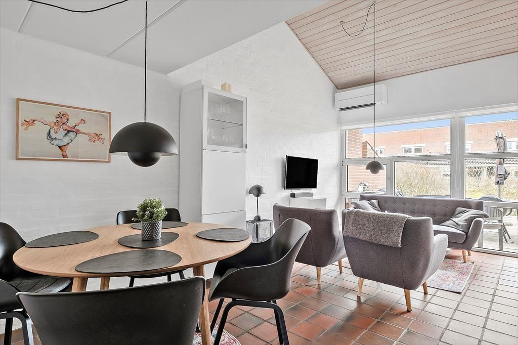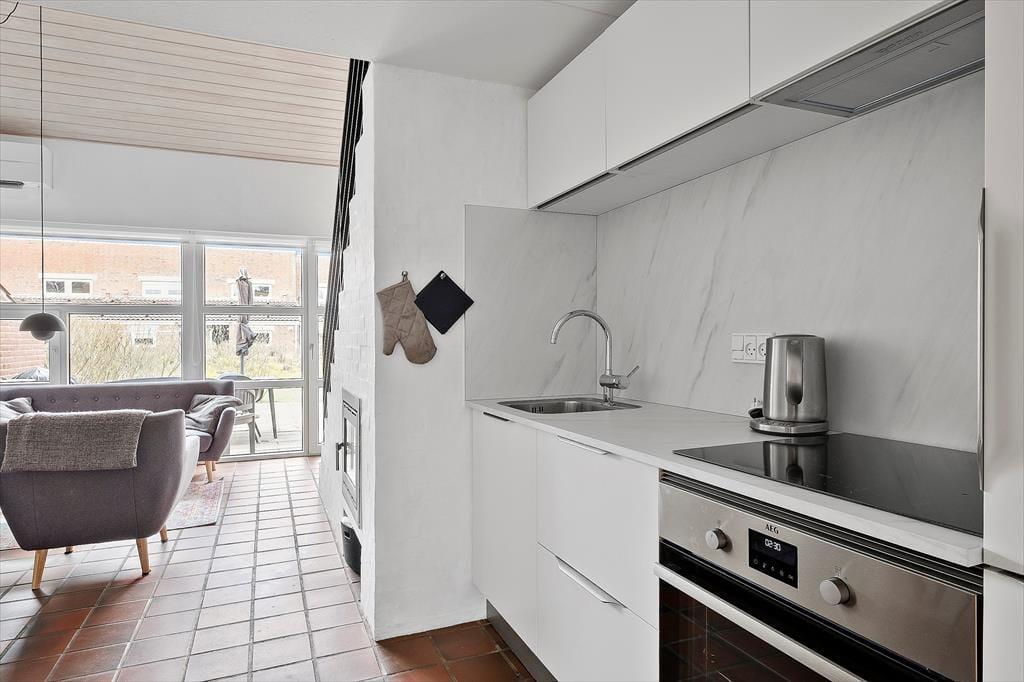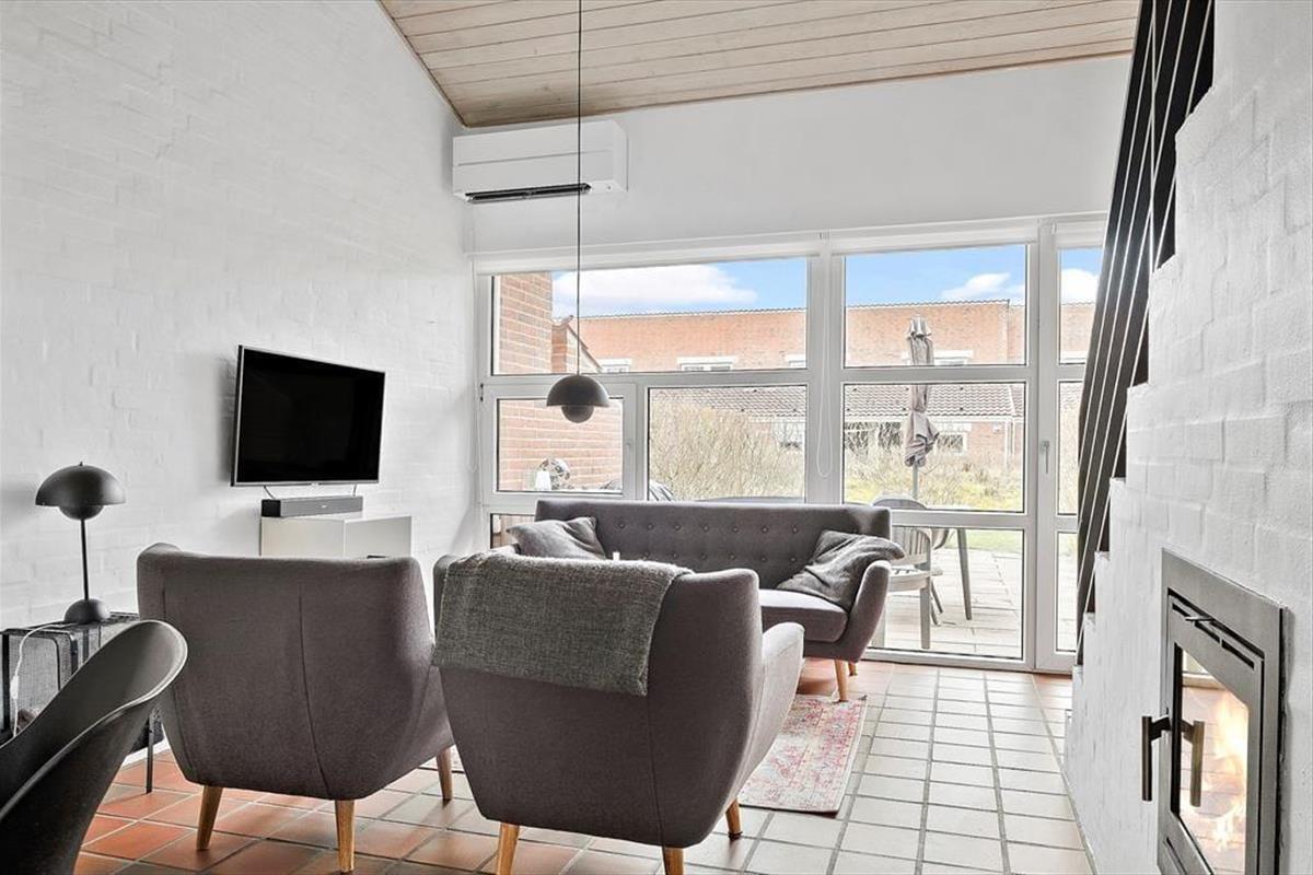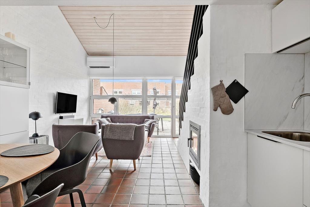 Appartement in Blåvand Strand og By, West-Jutland, met plaats voor 4 volwassenen en 2 huisdieren. De woning heeft een gezellig interieur met o.a. een houtkachel, en beschikt daarnaast over een wasmachine.