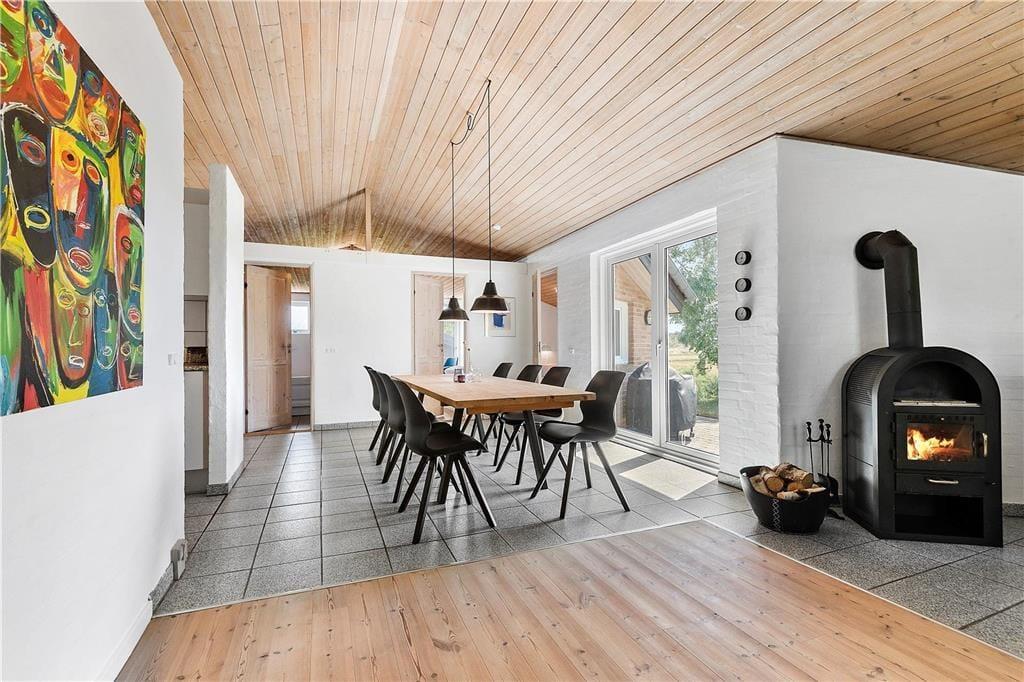 Vakantiehuis in Blåvand Strand og By, West-Jutland, met plaats voor 7 volwassenen en 2 huisdieren. De woning heeft een gezellig interieur met o.a. een houtkachel, en beschikt daarnaast over een wasmachine, een vaatwasser en een wasdroger.