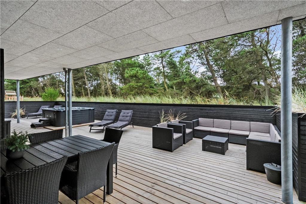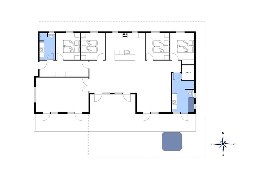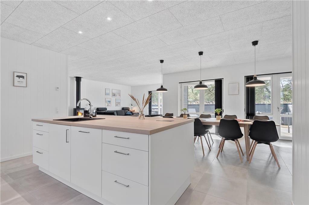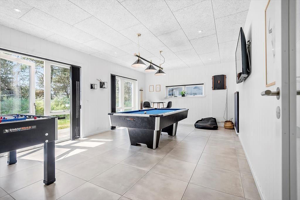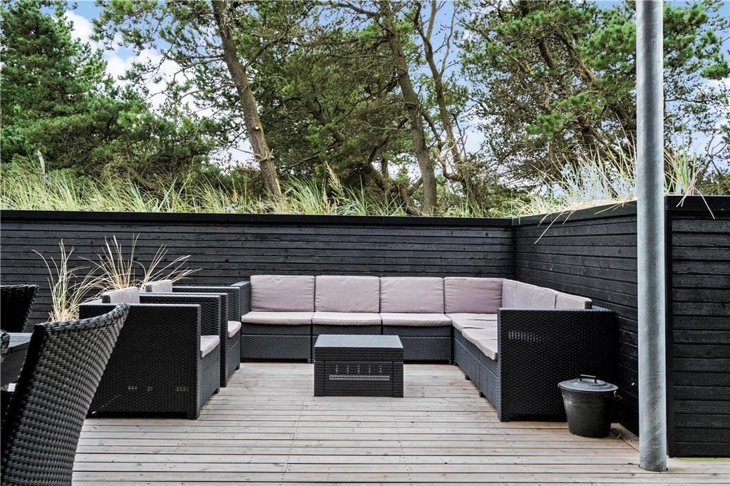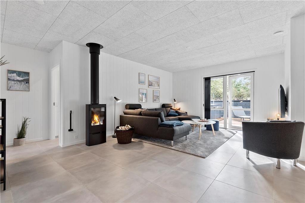 Vakantiehuis in Blåvand Strand og By, West-Jutland, met plaats voor 8 volwassenen en 2 huisdieren. De woning heeft een gezellig interieur met o.a. een houtkachel, en beschikt daarnaast over een wasmachine, een vaatwasser en een wasdroger.