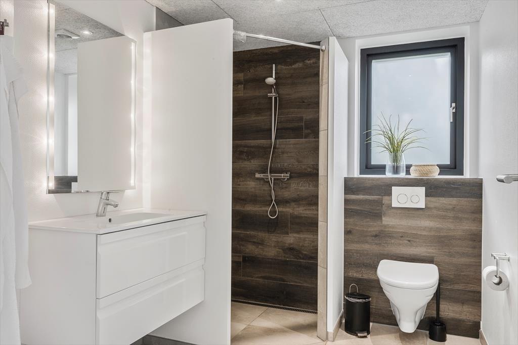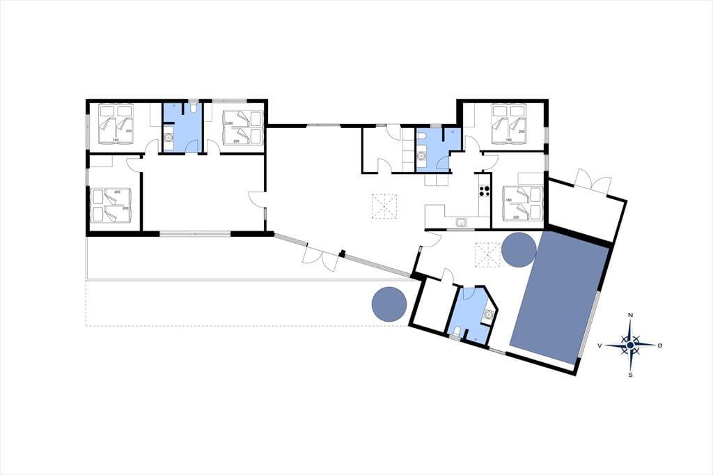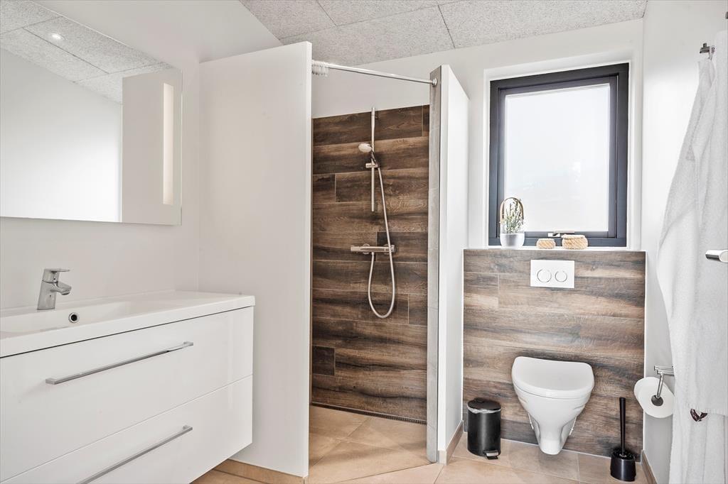 Mit einer Wohnfläche von 242 m² bietet dieses Haus zweifelsohne bis zu 12 Personen viel Bewegungsfreiheit. Die fünf Schlafräume überzeugen allesamt mit viel Schrankfläche und komfortablen Doppelbetten. Weitere Schlafplätze stehen auf dem Schlafboden oberhalb der Küche bereit. Zwei der Badezimmer befinden sich praktischerweise an den Schlafbereichen. Das dritte Badezimmer ist Teil des Wellnessbereichs. Ihr luxuriöses Urlaubserlebnis wird durch zahlreiche nicht so offensichtliche Details abgerundet. Zu diesen zählen beispielsweise die geräuschhemmenden Decken und die Fußbodenheizung, die sich durch alle Räumlichkeiten erstreckt.