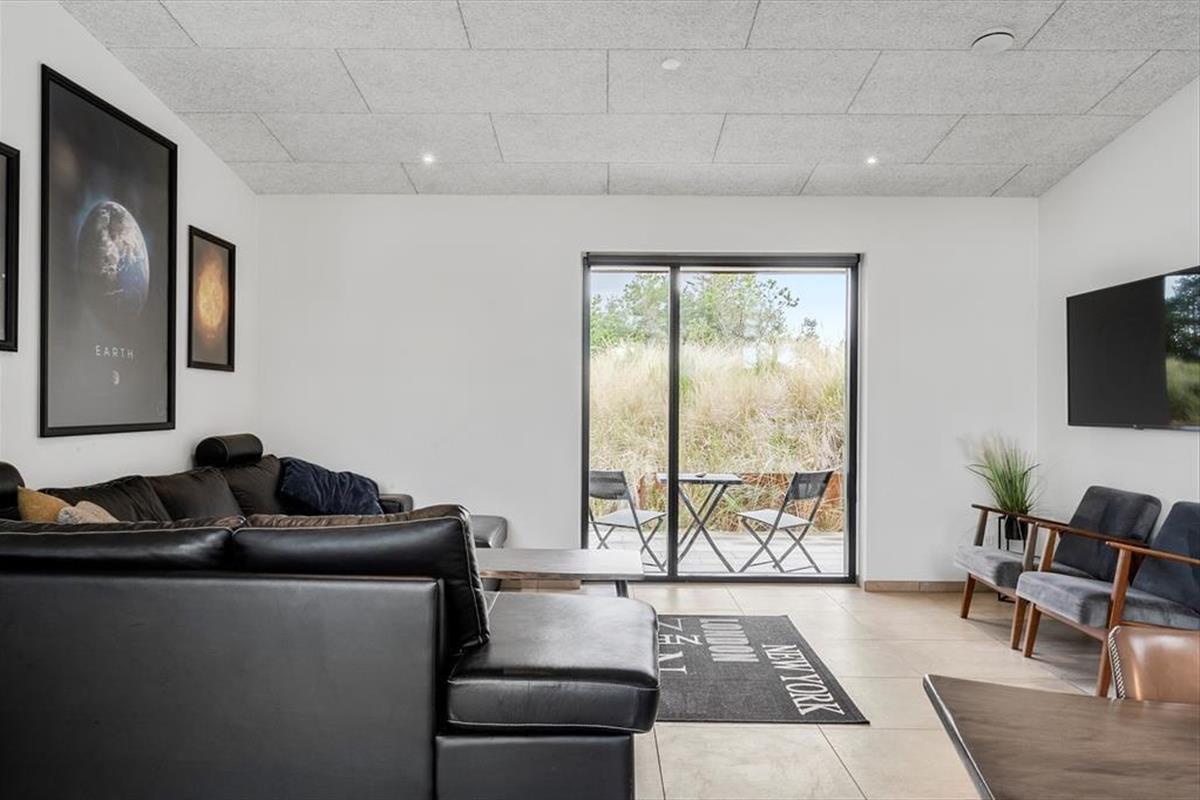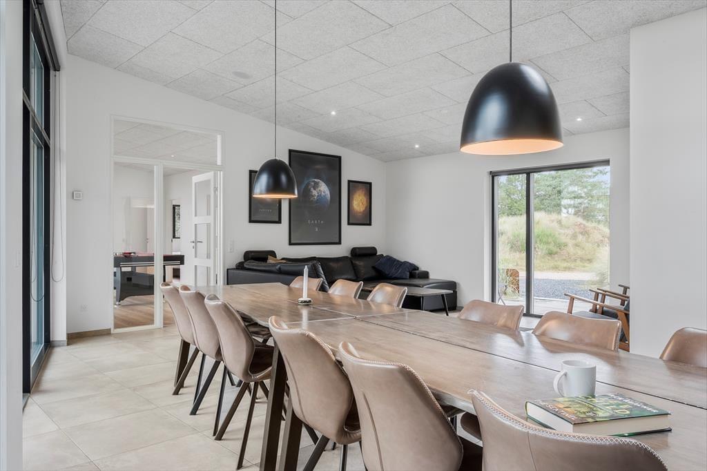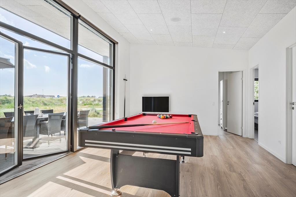 Das Urlaubsdomizil der Spitzenklasse lässt all Ihre Urlaubsträume in Erfüllung gehen. Unmittelbar nach dem ersten Betreten des Eingangsbereichs wird ersichtlich, dass das Haus nach allen Regeln der Kunst gebaut und eingerichtet wurde. Der hervorragende Eindruck setzt sich von Raum zu Raum fort. Der herrliche Küchenbereich ist offen mit dem geschmackvoll eingerichteten Wohnraum kombiniert. In Letztgenannten können Sie sich auf komfortablen Sitzmöbeln entspannen, im Internet surfen und fernsehen. Dank Blåvands artenreichem Tierleben beobachten Sie in der Dämmerung mit ein wenig Glück Hasen und Rehe. Vom Wohnraum gelangen Sie direkt in den großen Aktivitätsraum, der mit einem Billardtisch ausgestattet ist. Falls Sie Ihre Spielekonsole mitbringen, können Sie diese am Fernseher im Aktivitätsraum anschließen.