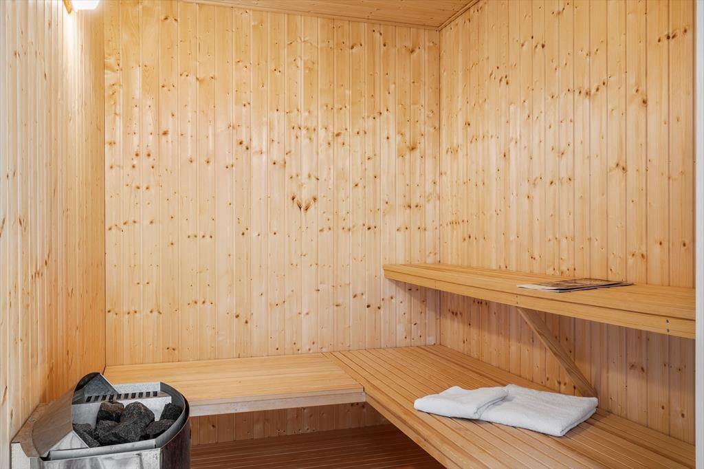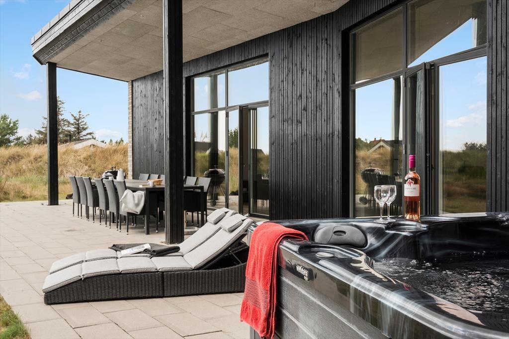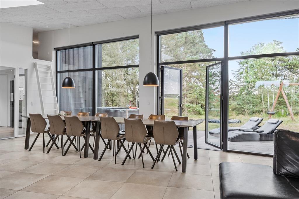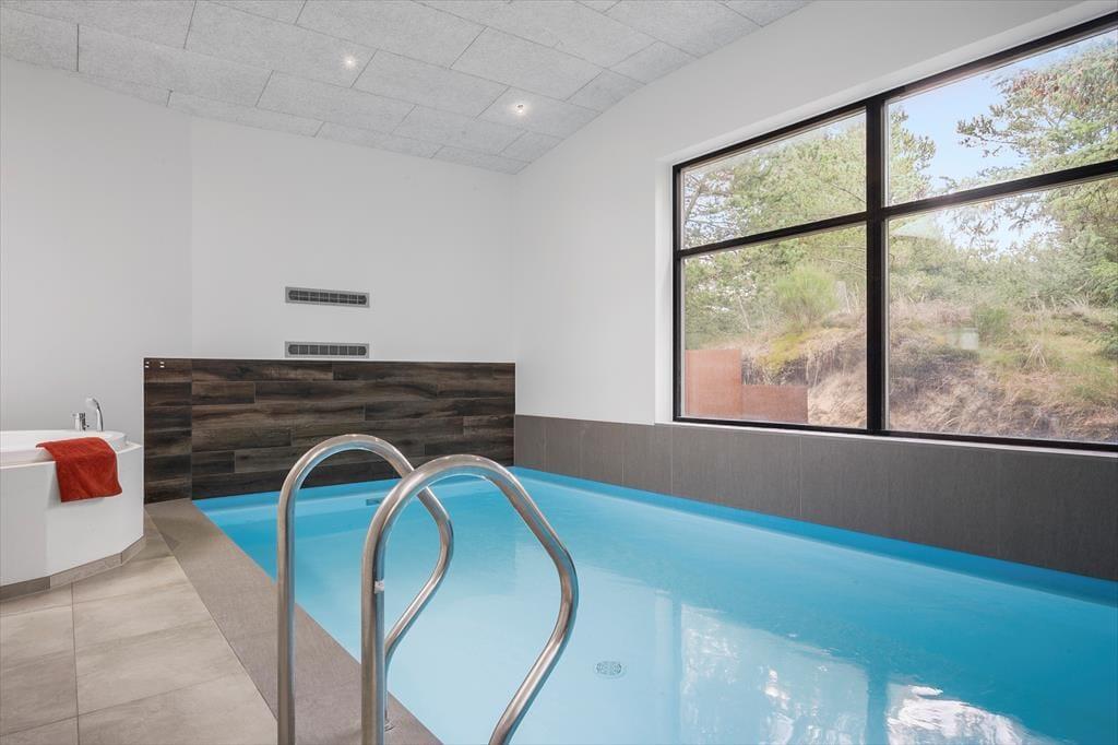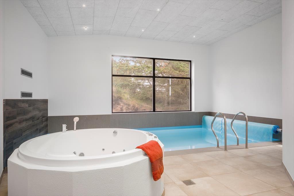 Im Wellnessbereich darf sich Ihre Familie auf einen 22 m² großen Pool freuen. Zu Momenten purer Erholung und Entspannung lädt der Standwasser-Whirlpool ein. Nach einem Bad in den frischen Nordseewellen am nahegelegenen Hvidbjerg Strand, ist es herrlich, sich in der hauseigenen Sauna aufzuwärmen.