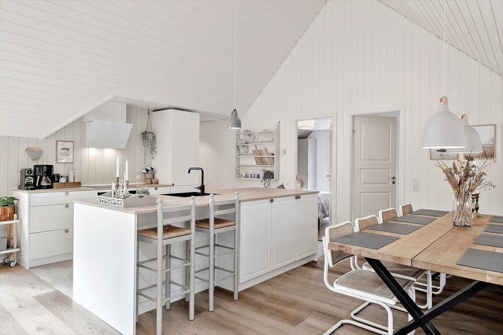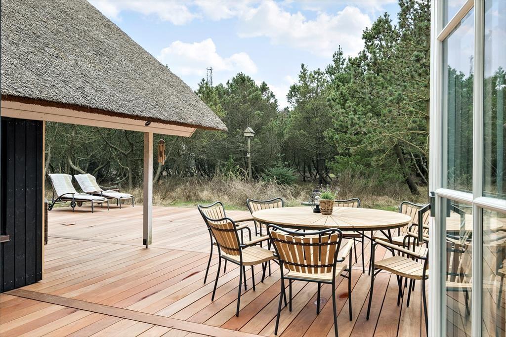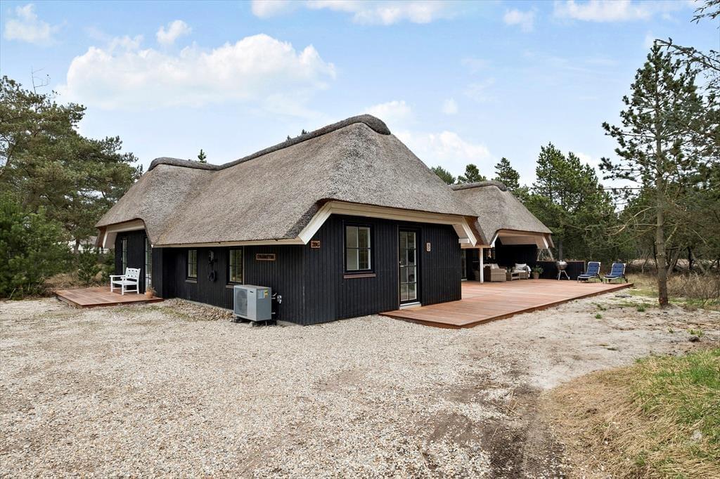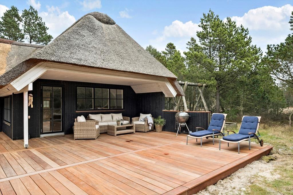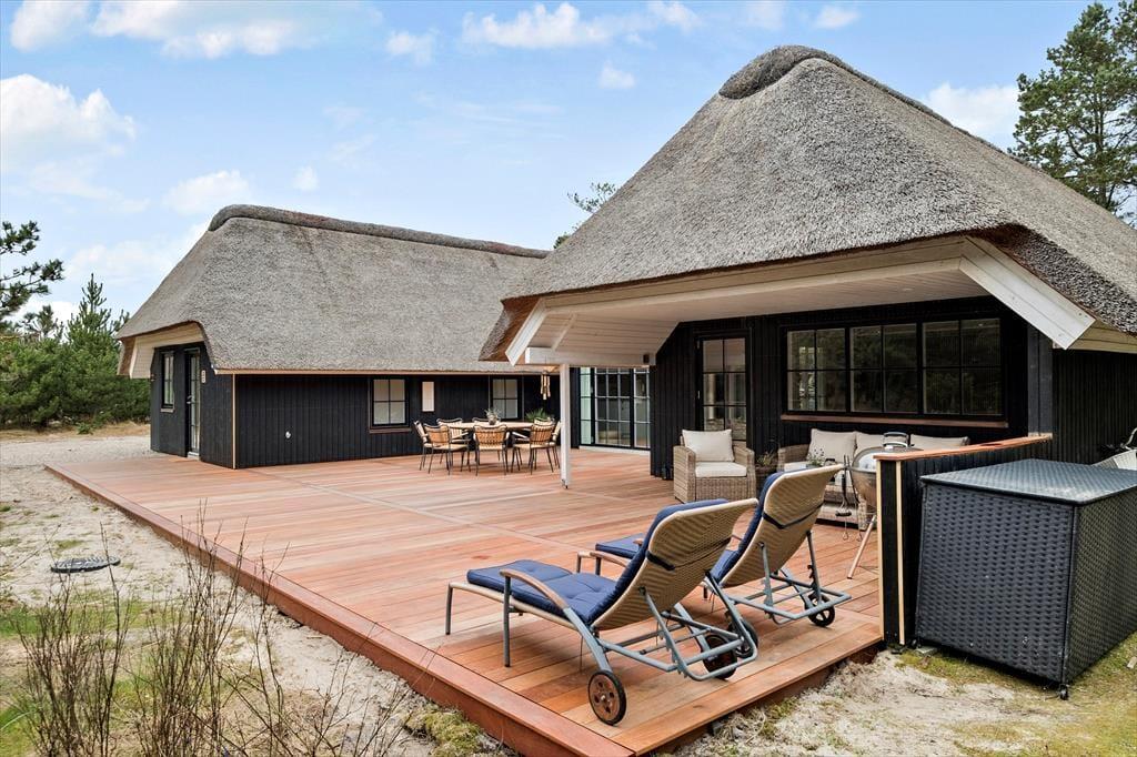 Dieses reetgedeckte Qualitätsferienhaus wurde im Jahr 2023 einer umfassenden Renovierung unterzogen. Es begeistert mit Ästhetik und Komfort. Das im Per Knoldsvej in Blåvand gelegene Haus bietet vier Schlafräume, drei Badezimmer, einen großen Aufenthaltsraum und einen herrlichen Poolbereich. Bis zu acht Personen können hier Ihren Urlaub verbringen.