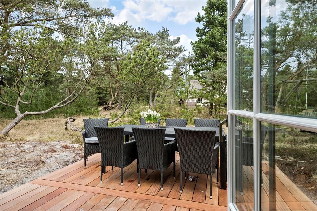 Friedvoll und ruhig geht es am Ende des Per Knoldsvejs zu. Zahlreiche kleine Schotterwege und Pfade machen es Ihnen leicht, in die reizvolle Natur zu gelangen, die den Badeort Blåvand umgibt. In der zügig erreichten Ortsmitte laden diverse schöne Geschäfte und gute Restaurants das gesamte Jahr hindurch zum Bummeln und Verweilen ein. Nach rund einem Kilometer erreichen Sie den Sandstrand, der bestes Badevergnügen bietet. In den kühleren Jahreszeiten können Sie zu langen Strandspaziergängen entlang der Nordsee aufbrechen. Besuchen Sie den etwas nördlich gelegenen Leuchtturm Blåvandshuk Fyr, dessen Licht unermüdlich über dem westlichsten Punkt Dänemarks kreist. Von der Aussichtsplattform genießen Sie einen prachtvollen Ausblick über den Badeort, die Nordsee und die schöne Umgebung.