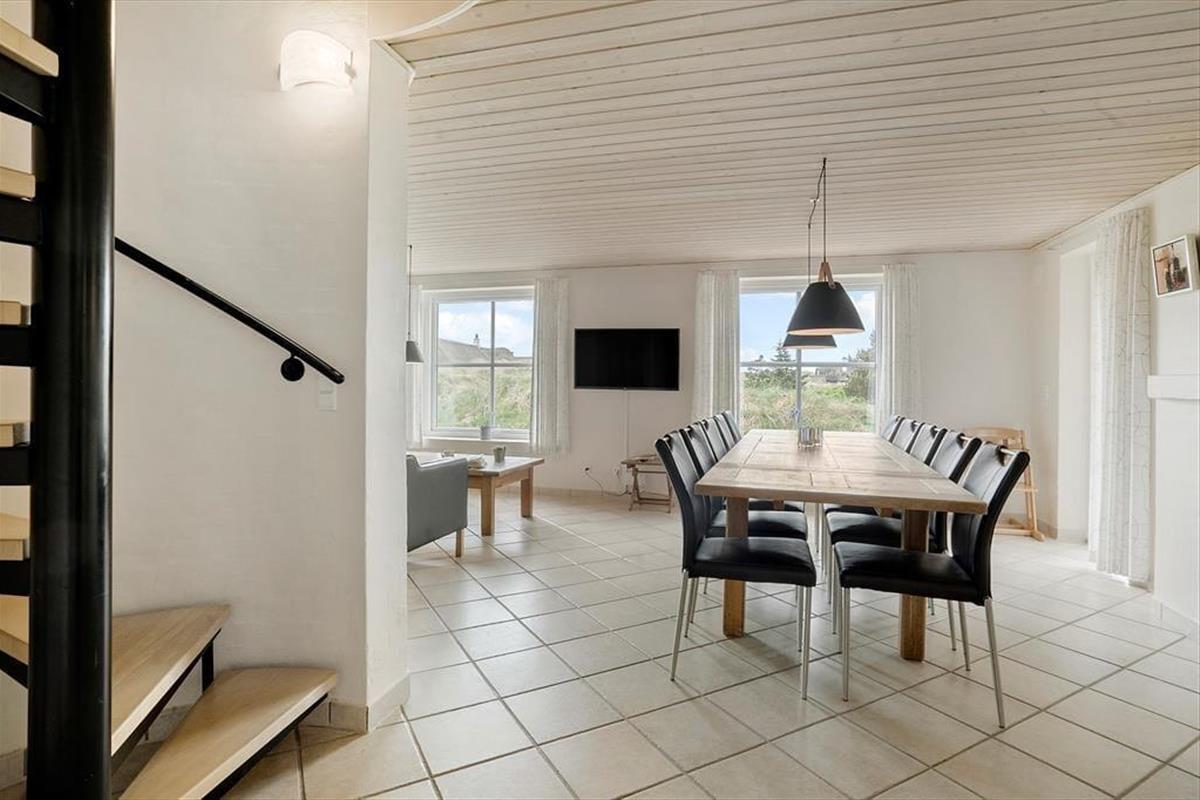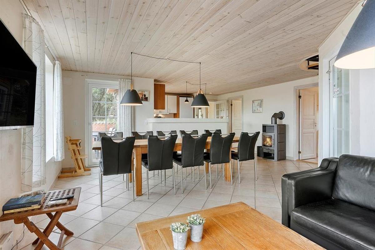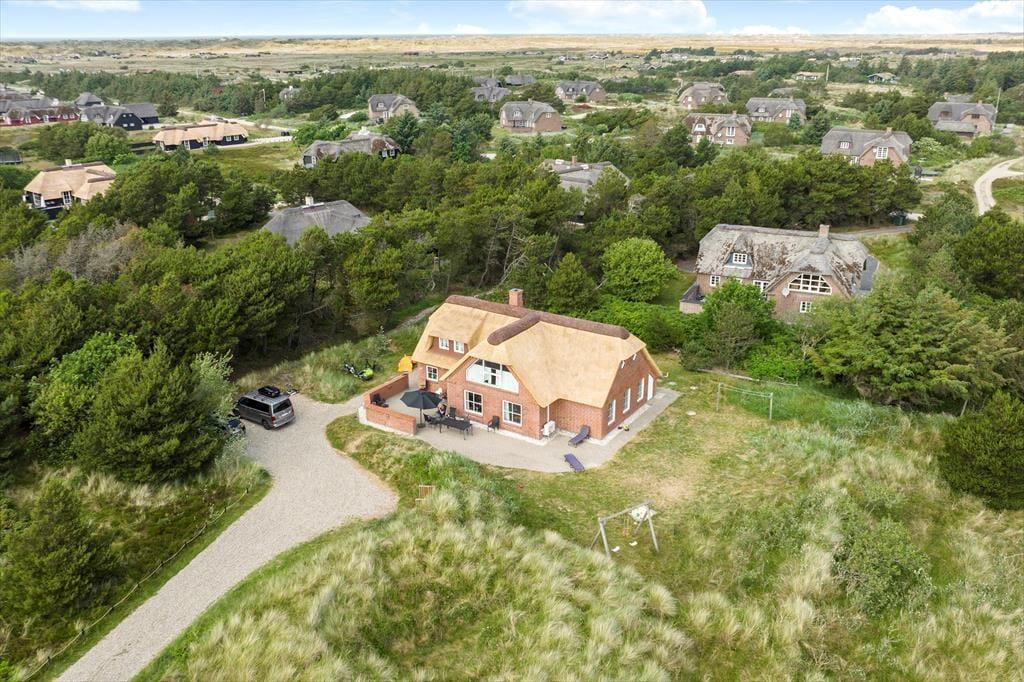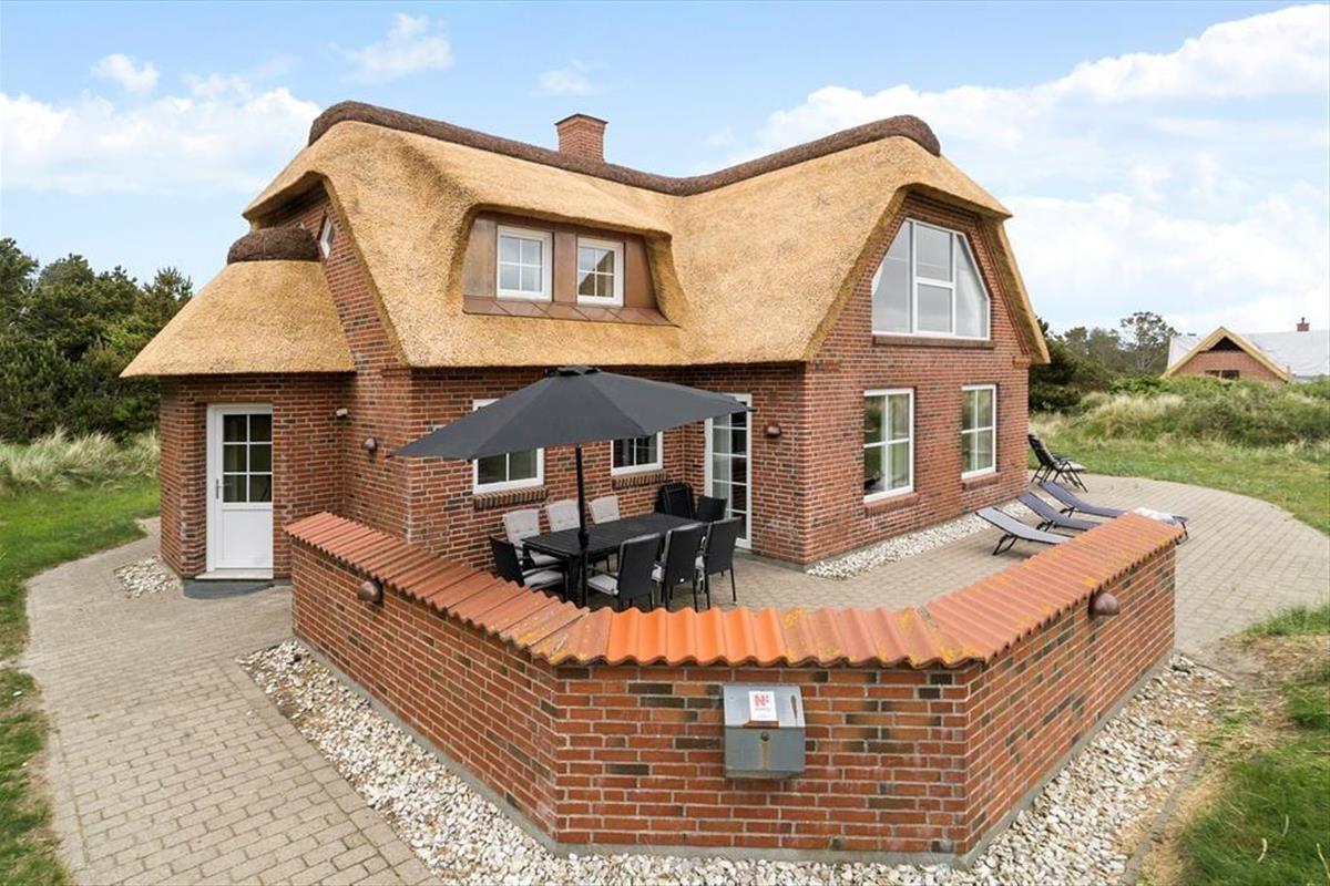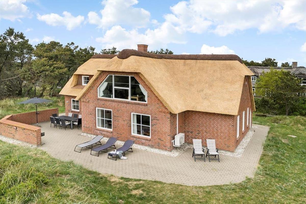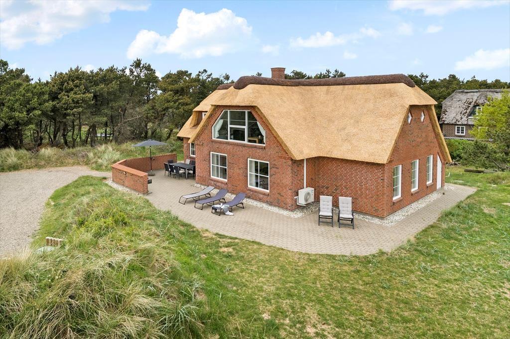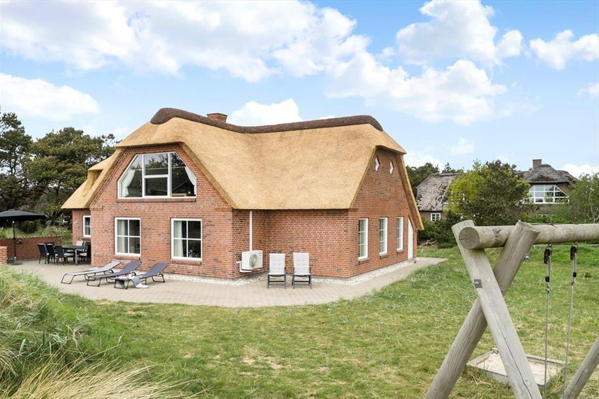 Die Poolabteilung und die attraktive Lage sind allerdings nur zwei der Vorzüge dieses Urlaubsdomizils. Freuen Sie sich auch auf zahlreiche andere Qualitäten, die Ihnen dieses Objekt zu bieten hat. Das ansprechende Gebäude fügt sich mit seinem Reetdach wunderbar in die mit Strandhafer bedeckte Küstenlandschaft ein. Im Inneren des Hauses empfängt Sie die gut eingerichtete Wohnfläche mit ganzen 205 m², die Ihnen angenehm viel Bewegungsfreiheit verspricht. Die Aufteilung der Wohnfläche ist perfekt auf eine Belegung mit bis zu zehn Urlaubern abgestimmt. Die insgesamt fünf Schlafräume und zwei Badezimmer sind vernünftigerweise auf das Erdgeschoss und das obere Stockwerk aufgeteilt. In jedem Geschoss lockt zudem ein Wohnraum. Das Erdgeschoss beherbergt einen gemütlichen, kombinierten Küchen- und Wohnbereich mit einem Esstisch, Sofas, einem Kaminofen und der gut ausgestatteten Küchenabteilung. Der Wohnraum im Obergeschoss lädt mit seinen weichen Sitzmöbeln, dem Fernseher und dem Ausblick in die schöne Natur ringsum zu wunderbar entspannten Stunden im Kreise Ihrer Lieben ein. Unabhängig davon, ob Sie sich völlig entspannen oder mit der Familie spielen möchten, lockt stets die hauseigene Poolabteilung, die Sie neben dem Pool auch mit einer Sauna und einem Whirlpool für fünf Personen verwöhnt.
