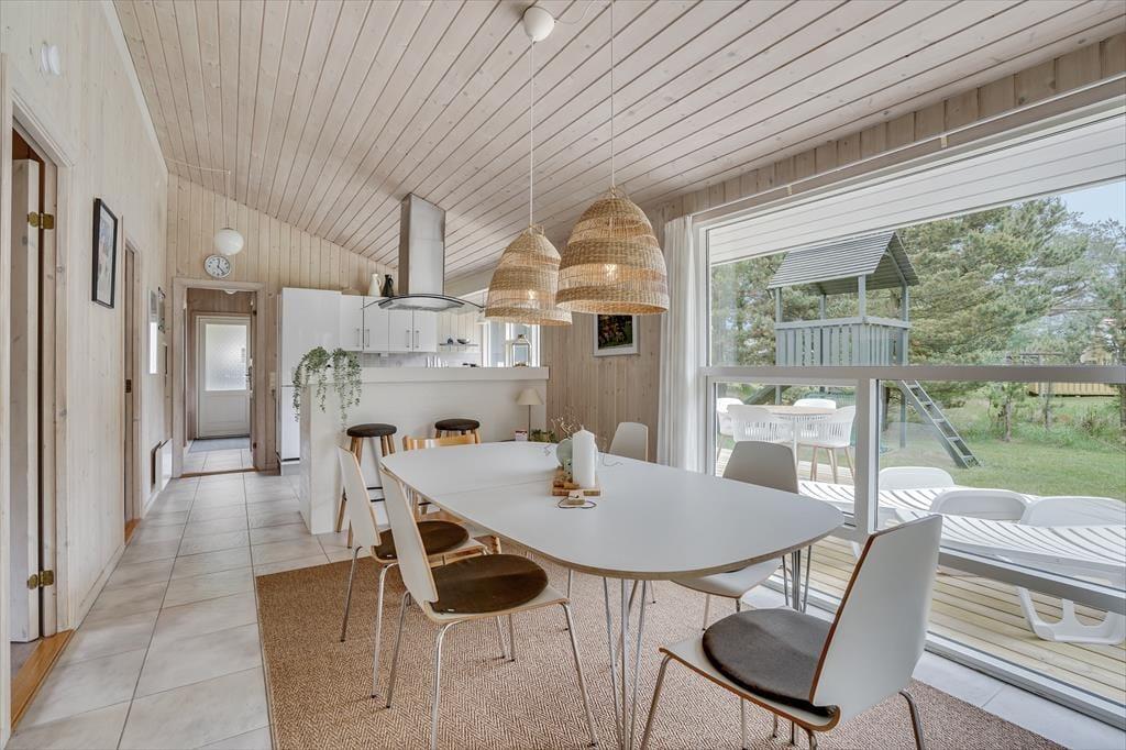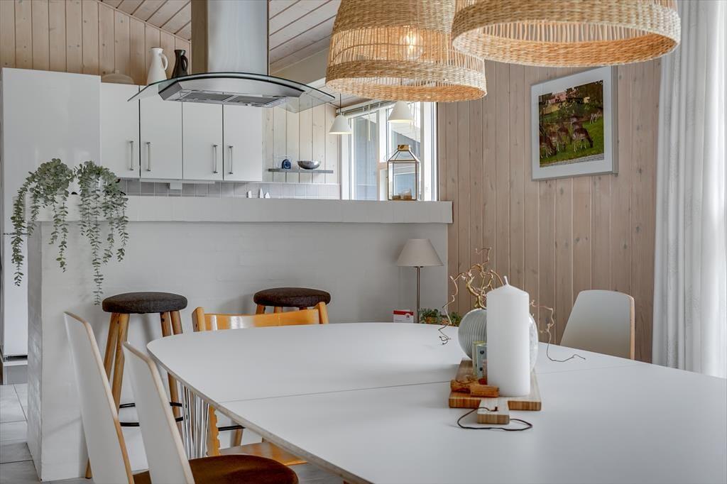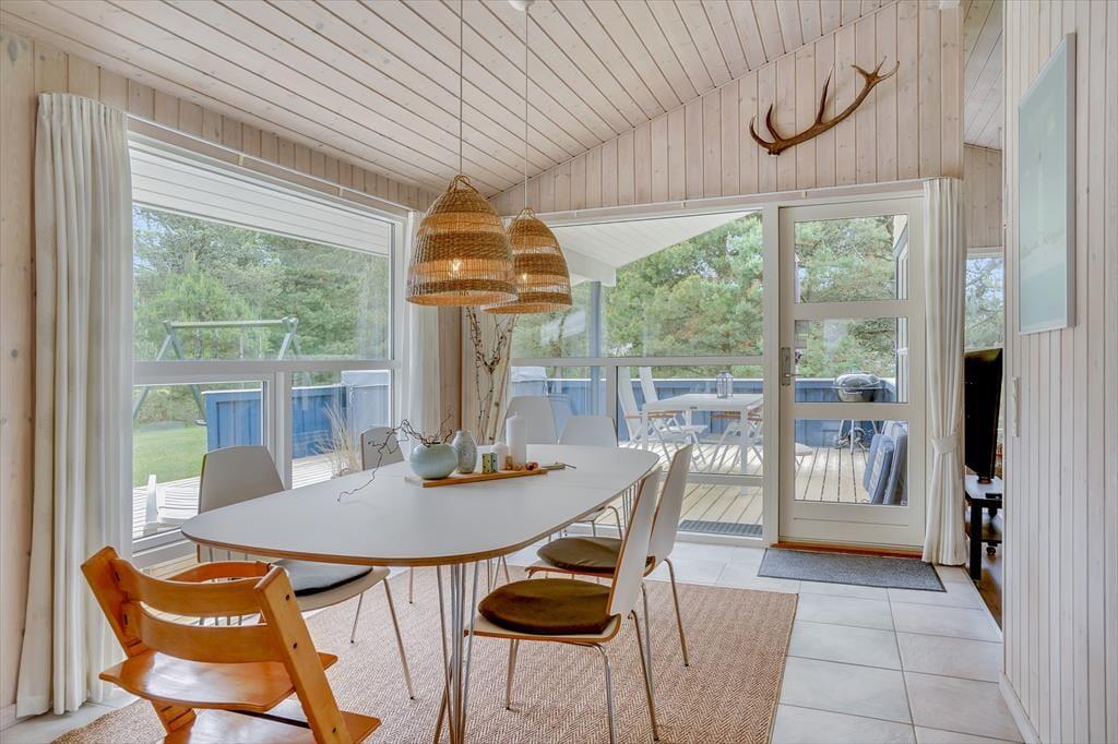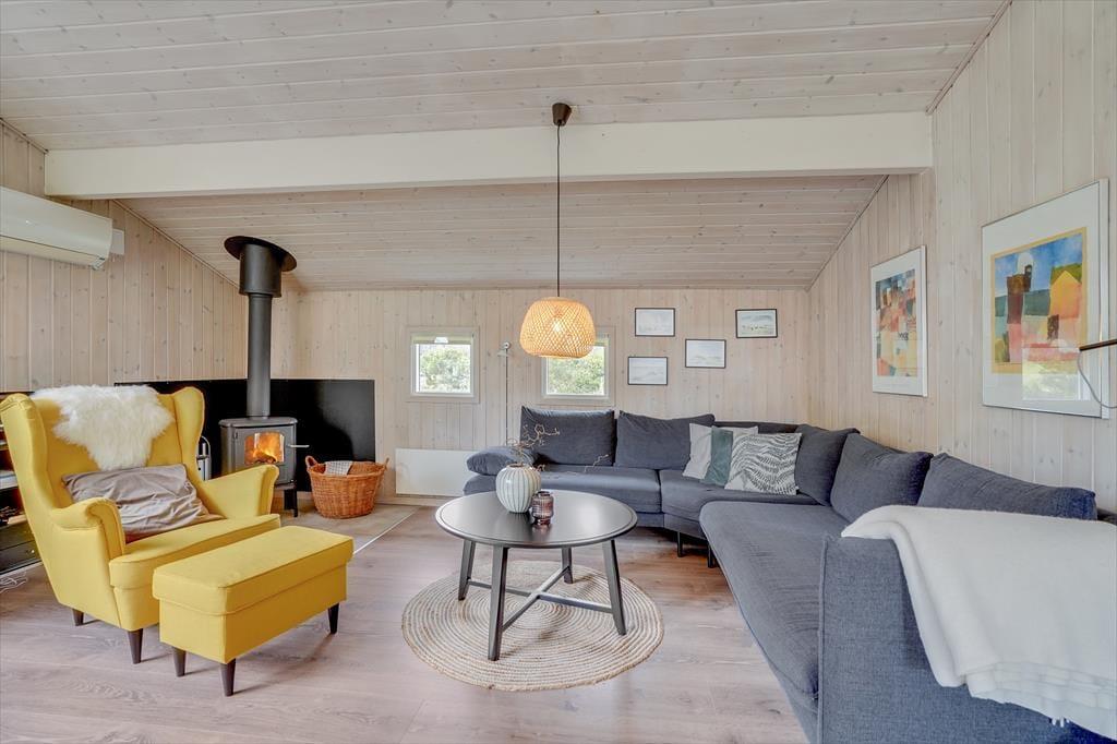 Das 100 m² große Ferienhaus wurde erfolgreich renoviert, sodass die Einrichtung hell und die Atmosphäre einladend ist. Der schöne Wohnbereich des Hauses lädt zu vielen gemütlichen Stunden am Esstisch und in der Sofaecke in der Nähe des Holzofens ein, und in der offenen und gut ausgestatteten Küche haben Sie viel Platz zum Kochen. In den drei Schlafzimmern können Sie sich auf eine gute Nachtruhe in den bequemen Betten freuen, und wenn Sie bereit sind aufzustehen, können Sie sich im großen Badezimmer mit einer Dusche erfrischen. Wenn Sie eher in der Stimmung für Wellness und Entspannung sind, können Sie dies in der Sauna im Badezimmer tun.