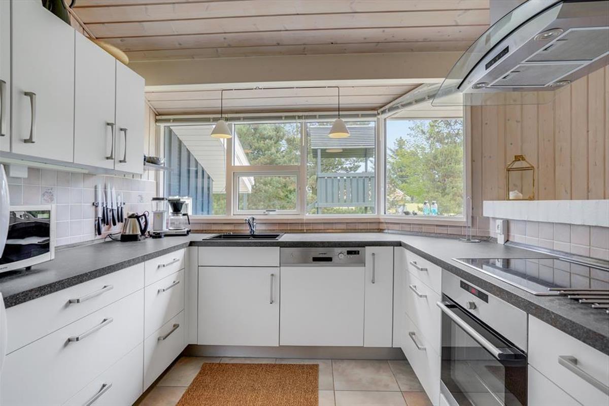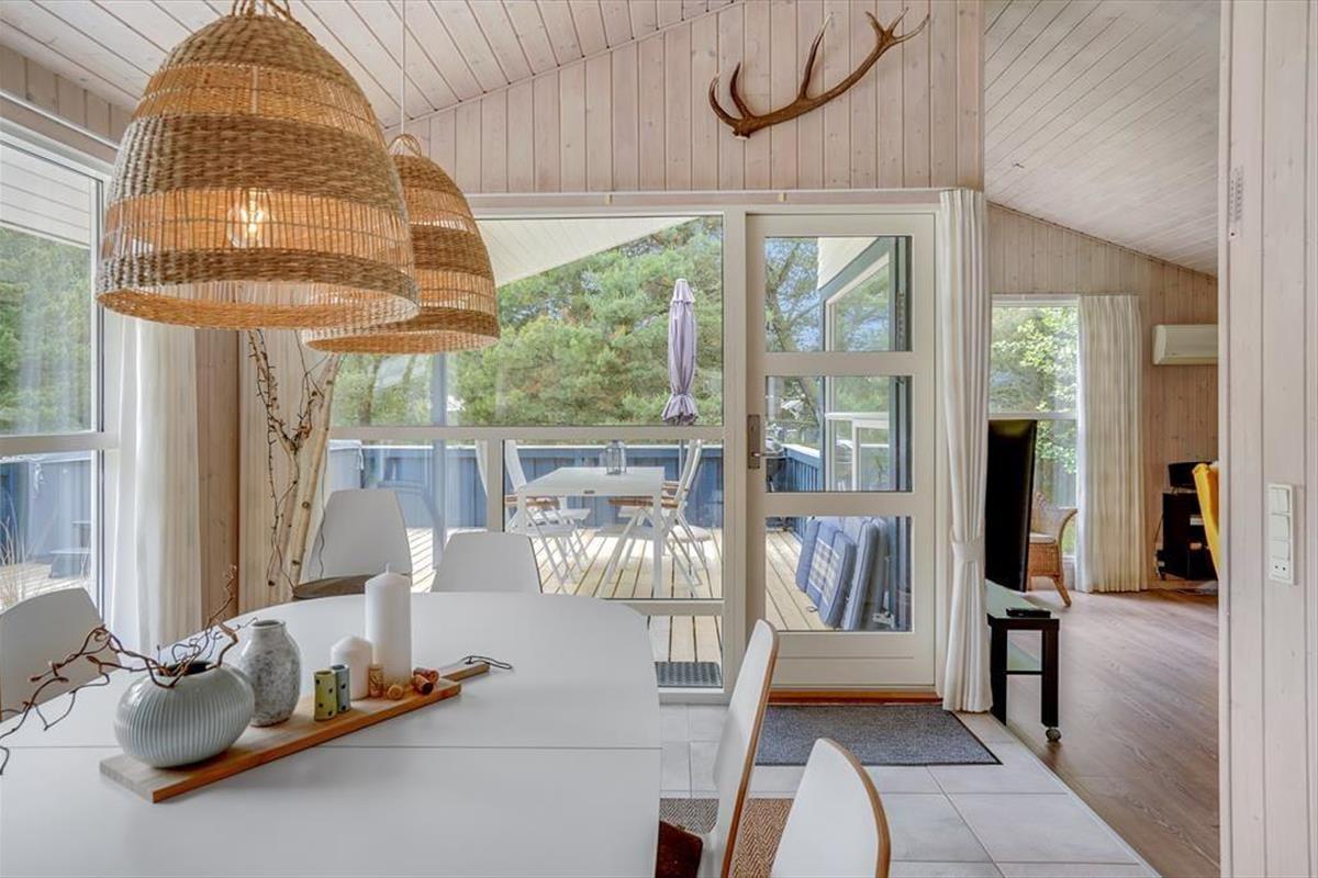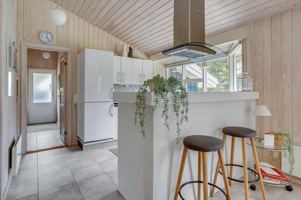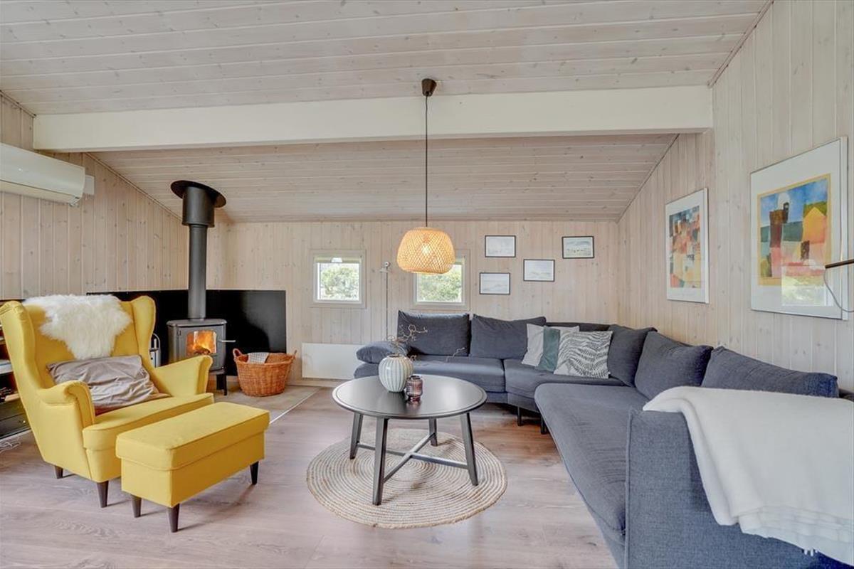 Das 100 m² große Ferienhaus wurde erfolgreich renoviert, sodass die Einrichtung hell und die Atmosphäre einladend ist. Der schöne Wohnbereich des Hauses lädt zu vielen gemütlichen Stunden am Esstisch und in der Sofaecke in der Nähe des Holzofens ein, und in der offenen und gut ausgestatteten Küche haben Sie viel Platz zum Kochen. In den drei Schlafzimmern können Sie sich auf eine gute Nachtruhe in den bequemen Betten freuen, und wenn Sie bereit sind aufzustehen, können Sie sich im großen Badezimmer mit einer Dusche erfrischen. Wenn Sie eher in der Stimmung für Wellness und Entspannung sind, können Sie dies in der Sauna im Badezimmer tun.