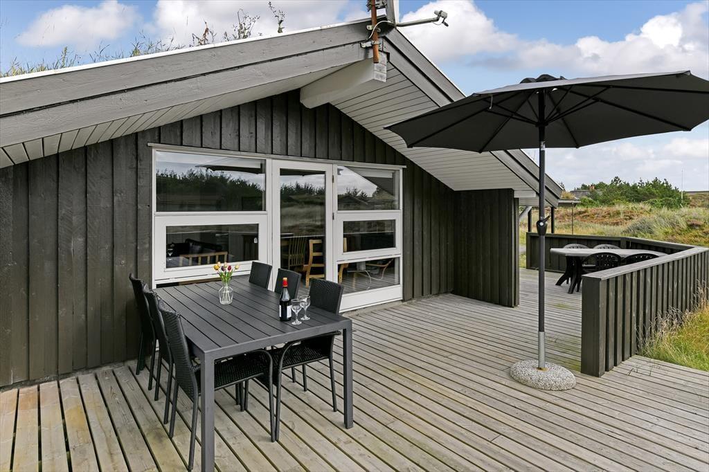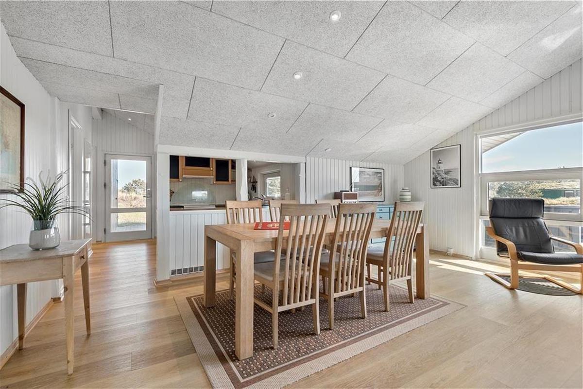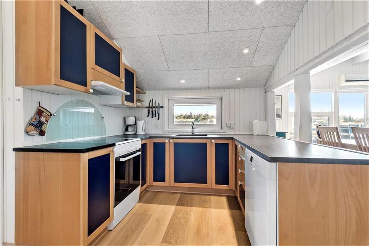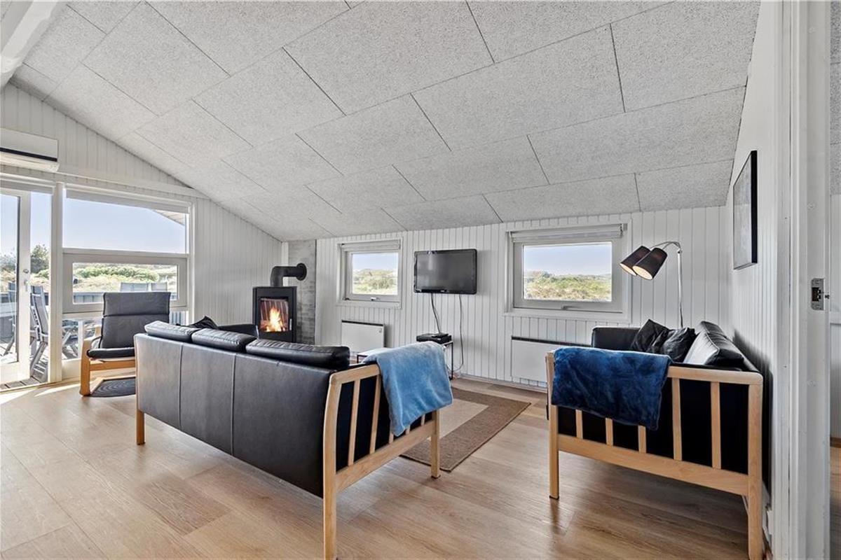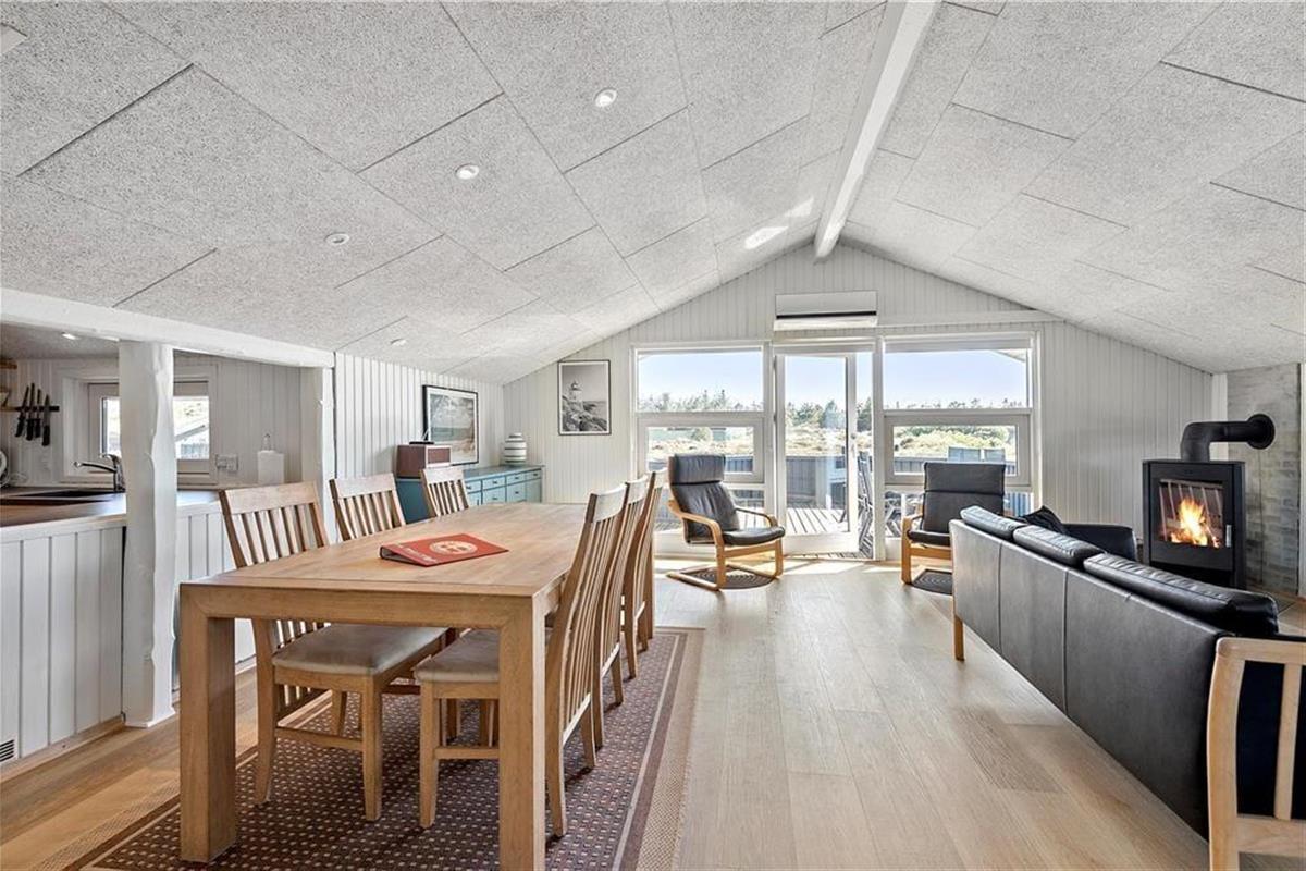Vakantiehuis in Blåvand Strand og By, West-Jutland, met plaats voor 6 volwassenen en 1 huisdieren. De woning heeft een gezellig interieur met o.a. een houtkachel, en beschikt daarnaast over een wasmachine, een vaatwasser en een wasdroger.