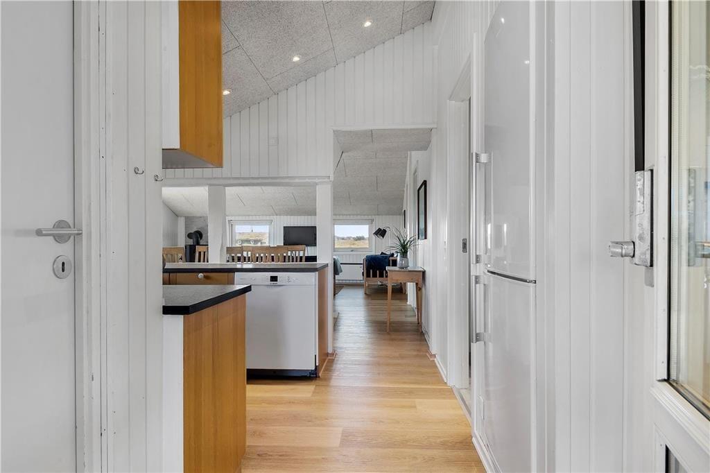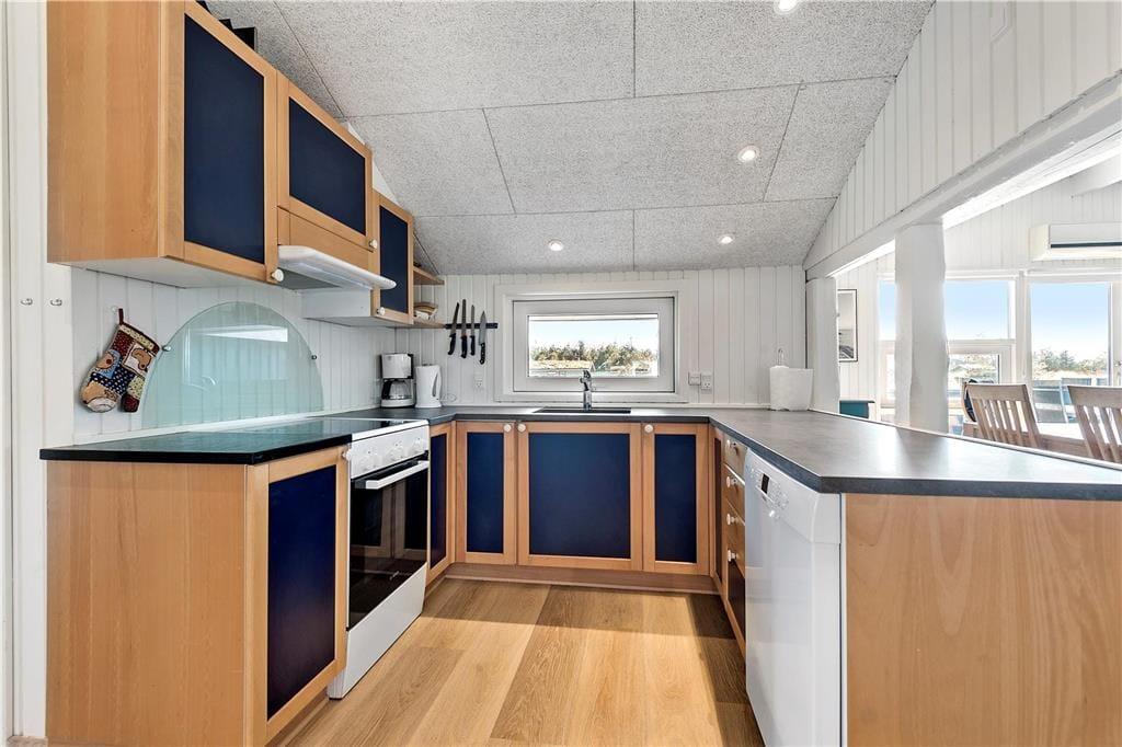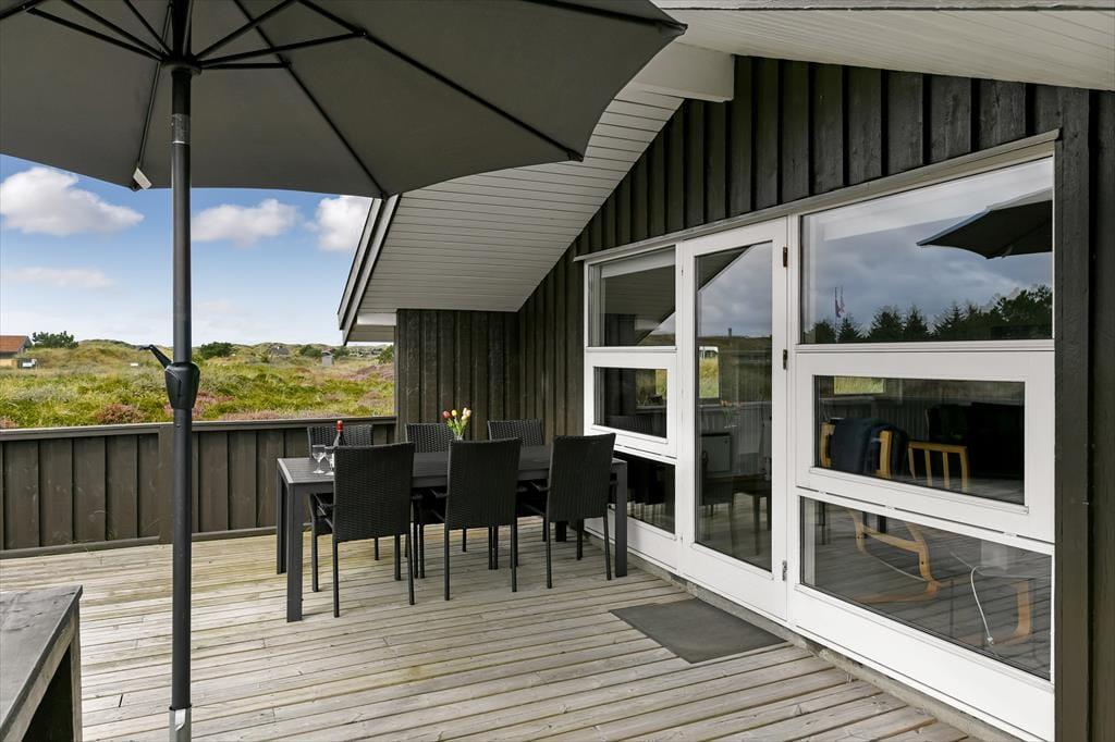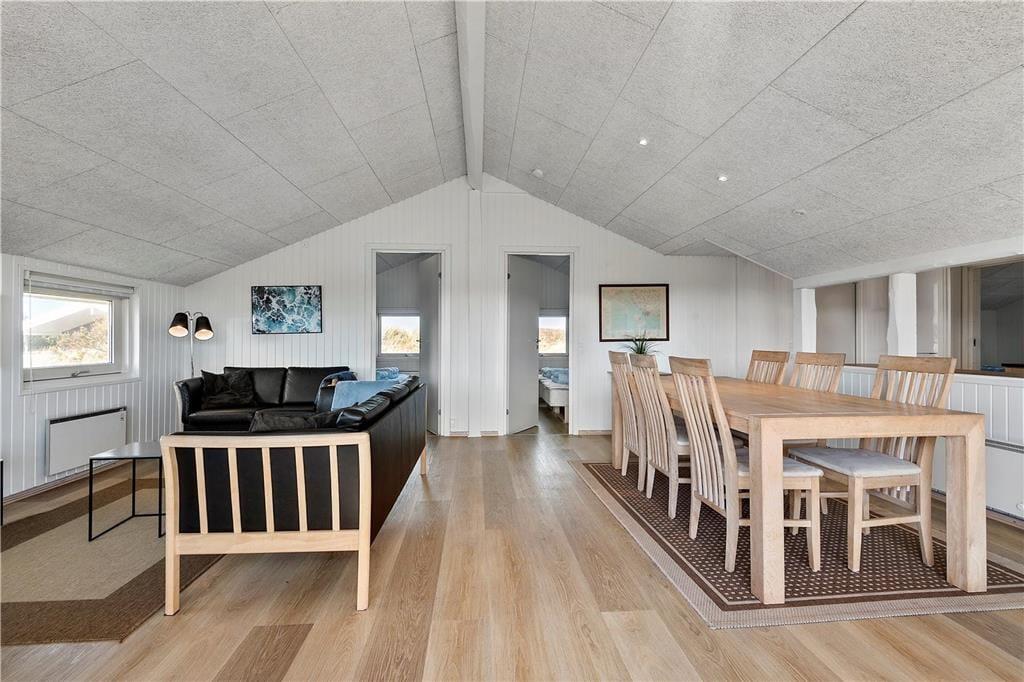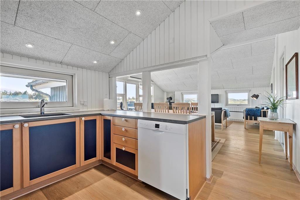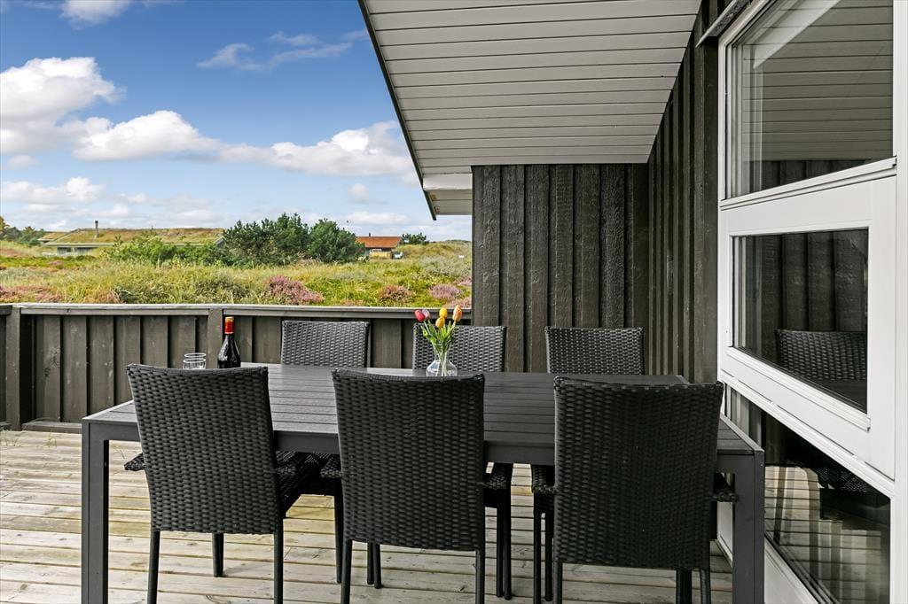 Vakantiehuis in Blåvand Strand og By, West-Jutland, met plaats voor 6 volwassenen en 1 huisdieren. De woning heeft een gezellig interieur met o.a. een houtkachel, en beschikt daarnaast over een wasmachine, een vaatwasser en een wasdroger.