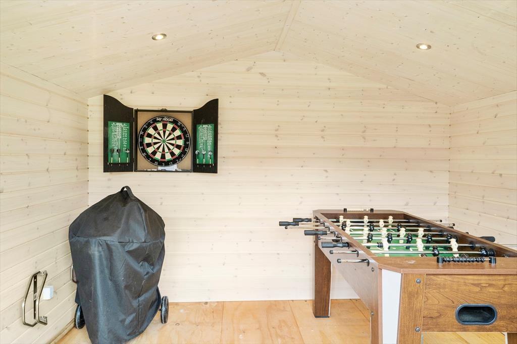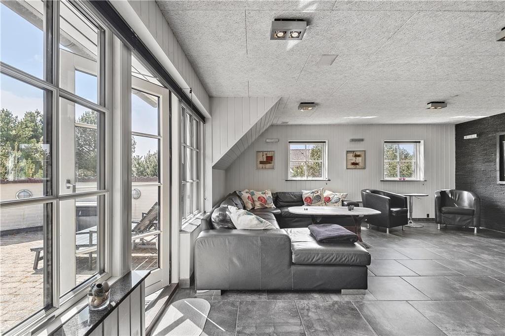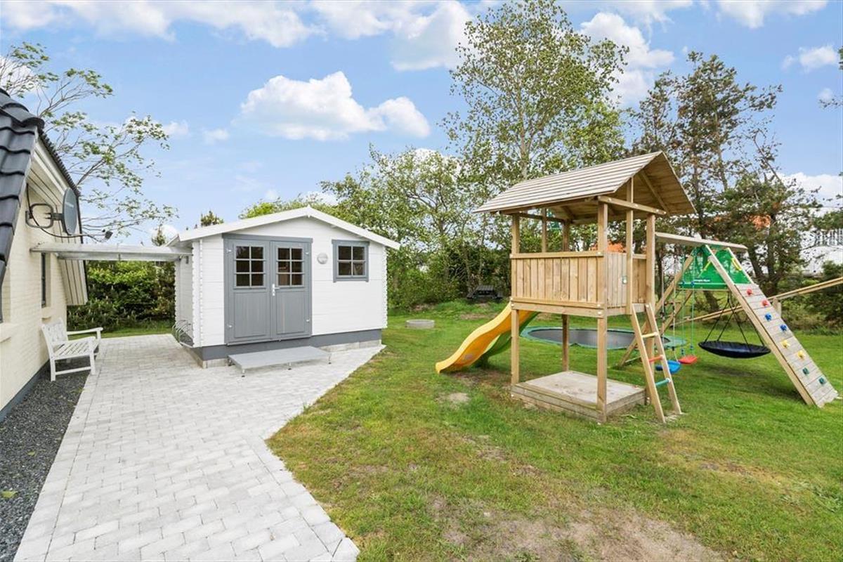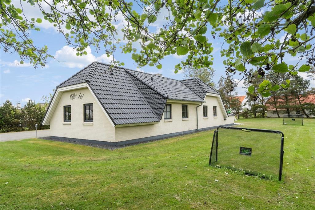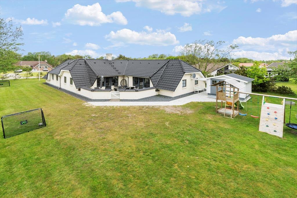 Geniet van dit ruim vakantiehuis in Blåvand met sauna, indoor whirlpool en veel speelplezier buiten.