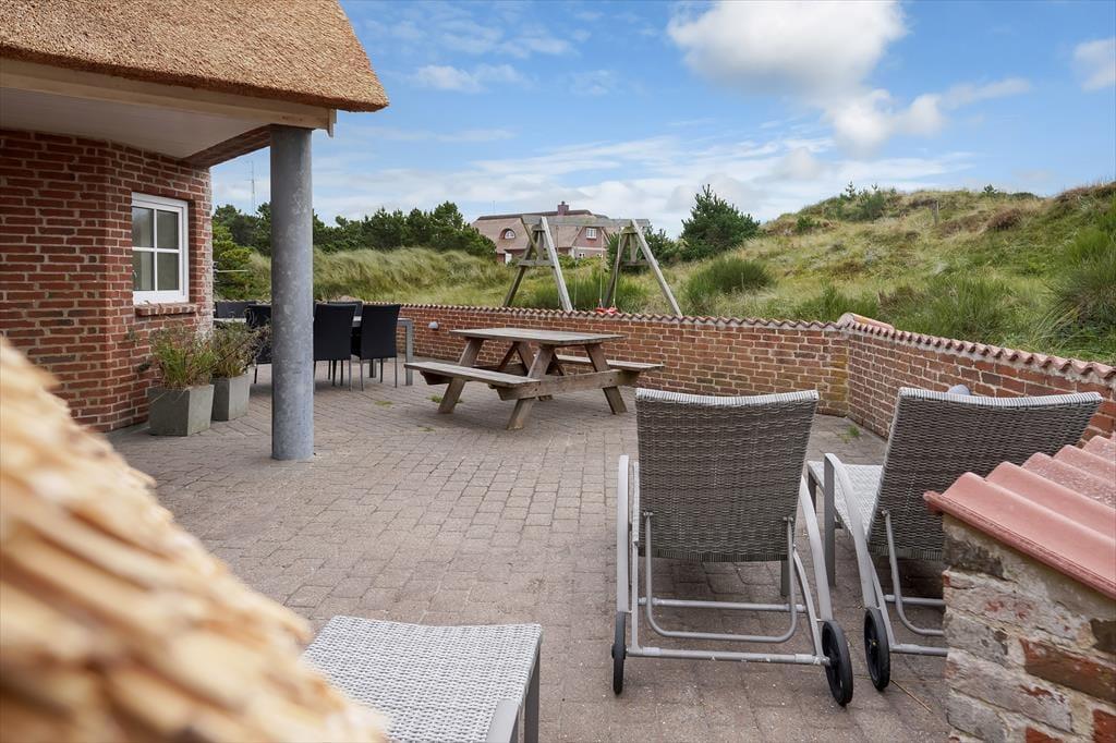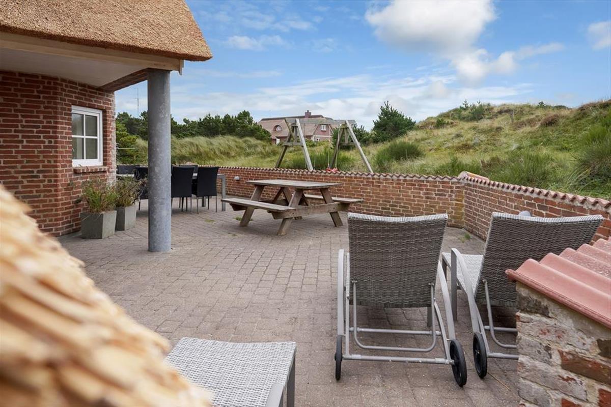 Die große Terrasse des Ferienhauses lädt von morgens bis abends zum Verweilen im Freien ein. Mit einer Tasse Kaffee in der Hand kannst du den Tag entspannt beginnen, die frische Meeresluft genießen und dem Rauschen der Wellen im Hintergrund lauschen. Die Terrasse bietet sowohl überdachte als auch offene Bereiche, sodass du je nach Bedarf ein sonniges oder schattiges Plätzchen finden kannst. Hier kannst du unter freiem Himmel speisen, deine Sommerfavoriten auf dem Grill zubereiten oder einfach mit einem guten Buch entspannen, während der Wind sanft durch das Strandhafergras weht.
