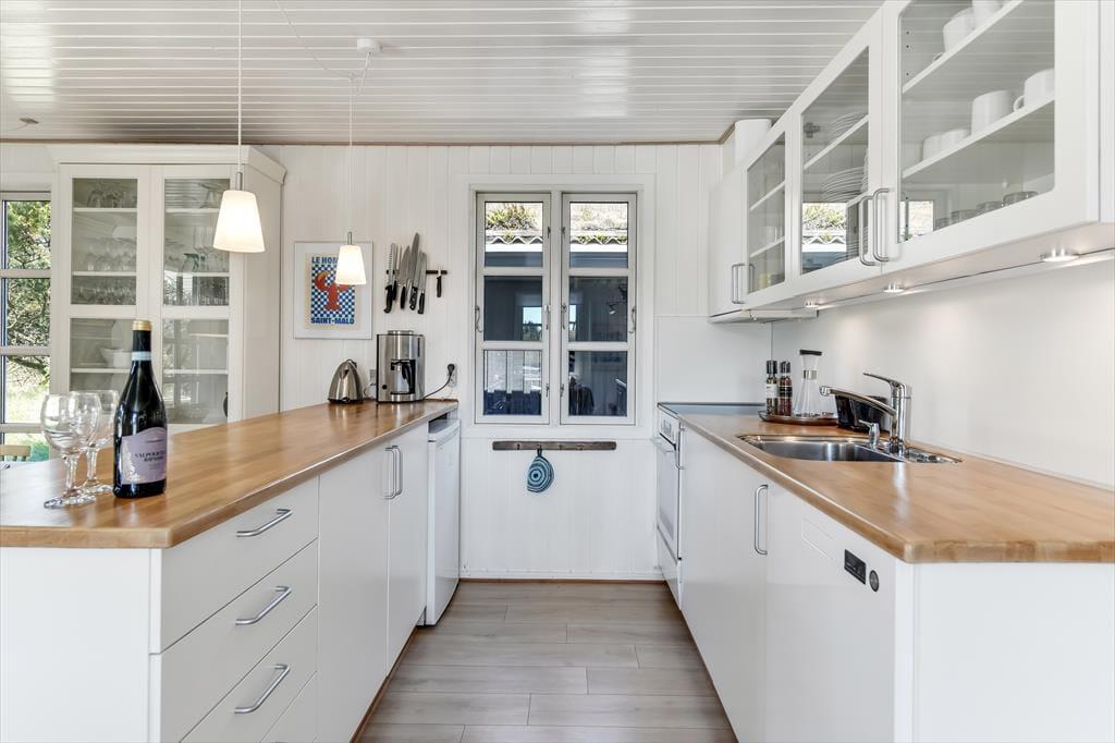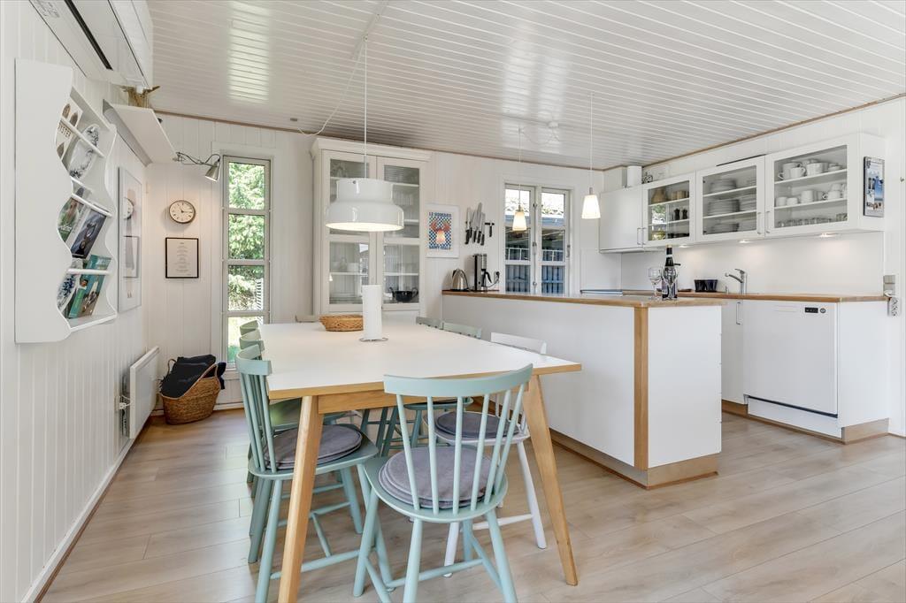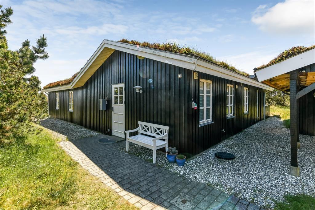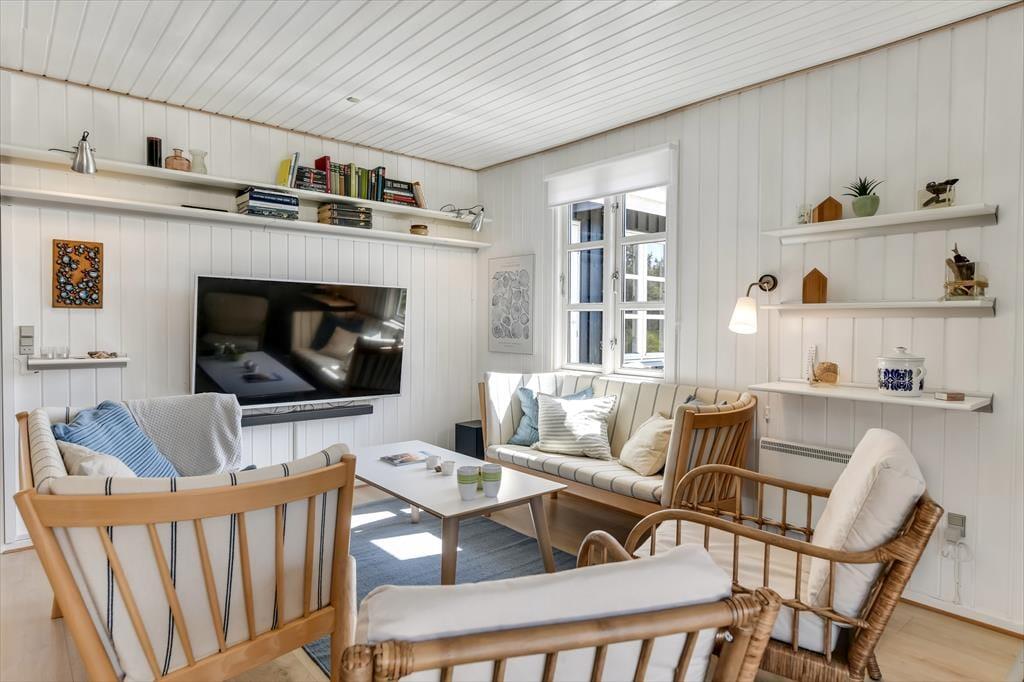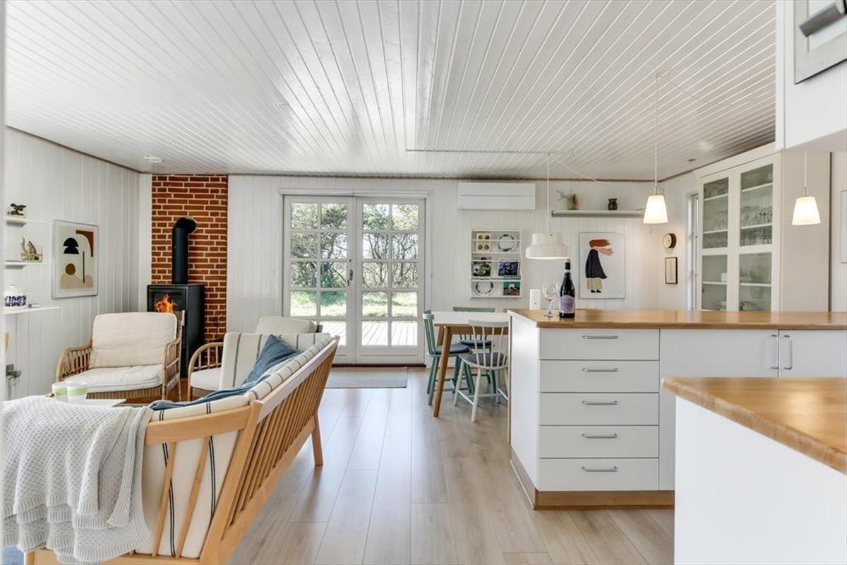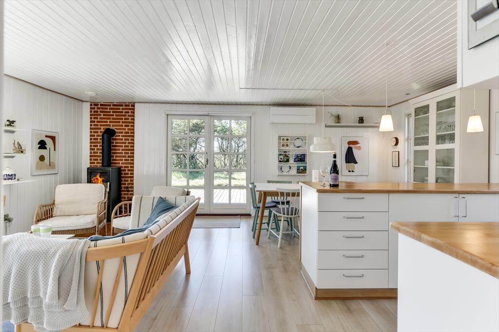 Vakantiehuis in Blåvand Strand og By, West-Jutland, met plaats voor 6 volwassenen en 2 huisdieren. De woning heeft een gezellig interieur met o.a. een houtkachel, en beschikt daarnaast over een wasmachine, een vaatwasser en een wasdroger.
