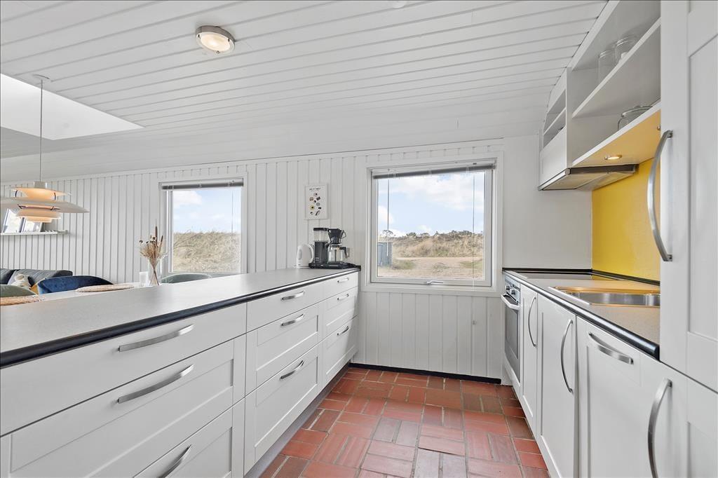 Im Hausinneren gibt es zahlreiche schöne Details, die Ihnen ins Auge stechen werden. Das reetgedeckte Holzferienhaus wurde im Jahr 2020 renoviert, was Sie beispielsweise schnell an der tollen, offenen Küche und am großen Flachbild-TV im Wohnraum sehen werden. Letzterer ist in eleganter Weise über dem schönen, eingebauten Kaminofen nahe der Sofaabteilung angebracht. Auch die Aussicht ist ein echtes Highlight. Während Sie es sich in einem der Sessel oder in geselliger Runde am Esstisch gemütlich machen, werden Sie mit einem schönen Ausblick auf Heideflächen und wogenden Strandhafer verwöhnt. Ebenso schön und gepflegt wie der Wohnraum präsentieren sich Ihnen auch die drei Schlafräume und das Badezimmer. Falls Sie zusätzlichen Platz benötigen, stehen für Sie im Nebengebäude ein weiterer Schlafraum und ein zusätzliches Badezimmer bereit.