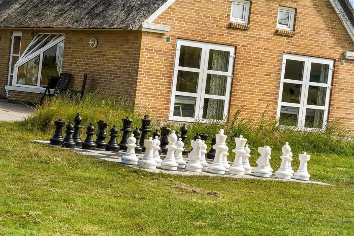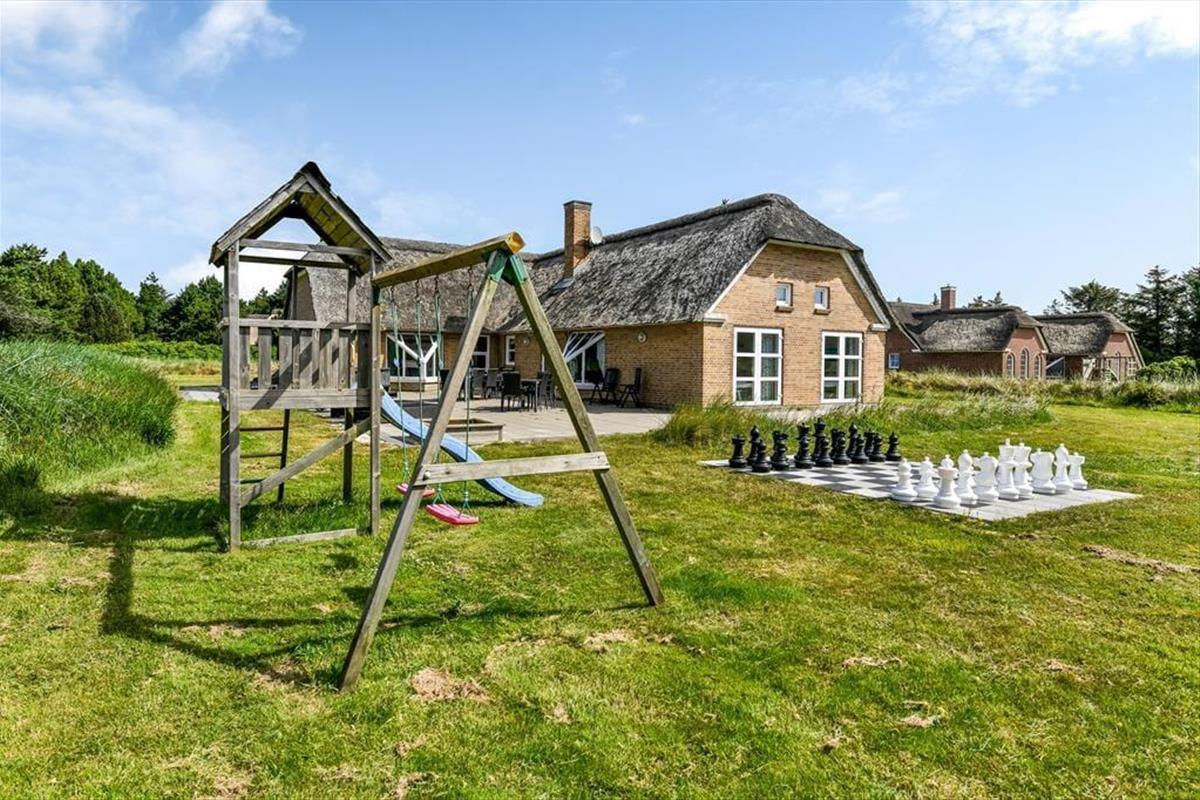Das 3.409 m² große Grundstück bietet Ihnen mit seiner Grasfläche beste Bedingungen zum Ballspielen. Die jüngsten Urlaubsgäste können sich darüber hinaus auch auf eine Schaukel und eine Sandkiste freuen. Draußen lädt das Outdoor-Schachspiel zu vielen gemütlichen Momenten ein. Wenn Sie sich in aller Ruhe im Freien niederlassen, ausgedehnte Sonnenbäder genießen oder gemeinsam grillen möchten, machen Sie es sich einfach auf Ihrer hauseigenen Terrasse gemütlich.