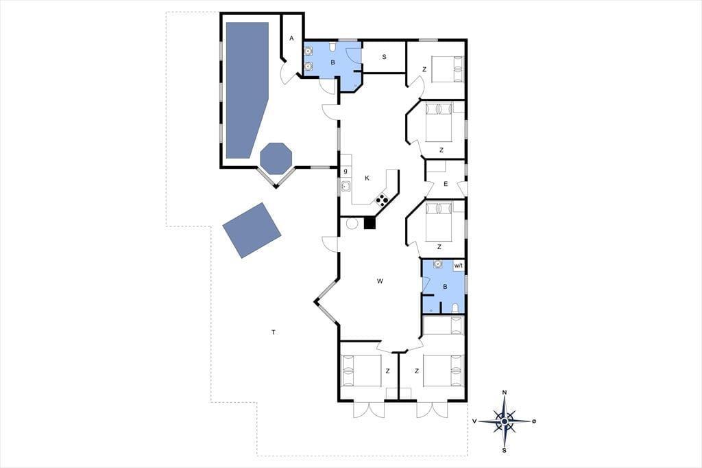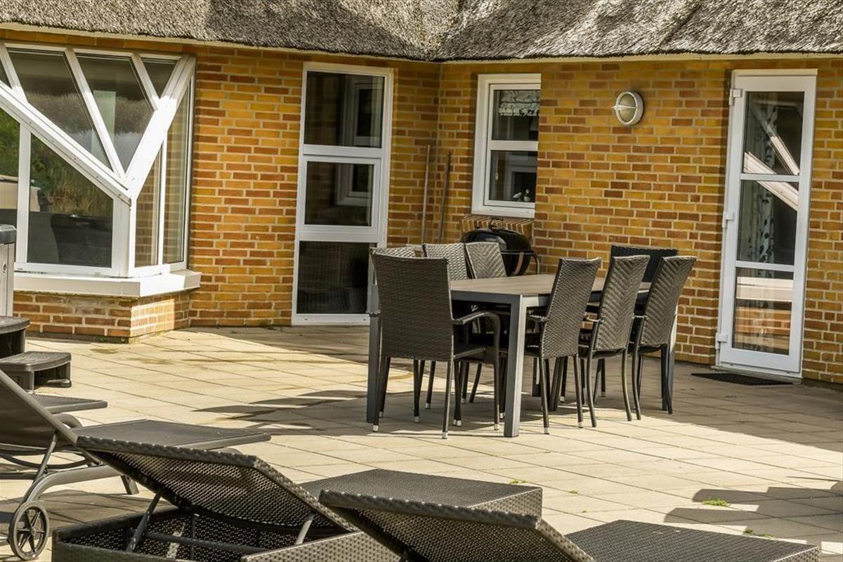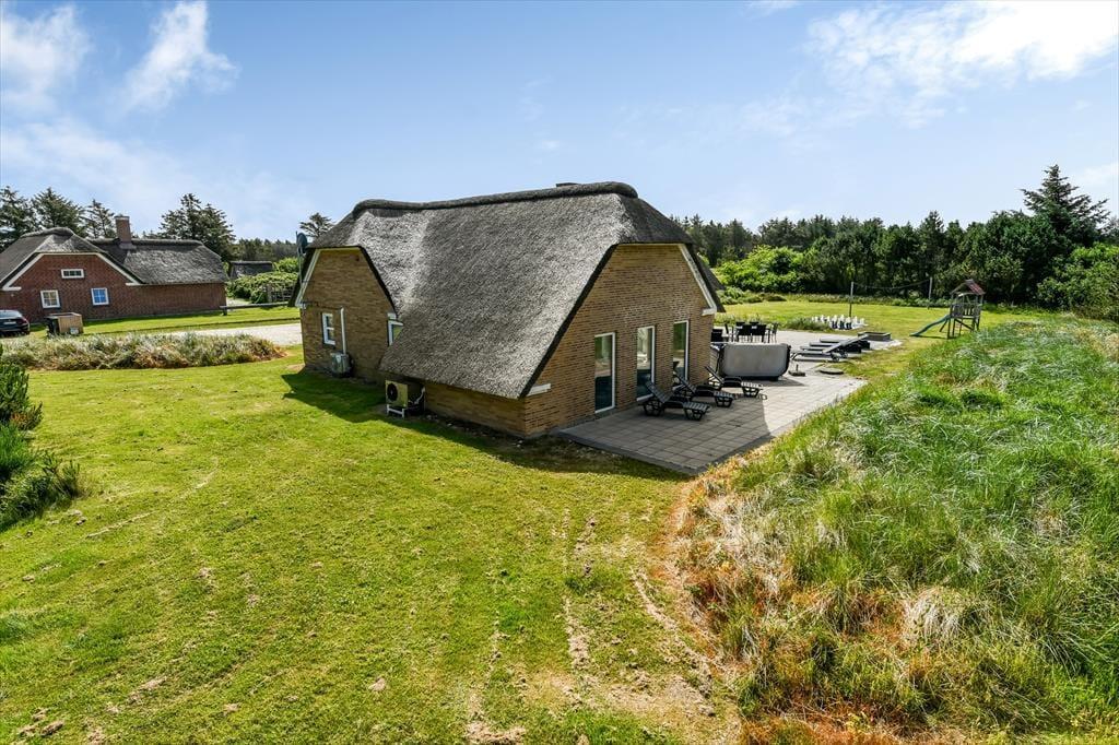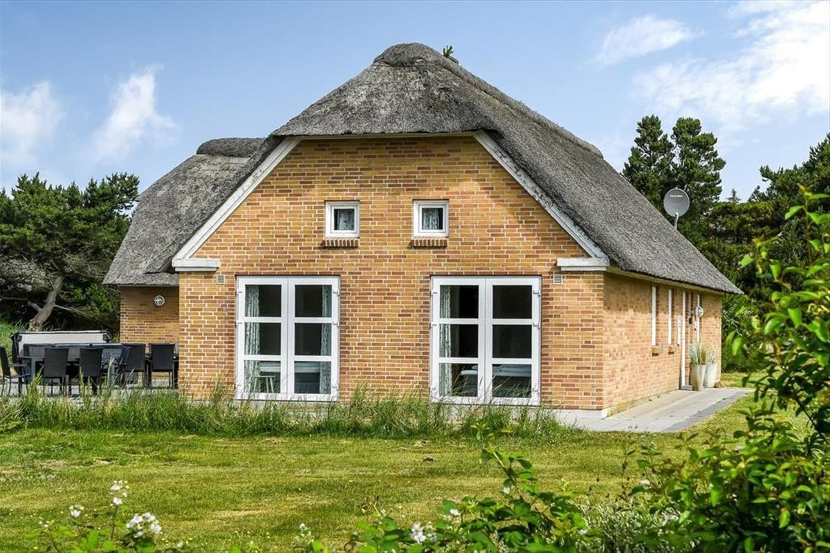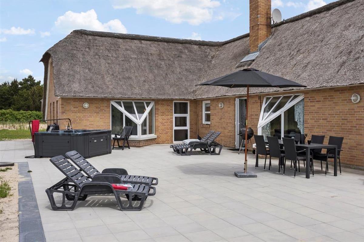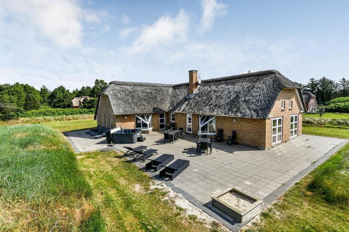 Das attraktive, reetgedeckte Ferienhaus bietet Ihnen mit seiner Wohnfläche von 187 m² angenehm viel Bewegungsfreiheit. Die Wohnfläche wurde wohldurchdacht aufgeteilt und beherbergt unter anderem fünf Schlafzimmer und zwei Badezimmer, sodass bis zu 11 Personen hier gemeinsam erholsame und stimmungsvolle Urlaubstage verleben können. Mitten im Haus befindet sich der große Aufenthaltsbereich, der sich aus einer offenen Kombination aus Wohnraum, Küche und Essbereich zusammensetzt. Für ein Maximum an echter dänischer Ferienhausgemütlichkeit sorgt der im Wohnbereich platzierte behaglich knisternde Kaminofen. Der verglaste Vorbau verwöhnt Sie im großen Wohnraum zusätzlich mit einem herrlichen Tageslichteinfall. Auch der angrenzende Poolbereich ist mit einem verglasten Vorbau ausgestattet. In diesem befindet sich allerdings der schöne Whirlpool, der Sie mit einer Aussicht auf das Grundstück verwöhnt. Neben dem Whirlpool und dem Swimmingpool steht selbstverständlich auch eine Sauna für Sie bereit. Traumhaft erholsamen und entspannten Urlaubstagen voller Spaß und Wellnessflair steht somit absolut nichts im Wege.