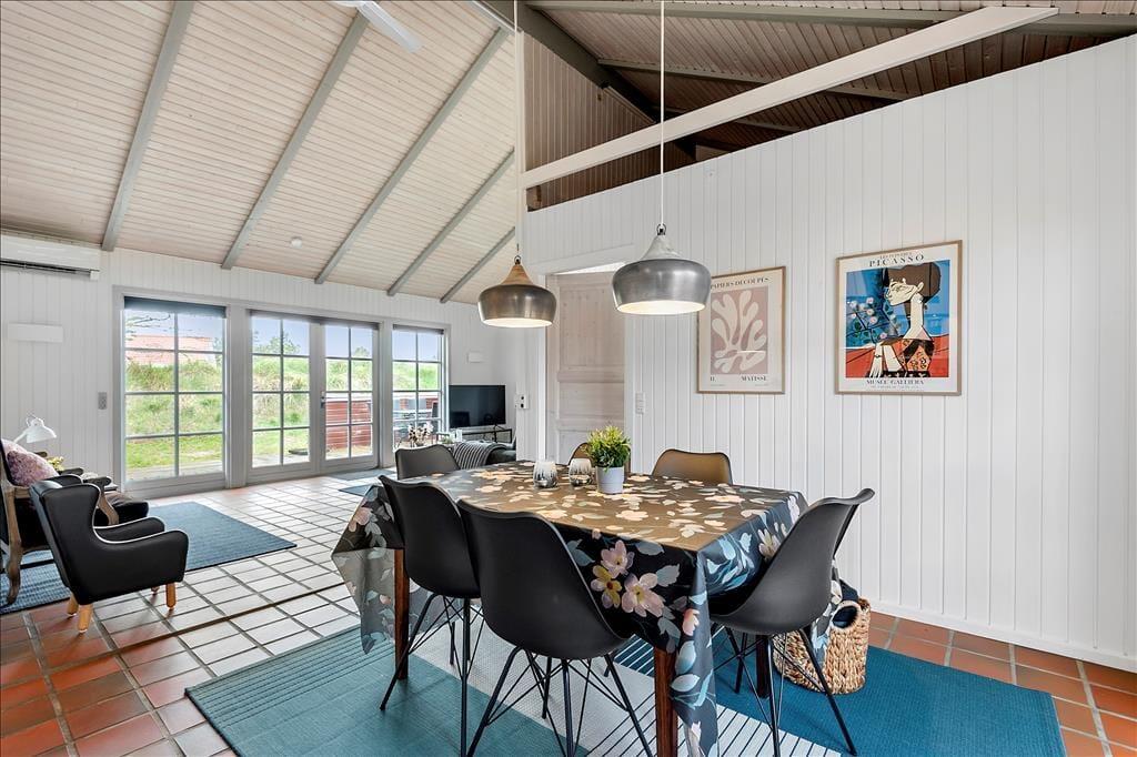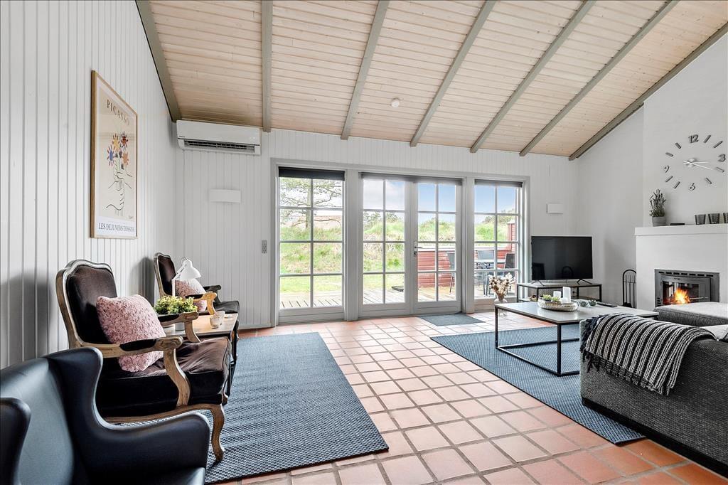 Vakantiehuis in Blåvand Strand og By, West-Jutland, met plaats voor 6 volwassenen en 2 huisdieren. De woning heeft een gezellig interieur met o.a. een houtkachel, en beschikt daarnaast over een wasmachine, een vaatwasser en een wasdroger.