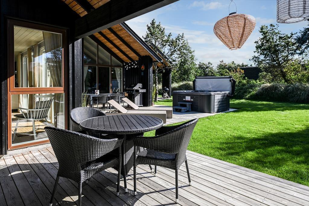 Modern vakantiehuis in Blåvand met sauna, bubbelbad, dichtbij strand en supermarkt, ideaal voor gezinnen.