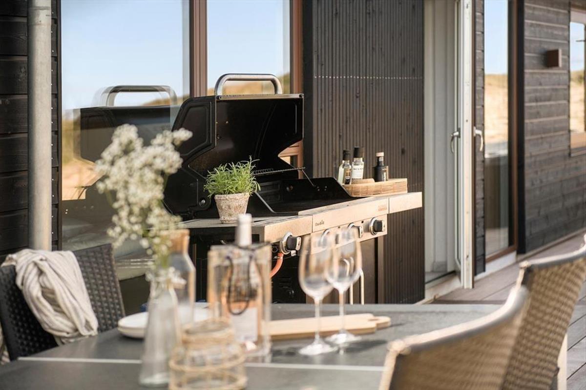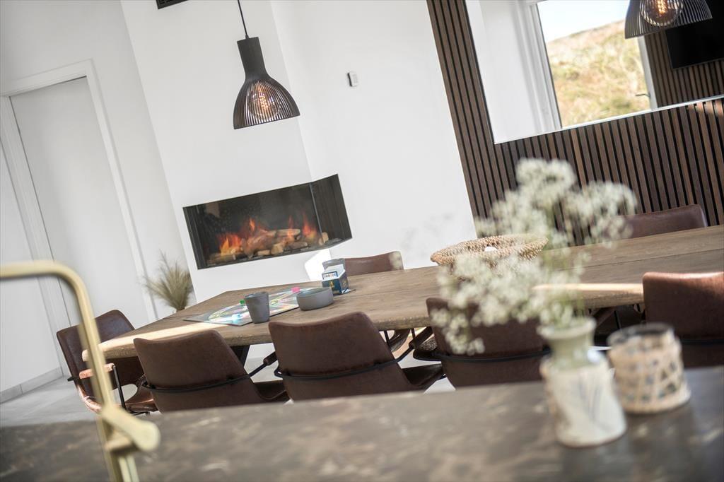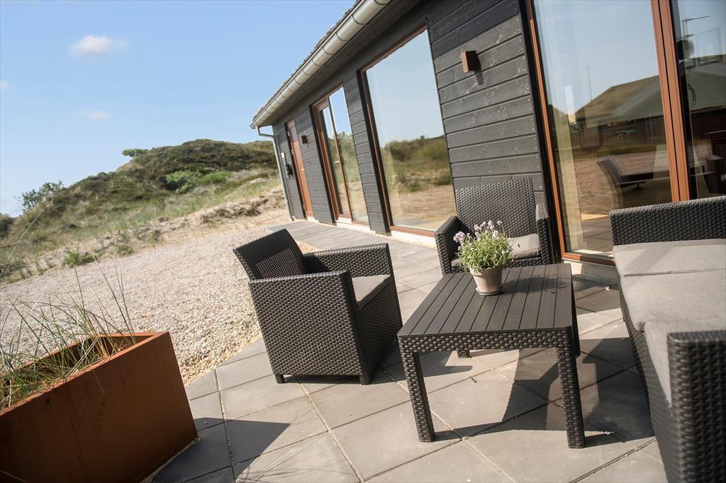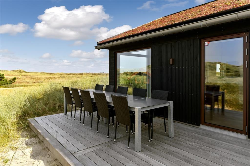 Vakantiehuis in Blåvand Strand og By, West-Jutland, met plaats voor 10 volwassenen en 2 huisdieren. De woning heeft een gezellig interieur met o.a. een houtkachel, en beschikt daarnaast over een wasmachine, een vaatwasser en een wasdroger.