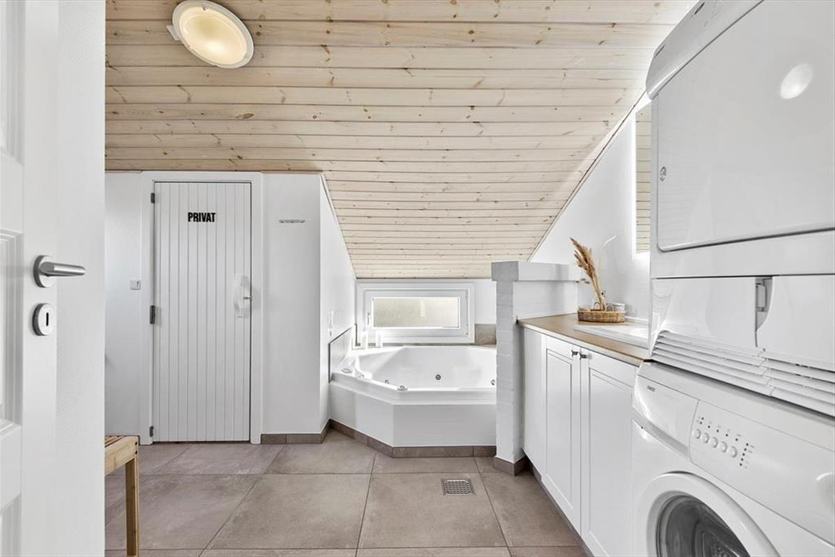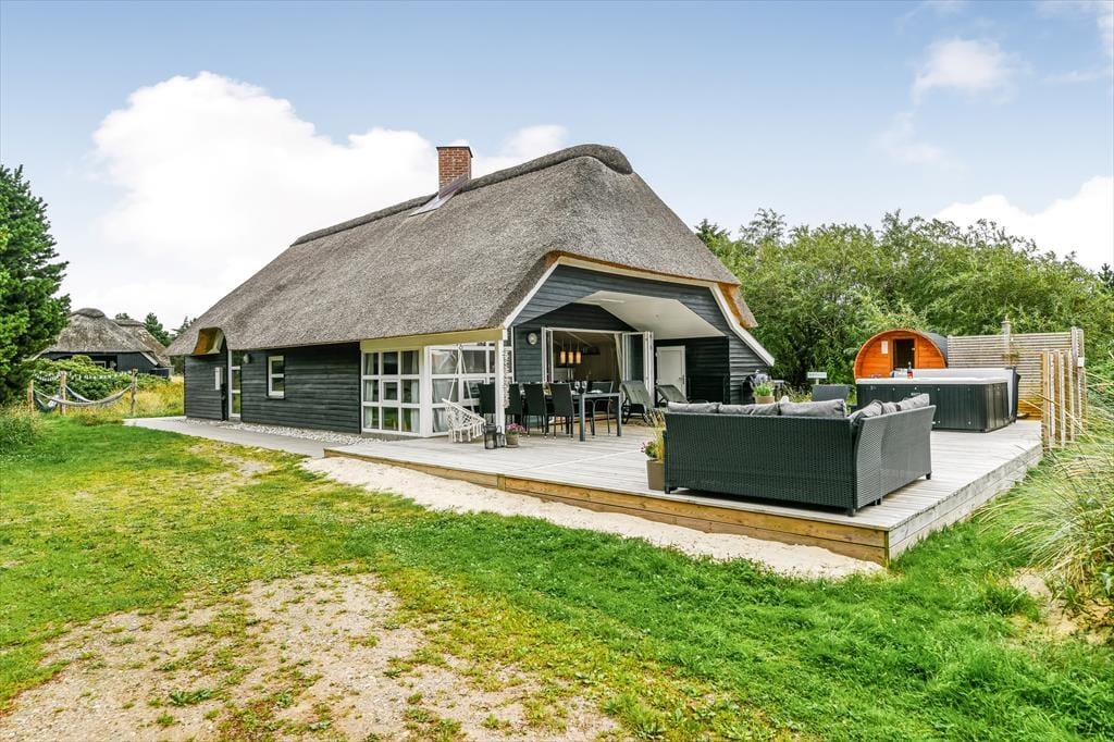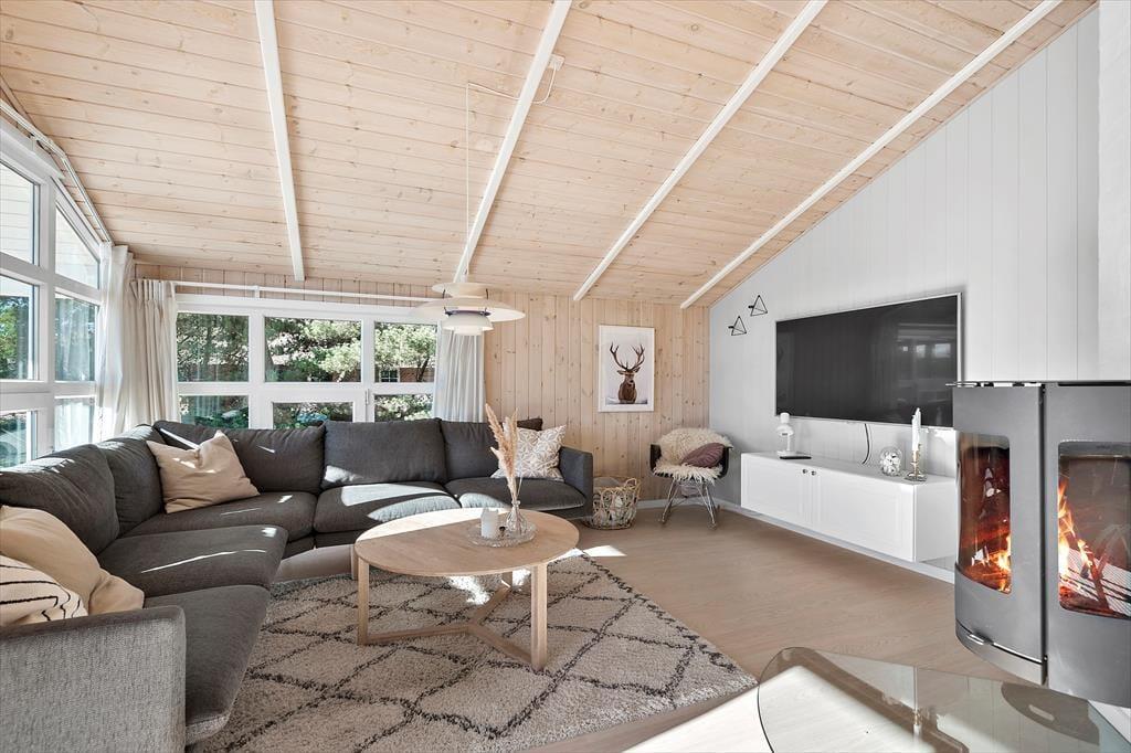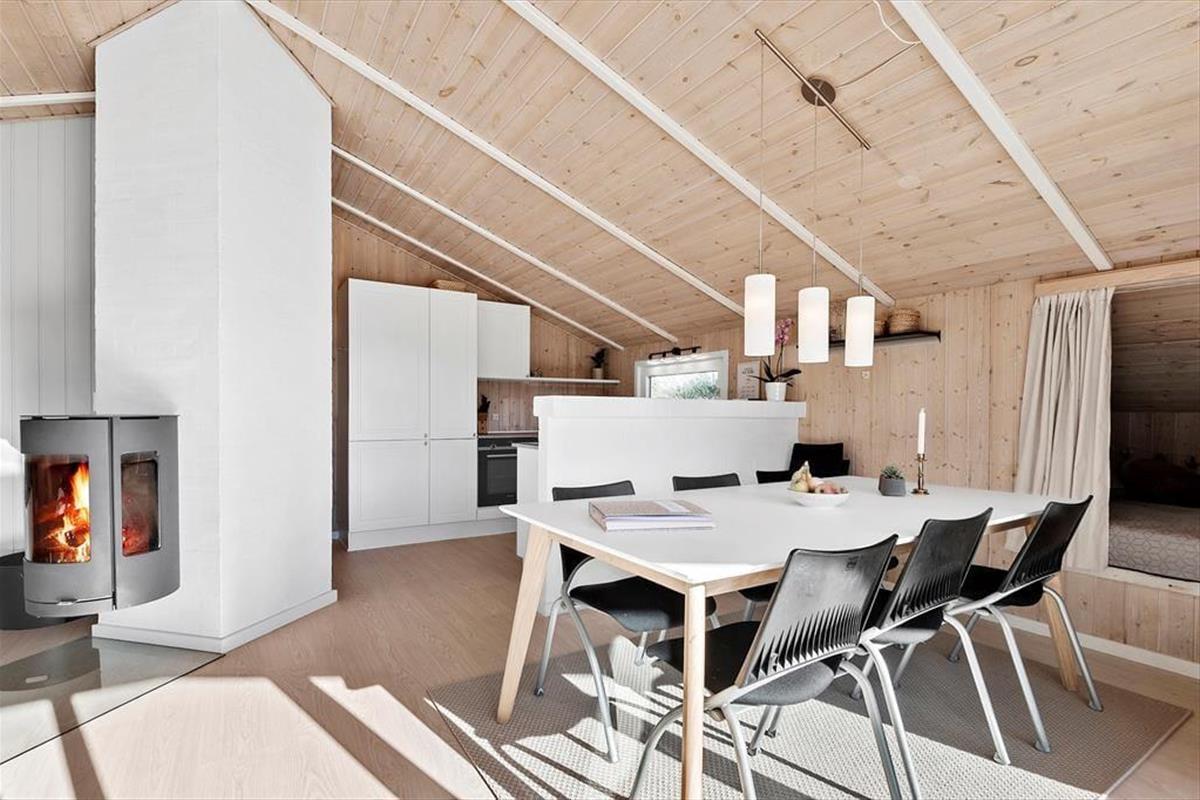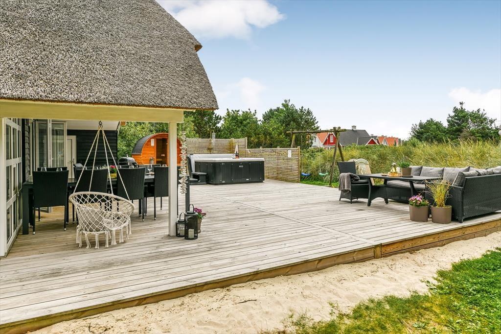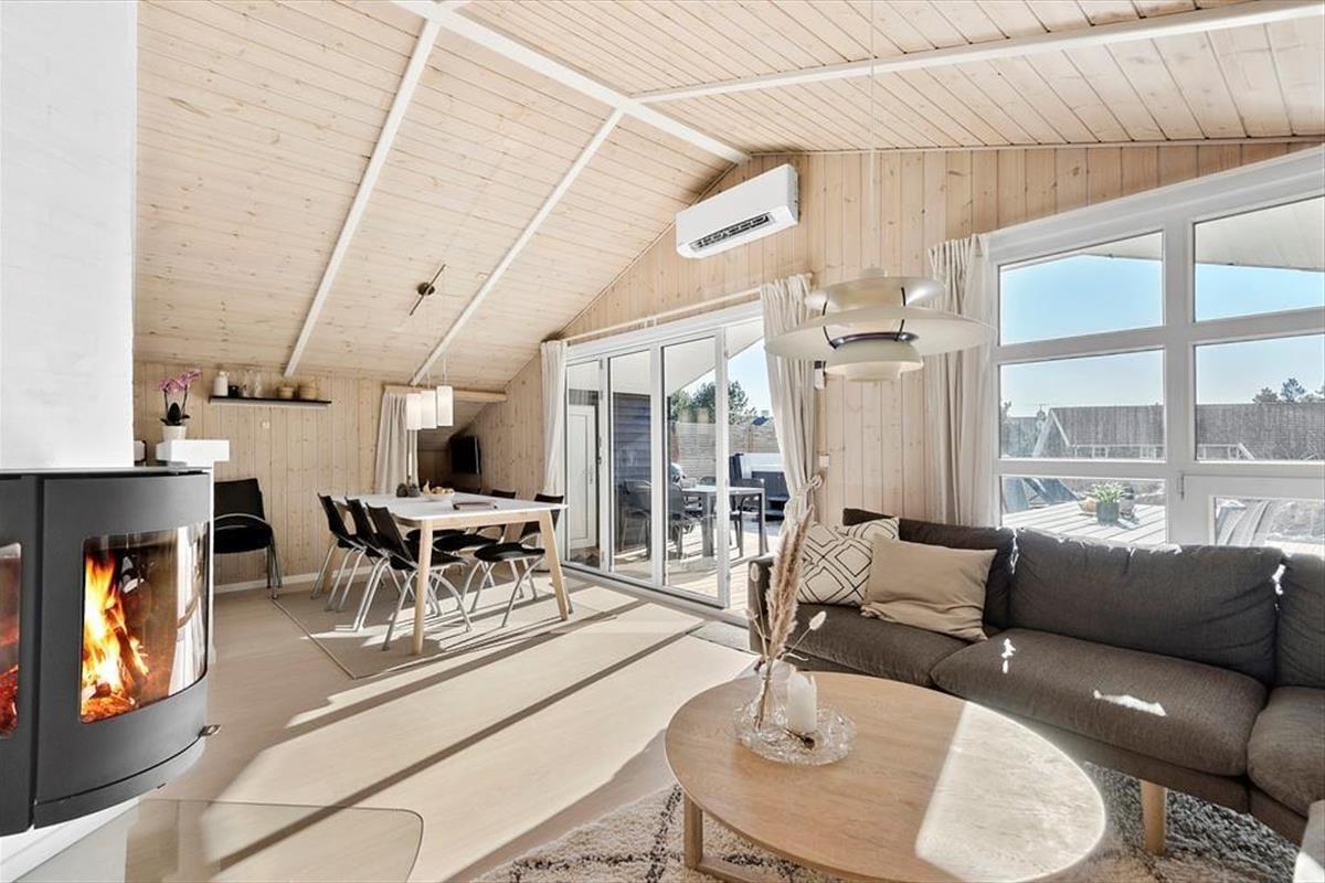 Vakantiehuis in Blåvand Strand og By, West-Jutland, met plaats voor 8 volwassenen en 1 huisdieren. De woning heeft een gezellig interieur met o.a. een houtkachel, en beschikt daarnaast over een wasmachine, een vaatwasser en een wasdroger.