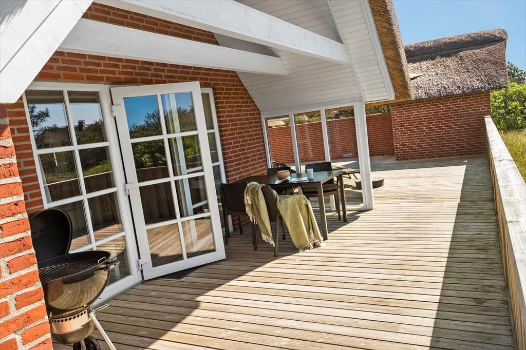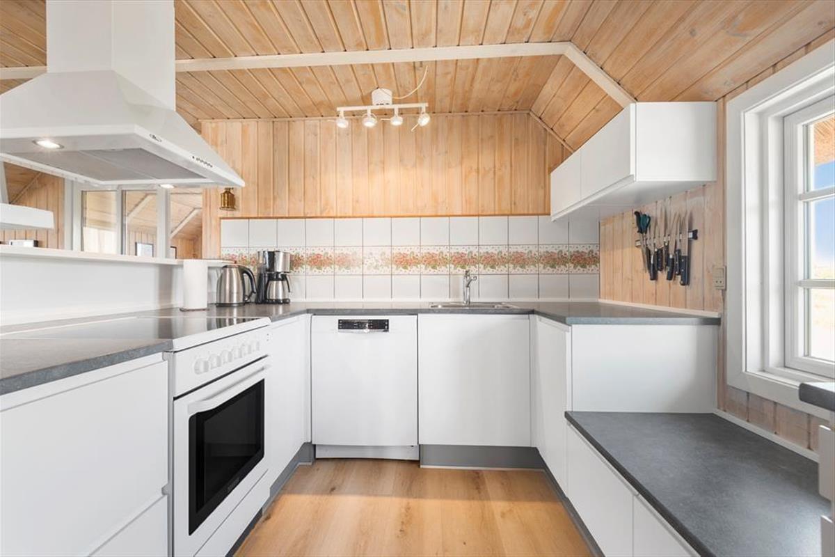 Vakantiehuis in Blåvand Strand og By, West-Jutland, met plaats voor 4 volwassenen en 2 huisdieren. De woning heeft een gezellig interieur met o.a. een houtkachel, en beschikt daarnaast over een wasmachine en een vaatwasser.