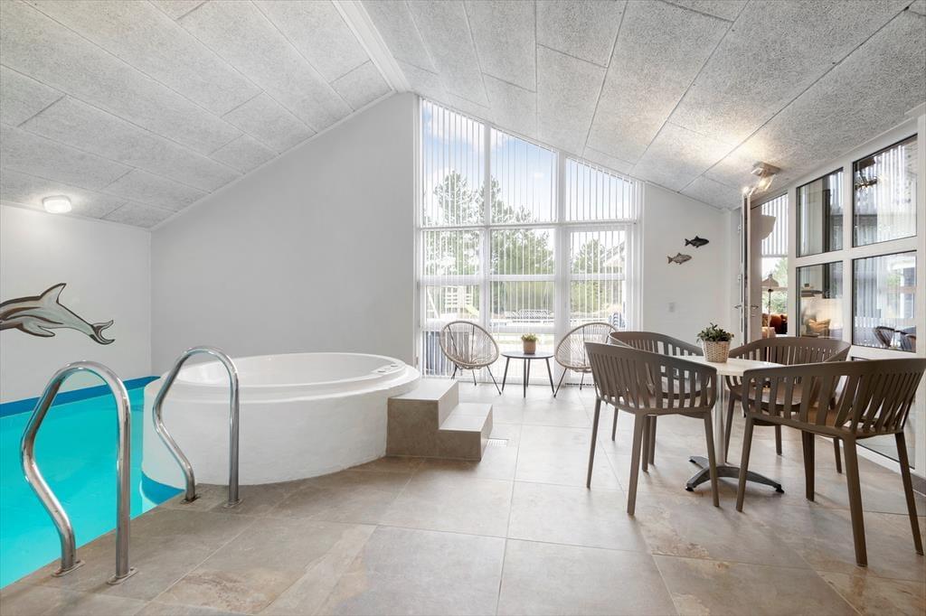 Träumt ihr davon, in einem Ferienhaus mit Innenpool, Nordische Badetonne, Kamin im Wohnzimmer oder Tischtennisplatte auf der Terrasse zu wohnen? In der Karl Postsvej 5 in Blåvand müsst ihr euch nicht entscheiden, denn dieses große und äußerst gut ausgestattete Ferienhaus bietet all diese Annehmlichkeiten – und ist zudem mit komfortablen Schlafplätzen für zehn Personen ausgestattet.
