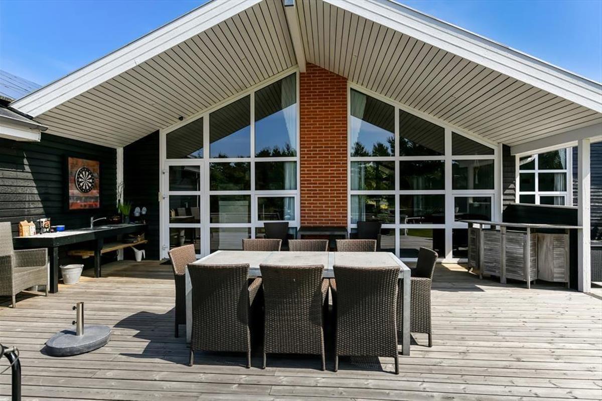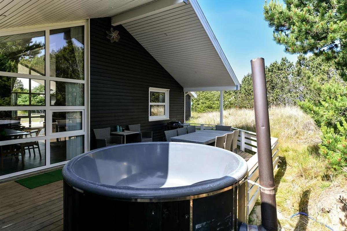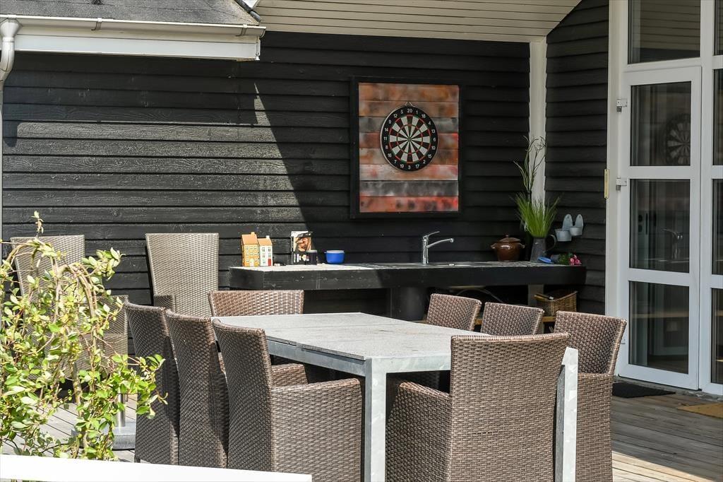 Der Indoor-Wellnessbereich ist fantastisch, aber es ist auch großartig, eine Nordische Badetonne auf der Terrasse zu haben. Wenn es nicht Zeit für ein Bad unter dem Sternenhimmel ist, sondern für Spaß und Spiel, gibt es im Freien eine Tischtennisplatte und ein Fußballtor – und außerdem eine Schaukel, eine Sandkiste und ein Trampolin für die jüngsten Feriengäste. Der nach Süden ausgerichtete Terrassenbereich wird ein Hit sein, wenn die Sonne scheint, und dank der Außenküche werden die Grillabende noch besser. Das Haus ist mit Sonnenkollektoren ausgestattet, die für den Betrieb des Hauses genutzt werden, wodurch die Kosten für den Stromverbrauch minimiert werden.