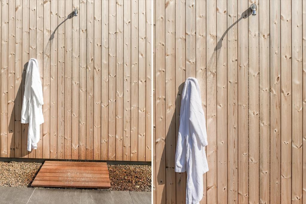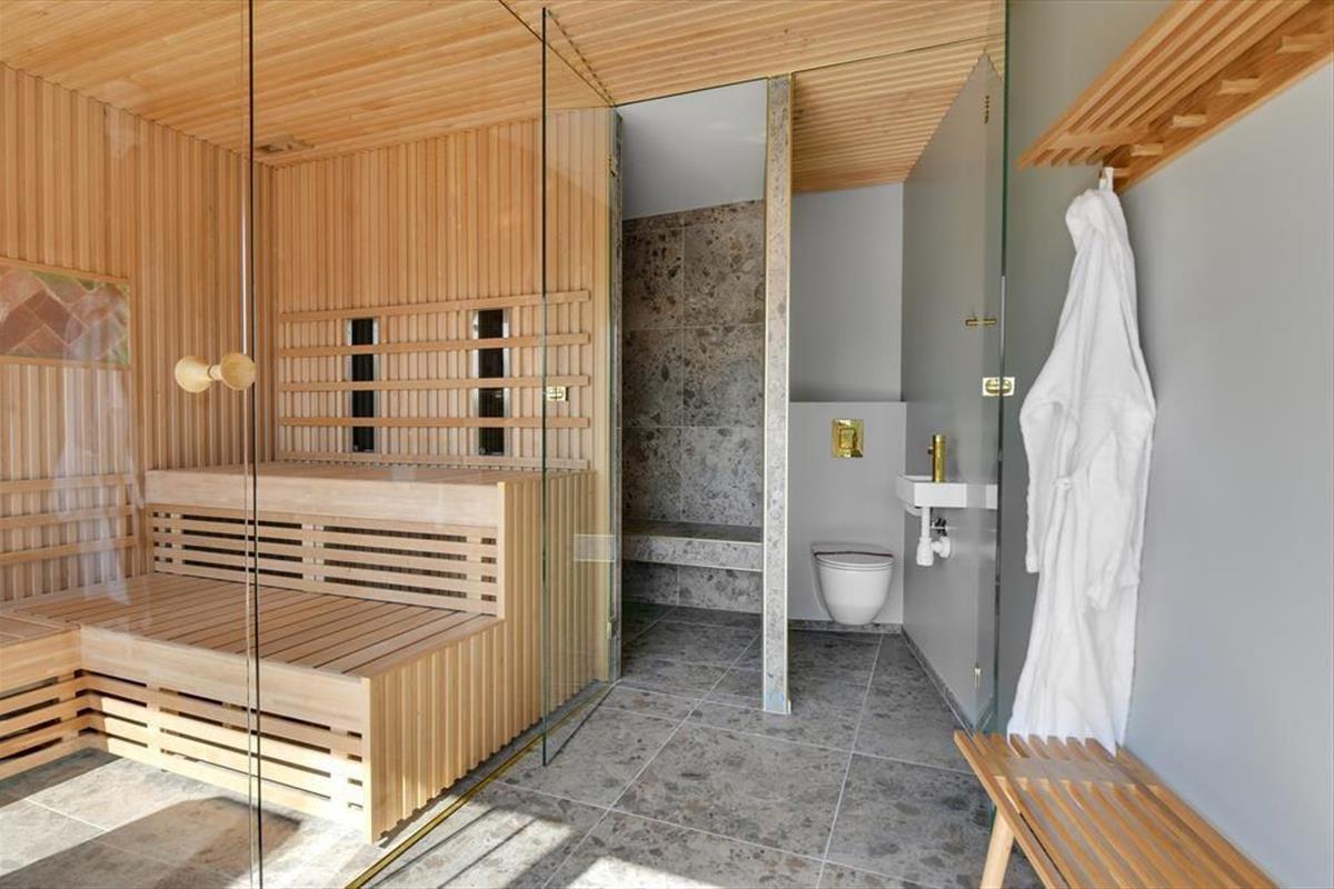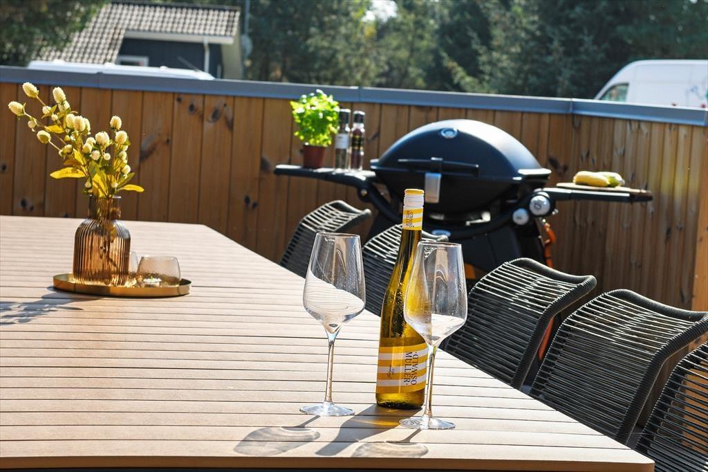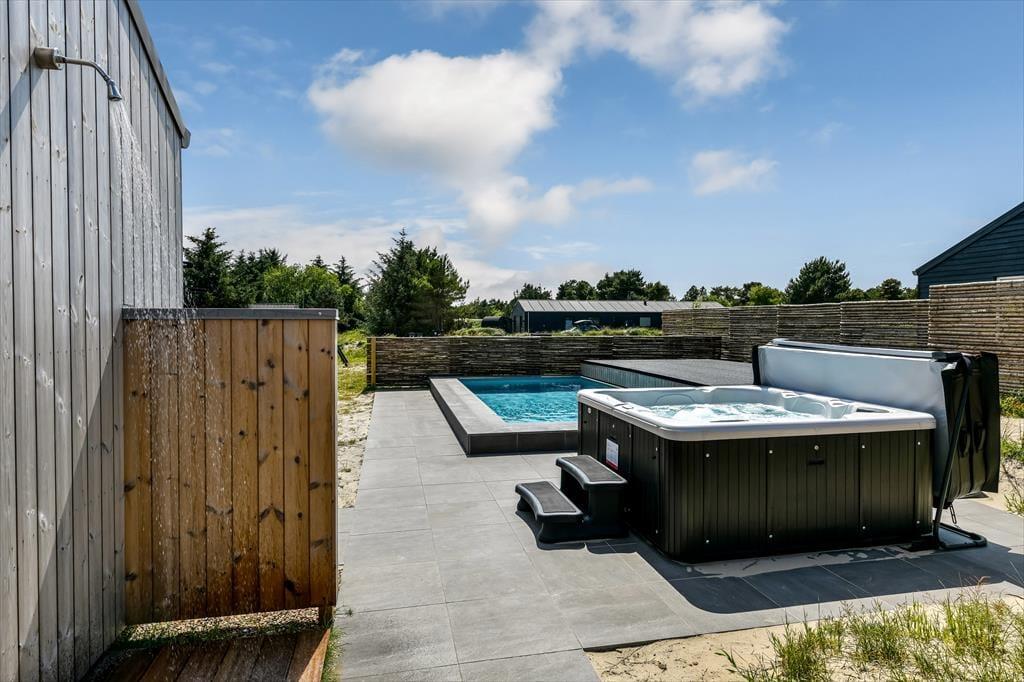 Von sowohl dem Wohnzimmer, dem Wintergarten als auch dem Wellnessraum hast du direkten Zugang zur Terrasse des Ferienhauses, sodass es einfach ist, frische Luft zu schnappen. Bei Sonnenschein kannst du dich auf der Terrasse niederlassen – oder vielleicht sogar im Pool erfrischen. Wenn du die Sauna oder das Dampfbad genutzt hast, kannst du auch draußen unter der Außendusche eine erfrischende Abkühlung genießen, und die gesamte Wellness-Sitzung kann mit einer entspannten Zeit im Whirlpool beendet werden. Die Wellness-Einrichtungen ermöglichen es, die Außenbereiche das ganze Jahr über zu nutzen, was definitiv einen großen Beitrag zur Verschönerung des Urlaubserlebnisses leistet.