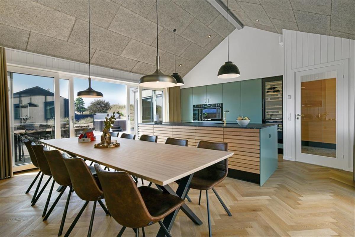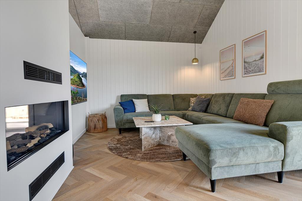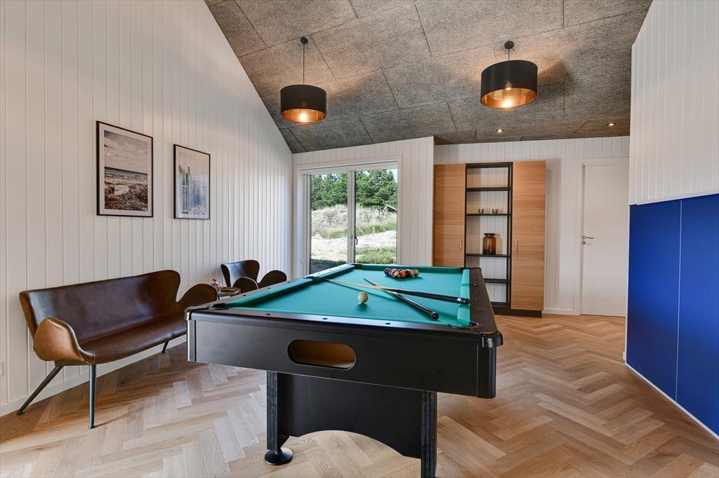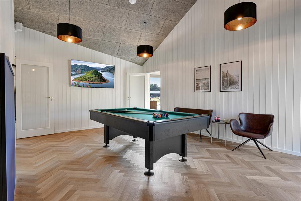 Alle deine Urlaubsträume werden in diesem einzigartigen Juwel eines Luxusferienhauses auf der Poul Thøstesensvej 14 in Blåvand erfüllt, gelegen am Ende einer ruhigen Straße nahe dem Stadtzentrum von Blåvand. Das Ferienhaus wurde 2024 neu gebaut, sodass du einer der ersten sein kannst, der das Leben in exquisitem Ambiente genießt – mit Billardtisch im Aktivitätsraum, einem schönen Wintergarten, eigenem Kino und luxuriösen Wellness-Einrichtungen, einschließlich eines ganzjährig beheizten Außenpools.