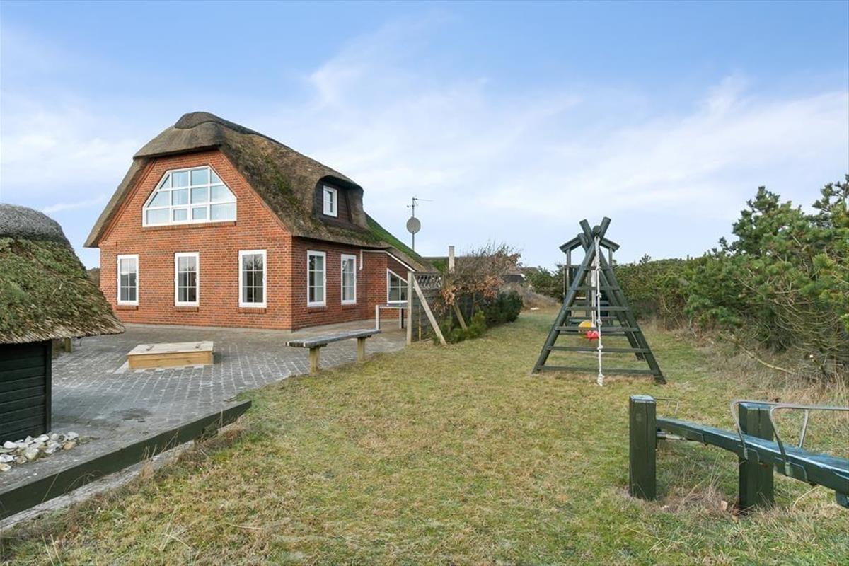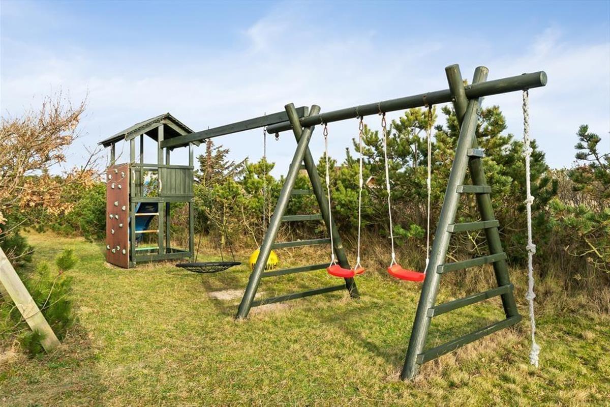 Deine gesamte Familie wird sich garantiert gern einen Großteil des Urlaubs über im Poolbereich oder am Strand tummeln. Ausgesprochen wohlfühlen werdet ihr euch aber auch auf dem 3.653 m² großen Naturgrundstück, das zum Spielen und Entspannen einlädt. Mit einem Spielgerüst, das unter anderem eine Netzschaukel, eine Rutsche und eine Kletterwand umfasst, mit einem Trampolin und einem Spielhaus ist das Grundstück ein wahres Eldorado für die jüngsten Familienmitglieder. Die Terrasse, die sich rund um das Ferienhaus erstreckt, lädt zu ausgedehnten Sonnenbädern, gemütlichen Stunden und geselligen Grillabenden ein. Stell dir nur vor, wie du auf der Terrasse sitzt, während die Sonne hinter den Dünen untergeht, Ruhe einkehrt und die gesamte Umgebung in warme, orangerote Farbtöne getaucht wird.