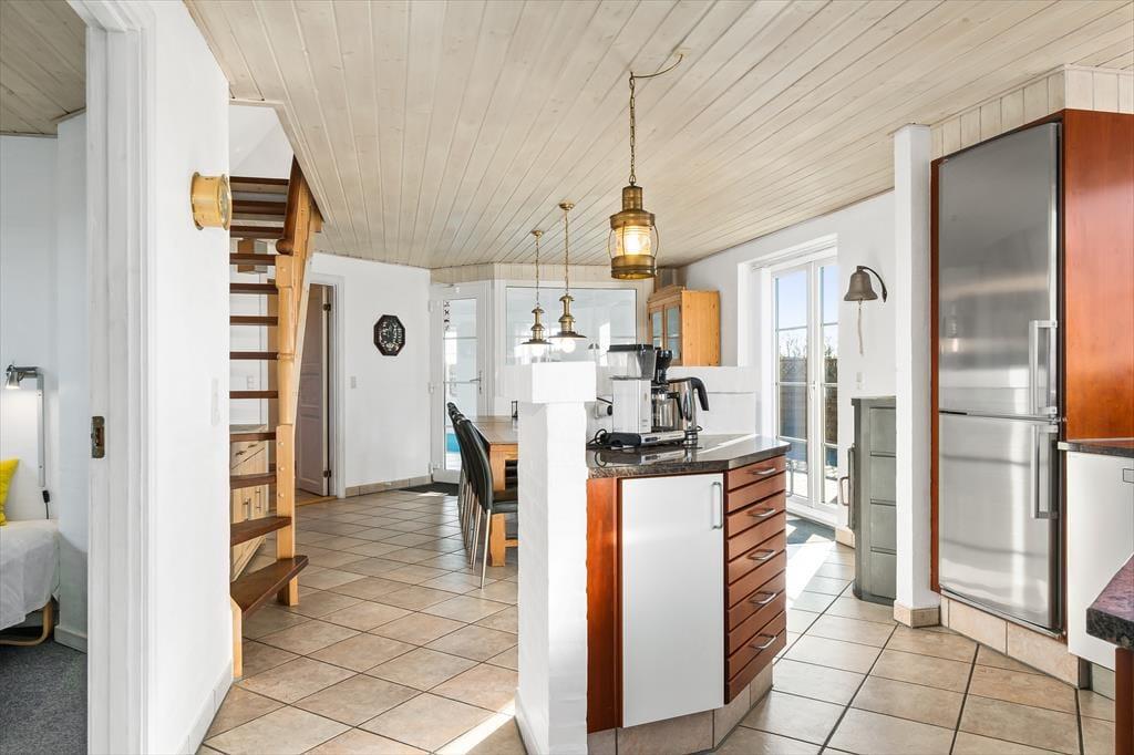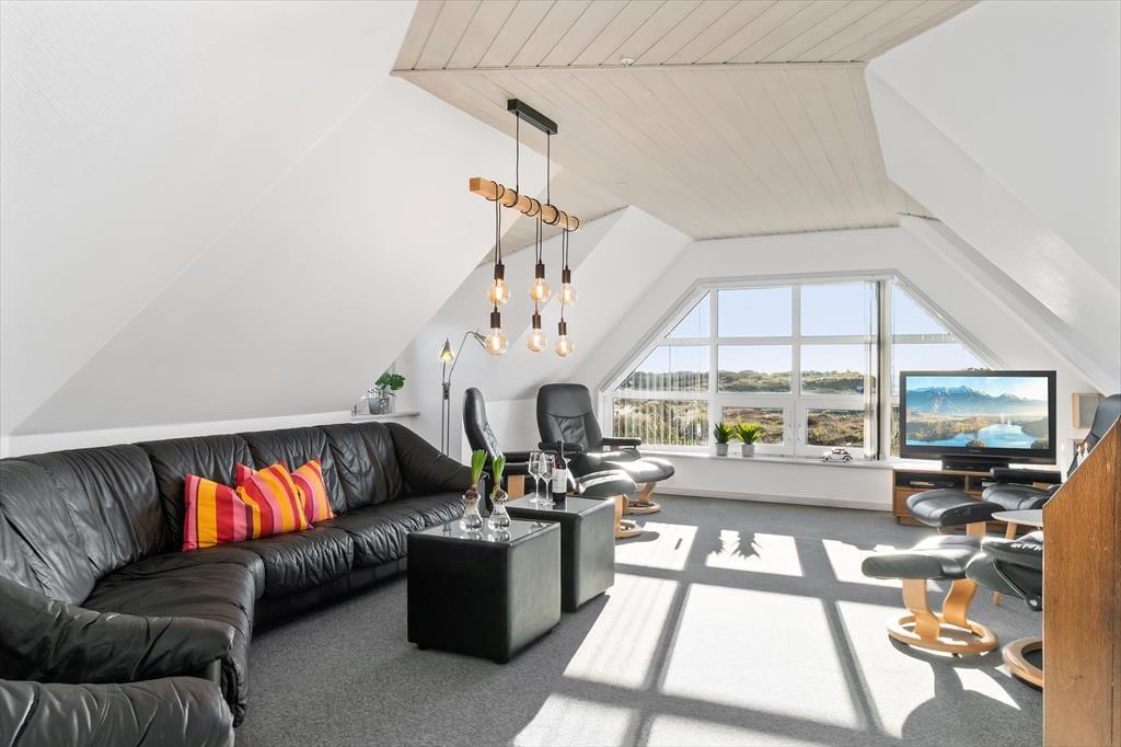 Lediglich 75 Meter trennen dein Ferienhaus vom Strand. Unmittelbar nachdem du den Fyrvej und eine einzelne Dünenreihe überquert hast, stehst du mit deinen Füßen im weißen Sand vor der mächtigen Nordsee. Aufgrund der tollen Lage wird es dich und deine Familie garantiert mehrmals pro Tag ans Wasser ziehen. Da dich in deinem Ferienhaus eine warme Sauna erwartet, spricht sogar in den kühleren Jahreszeiten nichts gegen zahlreiche Bäder in den wogenden Wellen. An warmen Sommertagen werden sich nicht nur deine Kinder über die Nähe zum nächsten Eisladen freuen. Selbst der stimmungsvolle Ortskern des lebendigen Badeortes Blåvand, in dem euch diverse gute Lokalitäten und schöne Geschäfte erwarten, ist nach wenigen Kilometern erreicht.