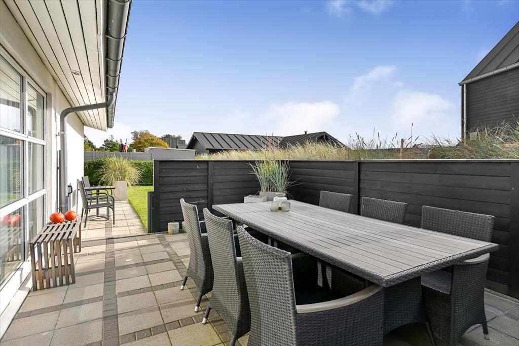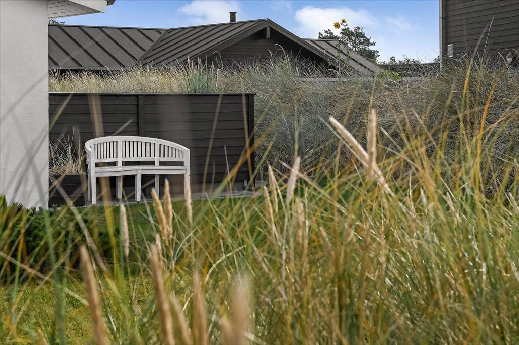 Obwohl es richtig schön ist, sich im Wohnraum aufzuhalten, wird es euch an sonnigen, warmen Tagen garantiert unwiderstehlich hinaus ins Freie ziehen. Vor der Eingangstür in Richtung Straße steht eine Terrasse zur Verfügung. Bedeutend beliebter wird bei euch allerdings die an der Südseite des Hauses gelegene Terrasse sein. Der mit Strandhafer bewachsene Naturwall und die Terrassenumrandung schirmen die Außenbereiche gut ab, sodass ihr in ruhigem Rahmen lesen, Sonnenbäder und Grillabende genießen könnt. Die Grasfläche bietet ausreichend Platz für eine Decke in der Sonne. Auf dem Schotterareal vor dem Ferienhaus können zwei Pkws geparkt werden. Alternativ bietet die Garage des Hauses eine Parkmöglichkeit.