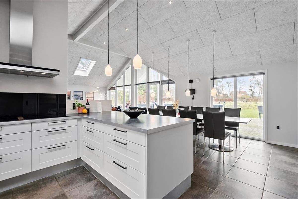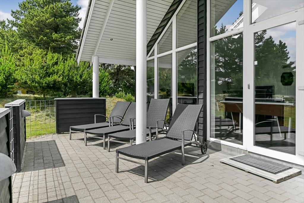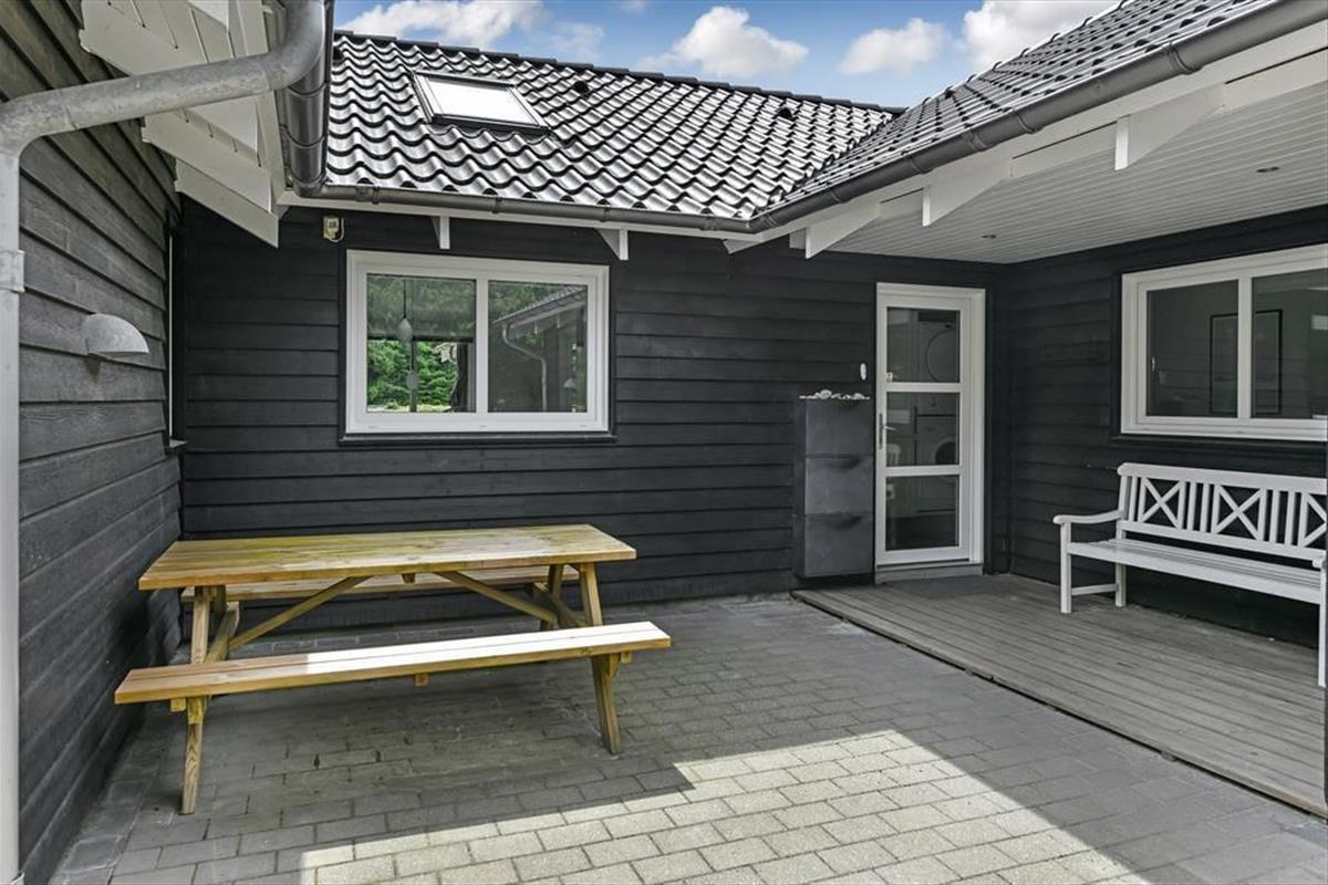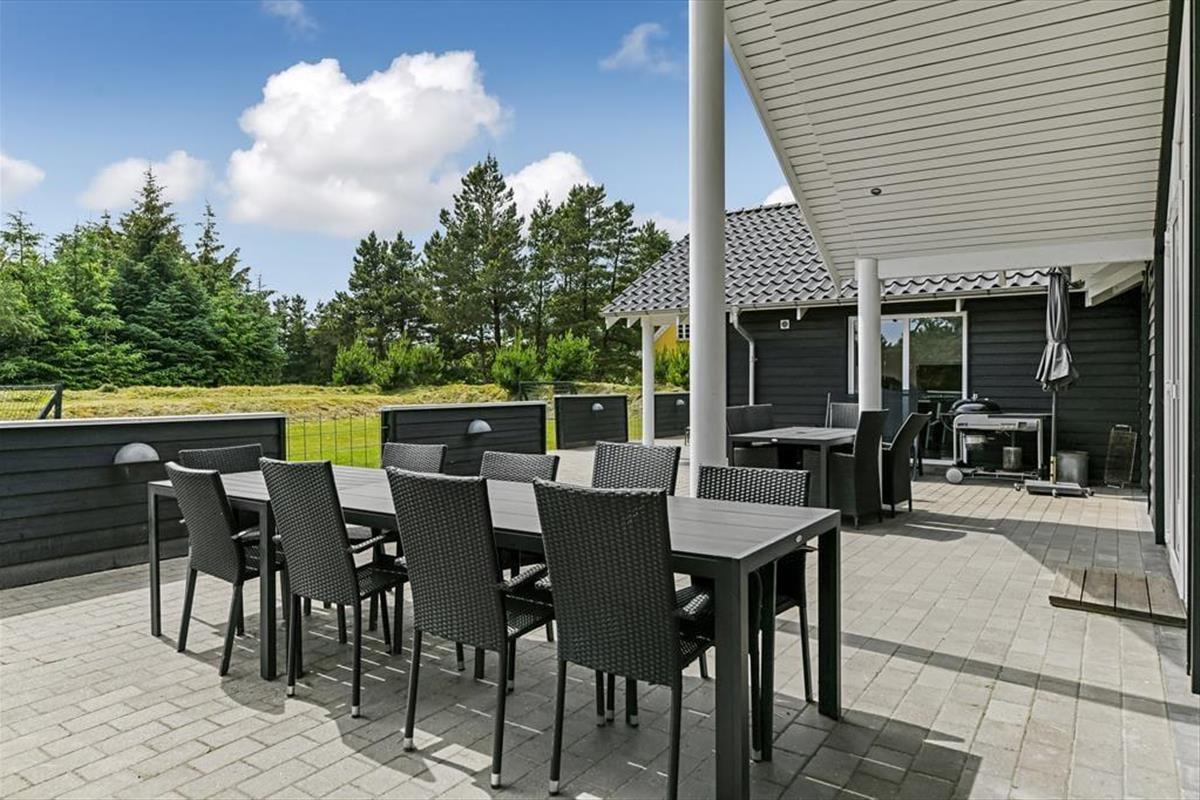 Unter offenem Himmel kannst du ganz nach Stimmung und persönlicher Vorliebe entscheiden, ob du die Sonne primär auf dem Gartenstuhl auf der Terrasse oder lieber ganz aktiv genießt. Etwas ganz Besonderes ist die "Cross-Golf-Bahn" auf der Rasenfläche, die selbst Anfängern jede Menge Spaß garantiert. Ein Fußballtor, ein Trampolin und andere Spielmöglichkeiten stehen ebenfalls bereit. Nach ausgelassenen Stunden auf der Rasenfläche kannst du im Kreise deiner Familie am Nachmittag Kaffee trinken und dänischen Kuchen genießen. Der Grill lädt zu stimmungsvollen Grillabenden ein. Ein Teil des Terrassenareals ist überdacht und eignet sich somit bei Einbruch der Dunkelheit wunderbar als Rückzugsort. Ihr lasst hier gemeinsam in aller Ruhe den erlebnisreichen Urlaubstag ausklingen und genießt dabei die ruhige, schöne Atmosphäre.