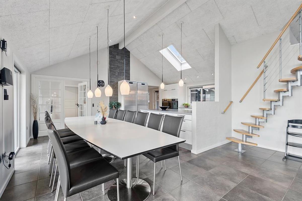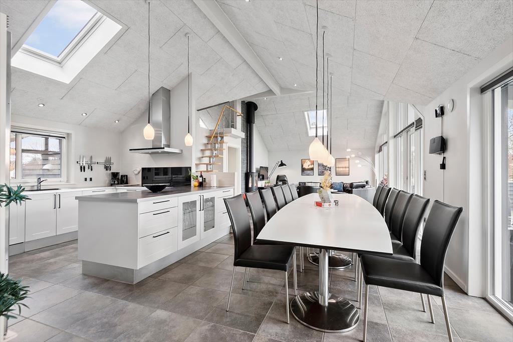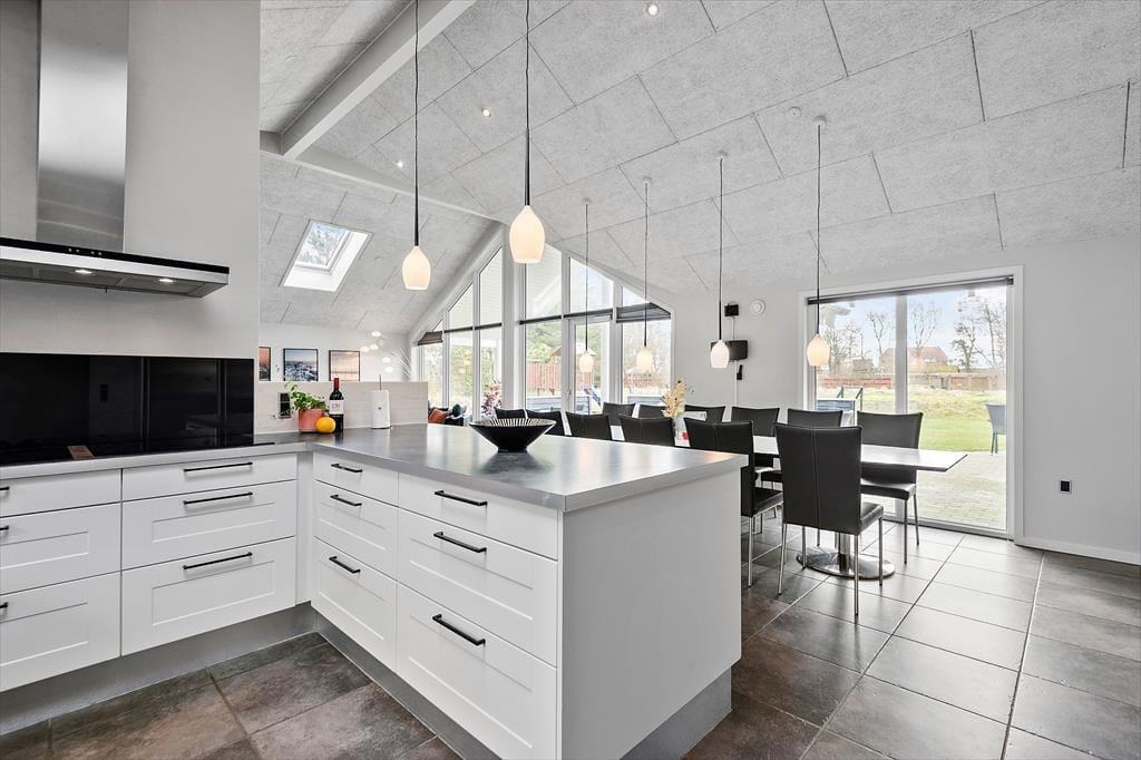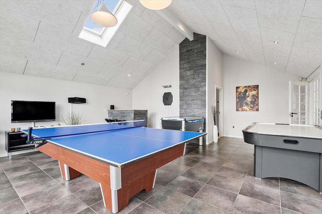 Dieses Ferienhaus eignet sich hervorragend für einen Urlaub mit vielen Personen. 12 Personen verteilen sich auf insgesamt sechs Schlafräume. Auf dem großen Schlafboden können zusätzlich zwei Kinder übernachten. Im Laufe des Tages fungiert der Schlafboden als gemütliche Kuschelzone, die sich bei den Jüngsten großer Beliebtheit erfreuen wird. Ein perfekter Sammelpunkt für Groß und Klein ist der attraktive Wohnraum. In der fantastischen Küche wird das gemeinsame Zubereiten der Mahlzeiten zum reinen Vergnügen. Praktischerweise stehen unter anderem jeweils zwei Kühlschränke, zwei Geschirrspüler und zwei Herde bereit. Die Küche ist offen in den Wohnraum integriert, sodass du beim Kochen stets im Kontakt zu deinen Lieben bist, die es sich im Wohnraum und rund um den Esstisch gemütlich machen. Zahllose vergnügte, aktive Stunden verlebt ihr alle gemeinsam im tollen Aktivitätsraum, in dem ihr Tischtennis, Billard und vieles mehr spielen könnt. Falls du es lieber etwas ruhiger und entspannter angehen lässt, ziehst du dich in aller Ruhe in das Wellness-Badezimmer zurück, in dem ein Whirlpool und eine Sauna pure Erholung versprechen.
